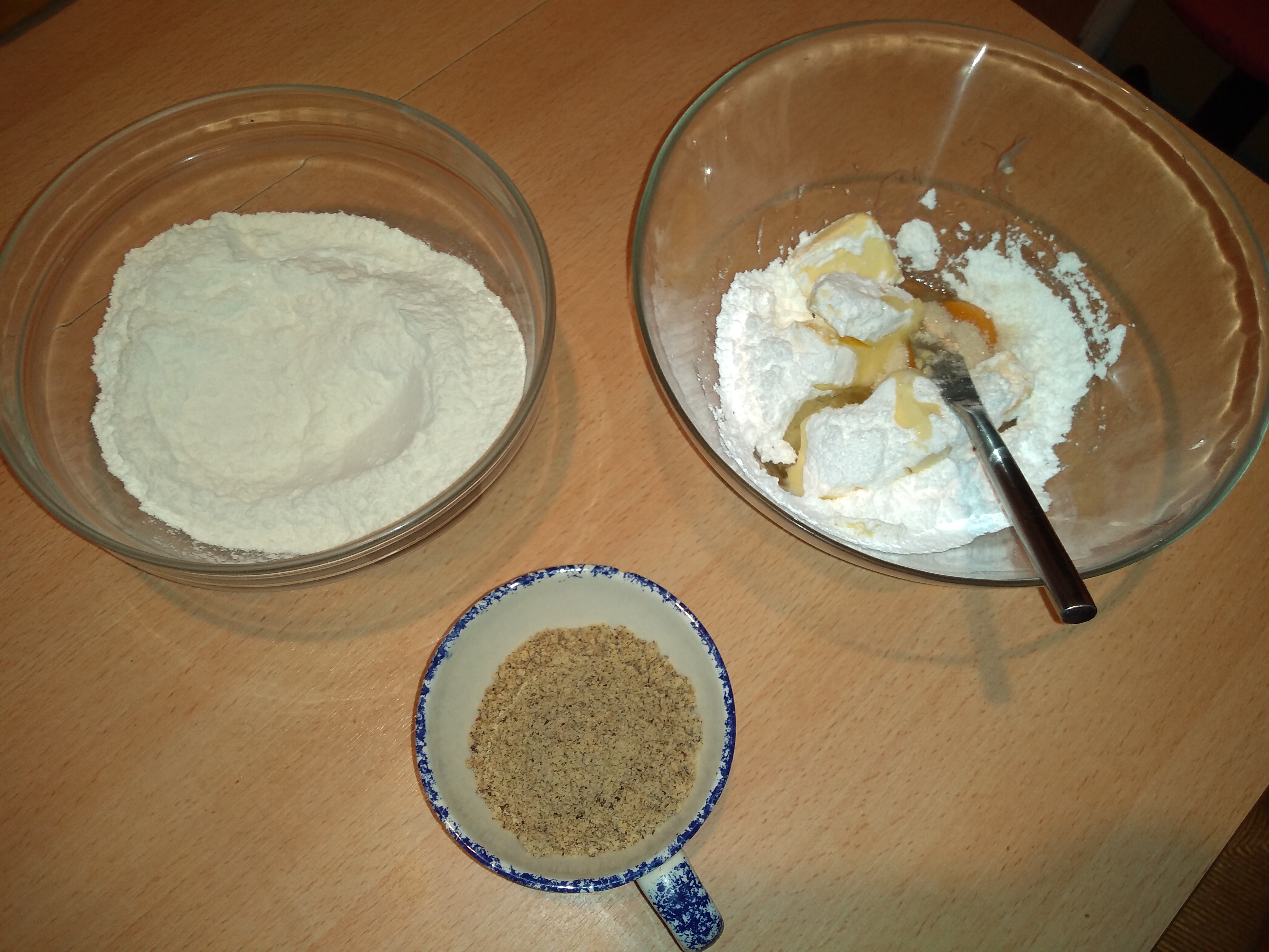 • Tamisez votre sucre glace et placez-le dans un saladier avec le beurre bien mou découpé en morceaux . ajoutez le sucre vanillé , l’oeuf , la pincée de sel , la poudre de noisettes puis la farine également tamisée