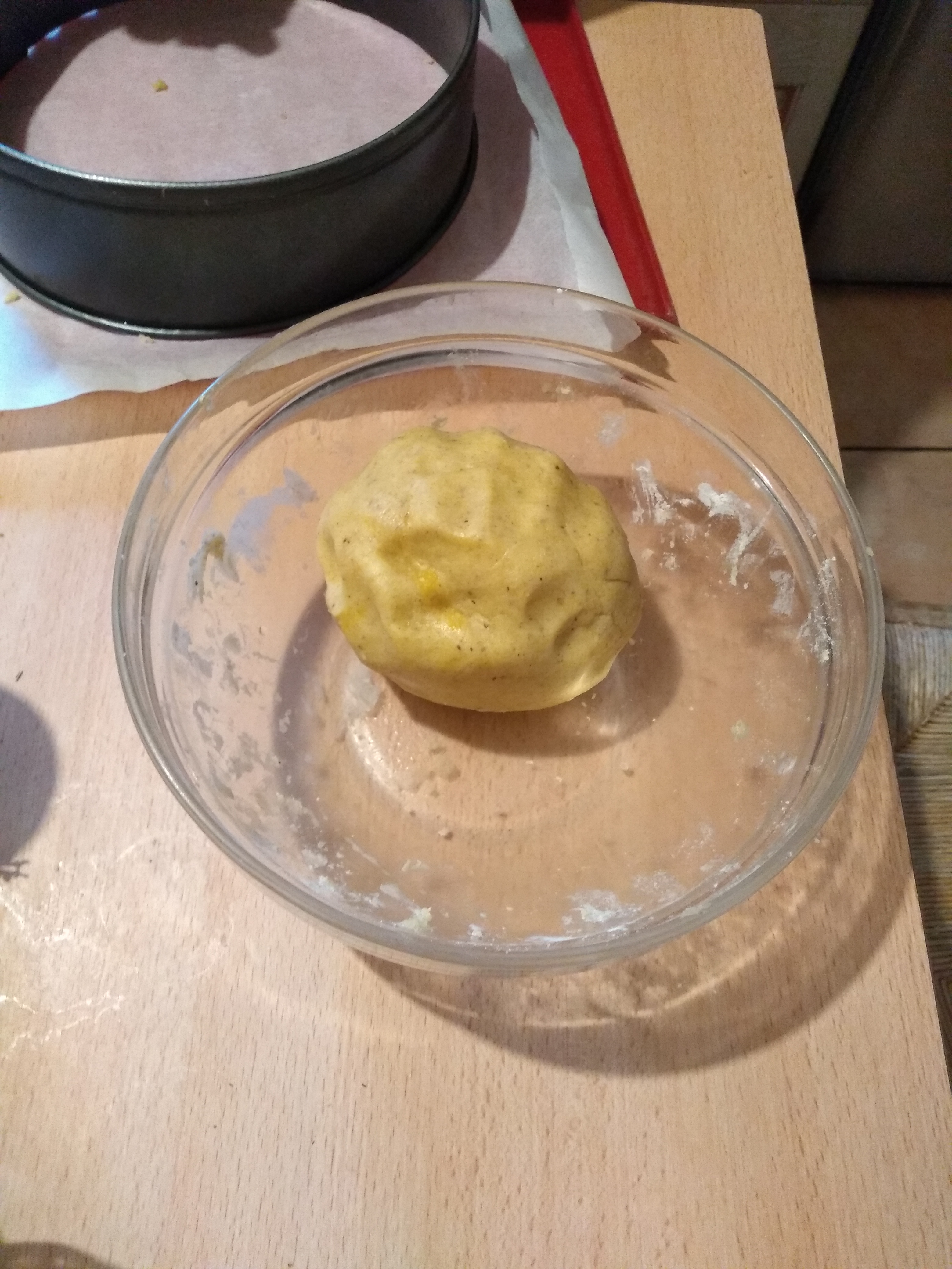 Commençons par la pâte sucrée : coupez 90g de beurre mou en petits morceaux , ajoutez un oeuf entier , 50g de sucre glace , 200g de farine et 25g de poudre d’amandes dans un saladier .Mélangez tout à la spatule ou même à la main ( méthode que je préfère ici) pour obtenir une boule bien homogène . Ensuite …soit vous placez au frais la pâte une heure MINIMUM au frais et vous foncez votre cercle à pâtisserie , soit vous foncez le cercle et vous placez au frais…