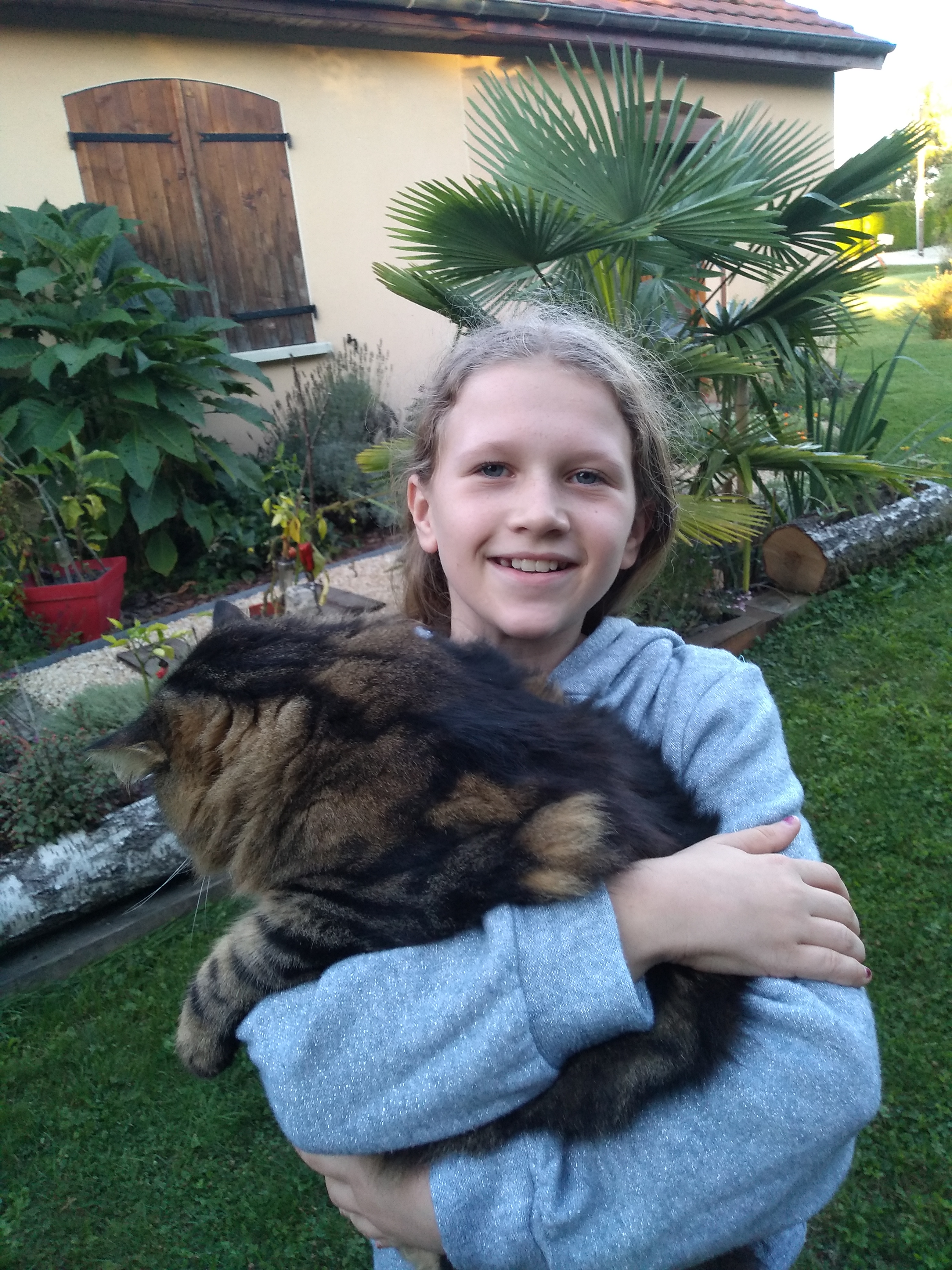 Mes filles ont les mêmes goûts et ont craqué pour la version unie , avec capuche ( celle-ci est quand même doublée en liberty , n’oublions pas qu’elles tiennent de moi hihi). Alice a 10 ans et demi et j’ai choisi pour elle la taille 12 ans, j’ai coupé dans une maille lurex bleue toute moelleuse. Pour Myrianne qui a 13 ans j’ai pris la taille 14 ans ( 164 cm ) et un sweat de chez Driessenstoffen … cela m’a coûté 36 euros les 3 coupons de 2 mètres alors autant dire que cela s’avère très rentable !!!