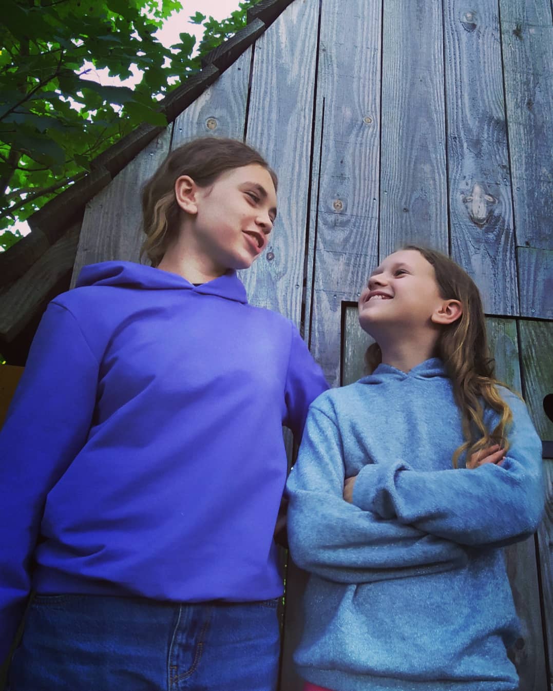 Lorsqu’elle m’a proposé de tester ses patrons de sweats , j’étais aux anges car mes filles en raffolent et j’allais enfin pouvoir recoudre pour elles . Si vous avez des ados , vous avez sûrement connu comme moi cette période où vos enfants ne veulent plus porter vos mignonnes cousettes en coton fleuri et préfèrent le sportswear. Mais ouf !!! Laetitia a résolu le problème en imaginant le sweat Mackaon mixte qui permet de créer des versions girly avec volants , empiècement ou casual avec capuche , poche kangourou etc