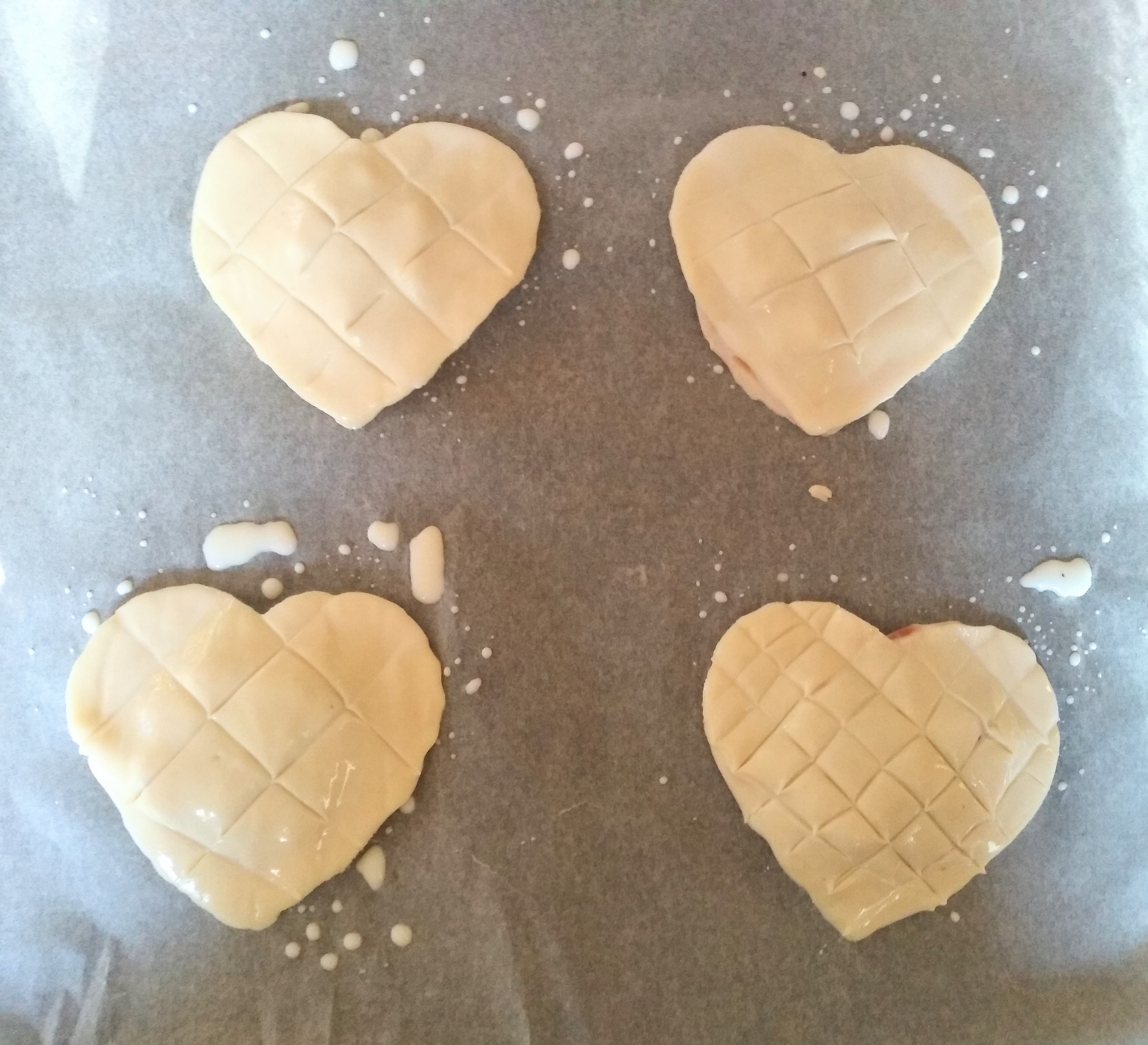 Recouvrez vos chaussons avec des formes identiques. Faites attention à placer votre garniture au centre pour qu’elle ne s’échappe pas lors de la cuisson!!!