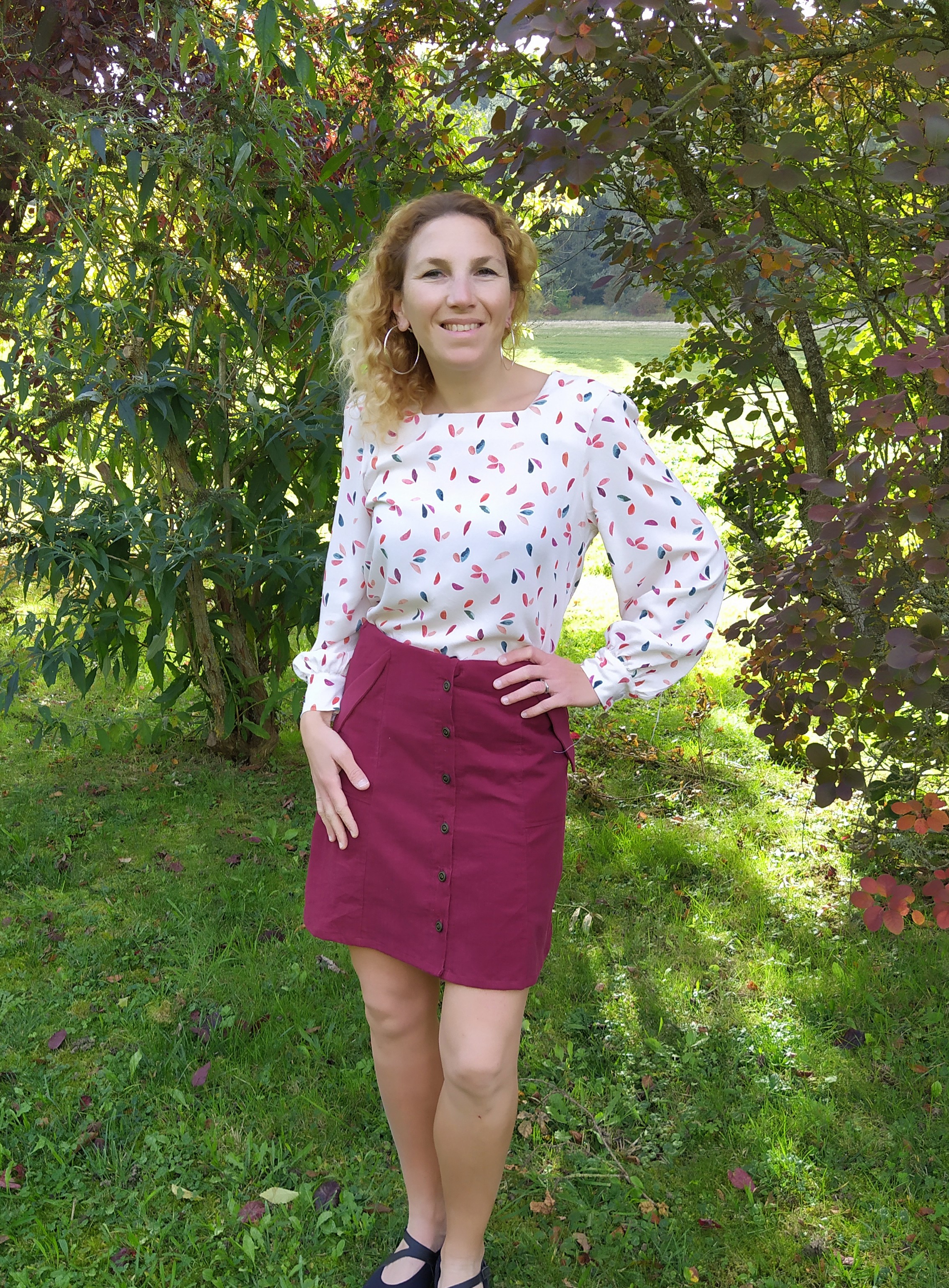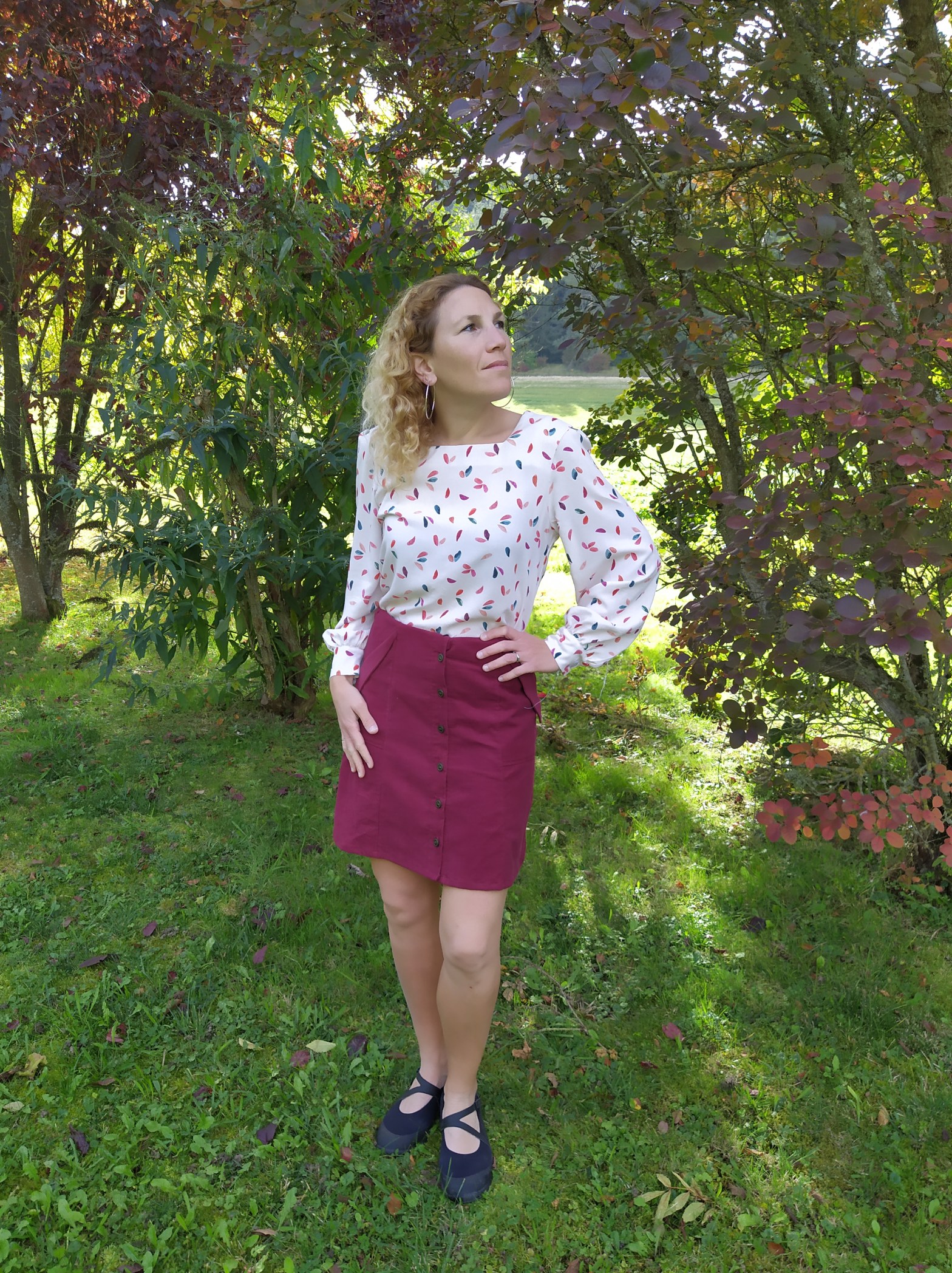 Hier j’ai profité des courses pour acheter les boutons dont j’avais besoin pour terminer ma jupe Kim de Maison Fauve chez Toto tissus de La Chapelle St Luc et le soleil radieux a permis de prendre des photos de l’ensemble Blouse Lauren + jupe Kim , tous deux des patrons issus de la nouvelle collection de Maison Fauve