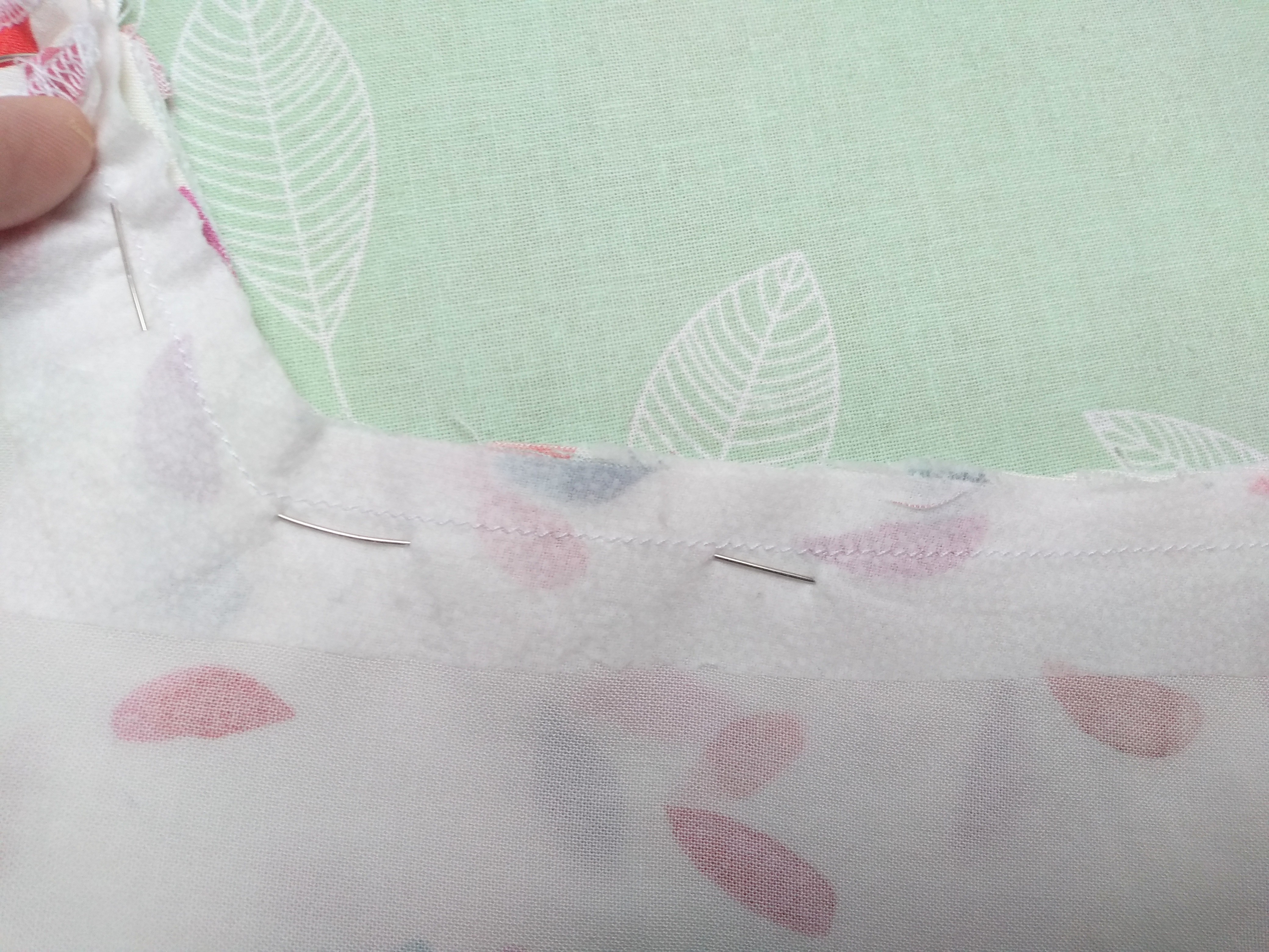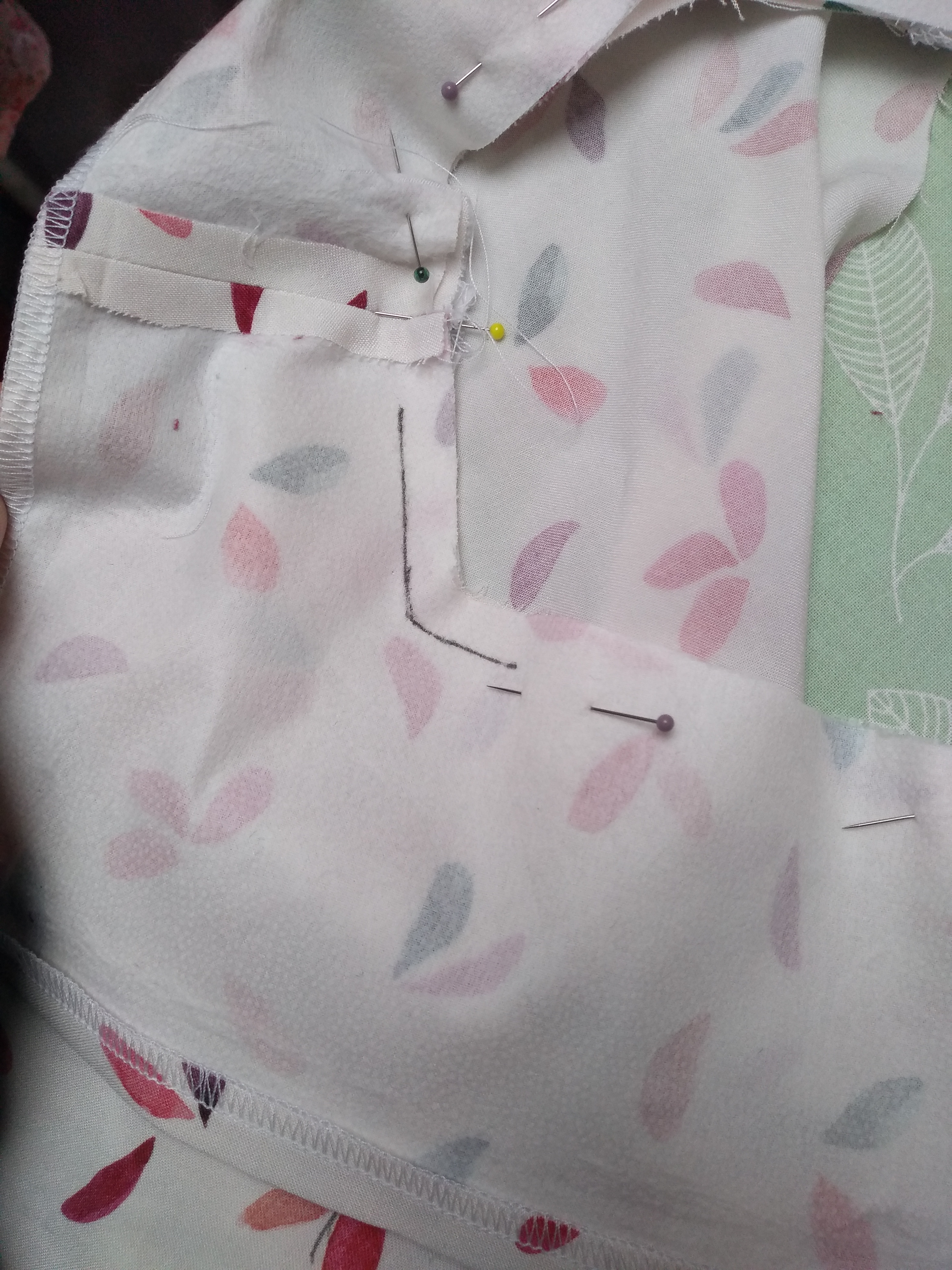 2/ placer endroit contre endroit les pièces devant / dos avec les parementures et dessiner au frixion les angles sur lesquels sera effectuée la piqûre d’assemblage