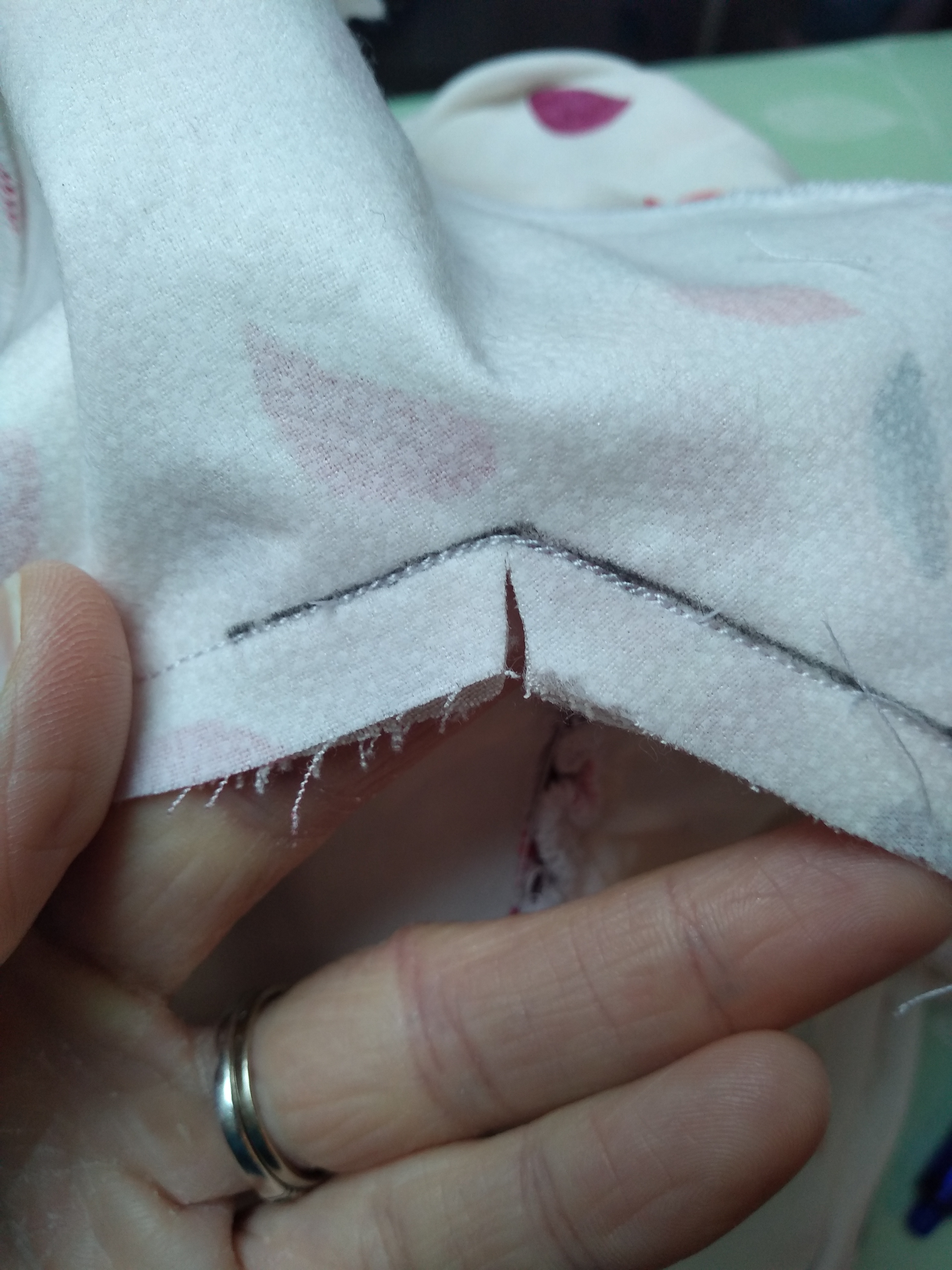 3/ cranter jusqu’à la couture avec une grande précaution ( c’est complètement normal d’avoir les chocottes à ce moment-là !!!)