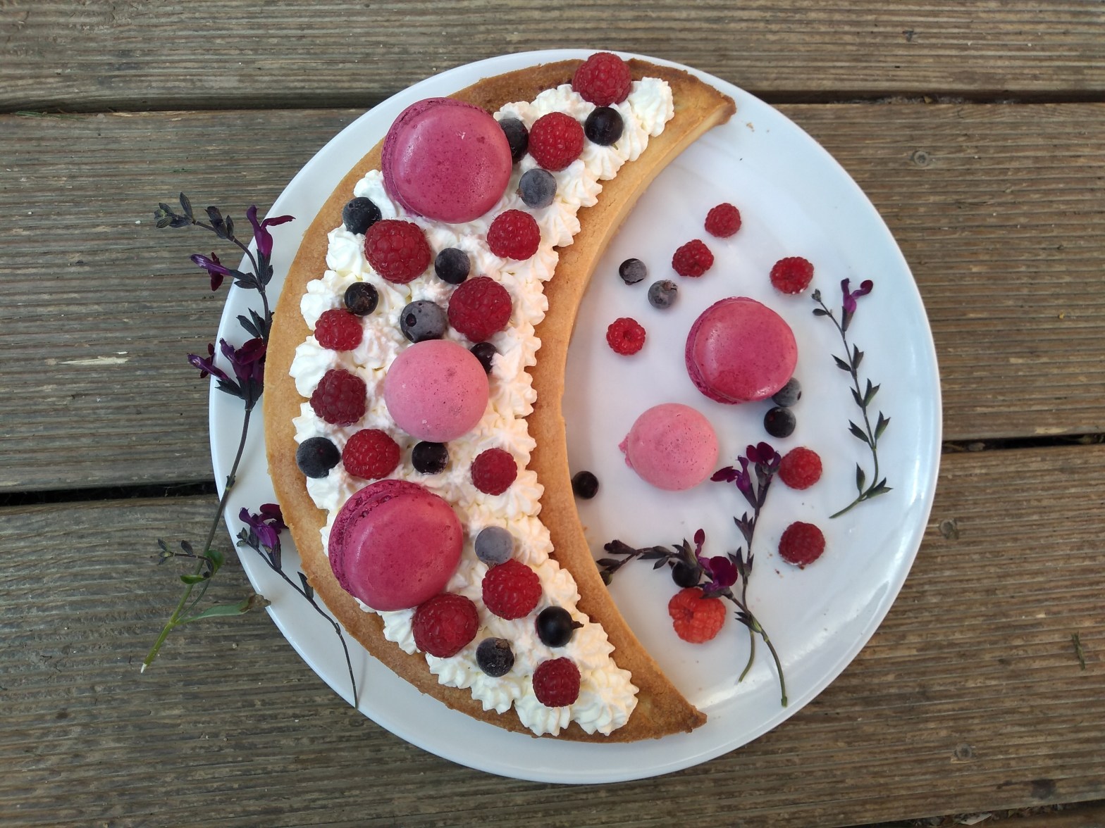 Pour le croissant de Lune , j’ai réalisé une simple crème chantilly avec 25 cl de crème Fleurette hyper froide que le robot chéri a battu à pleine vitesse pendant 4 minutes ( le bol du robot était préalablement placé au congélateur)