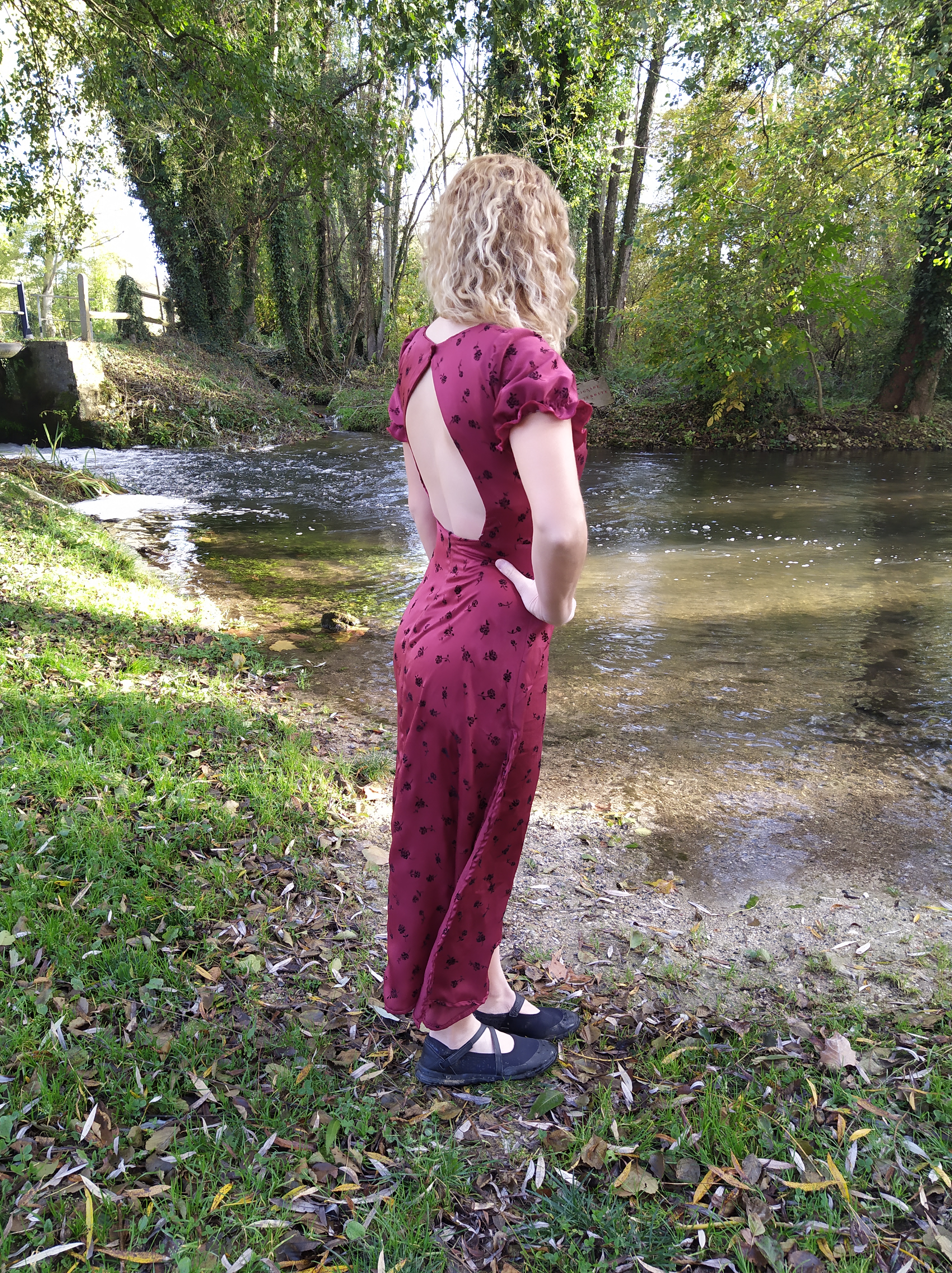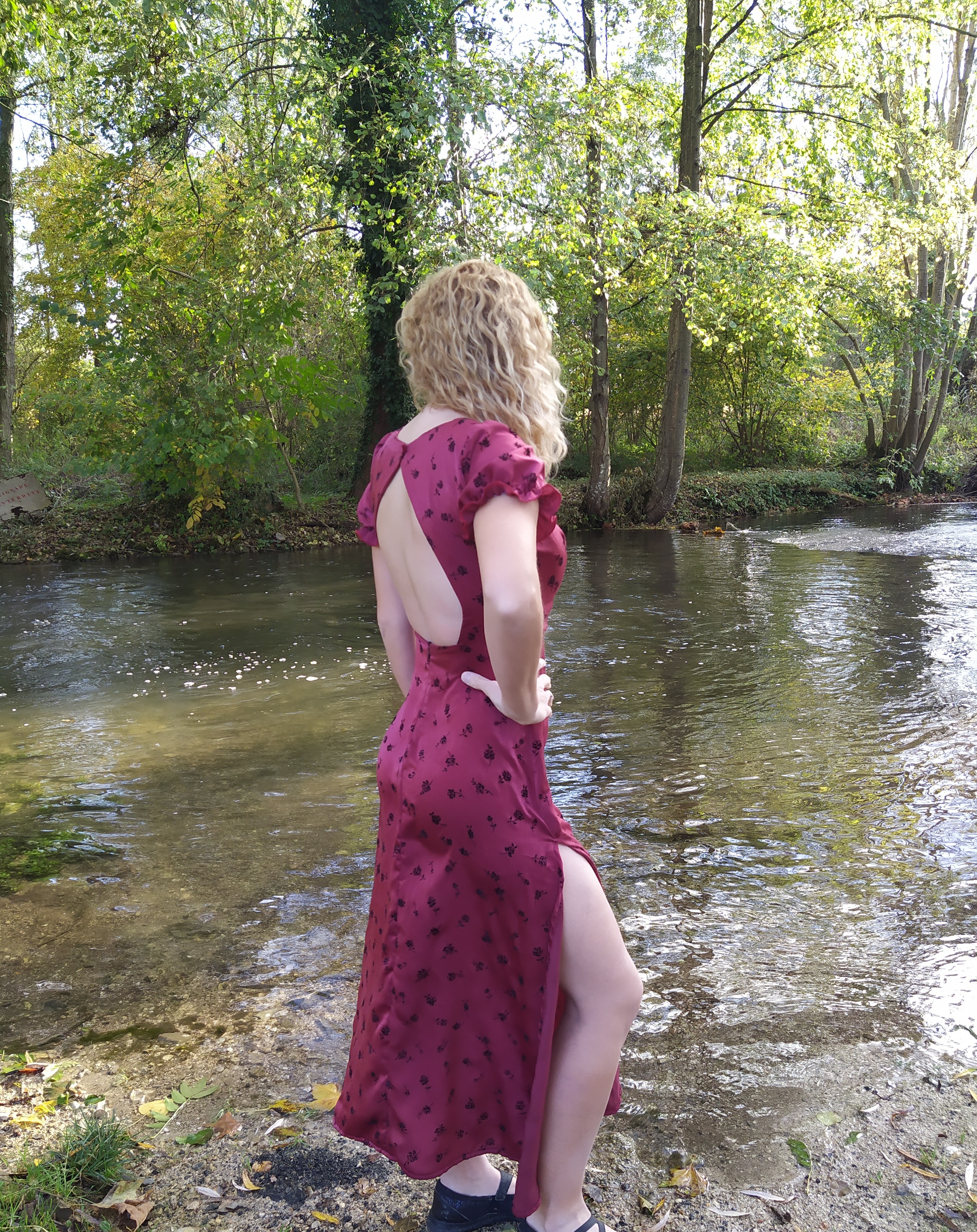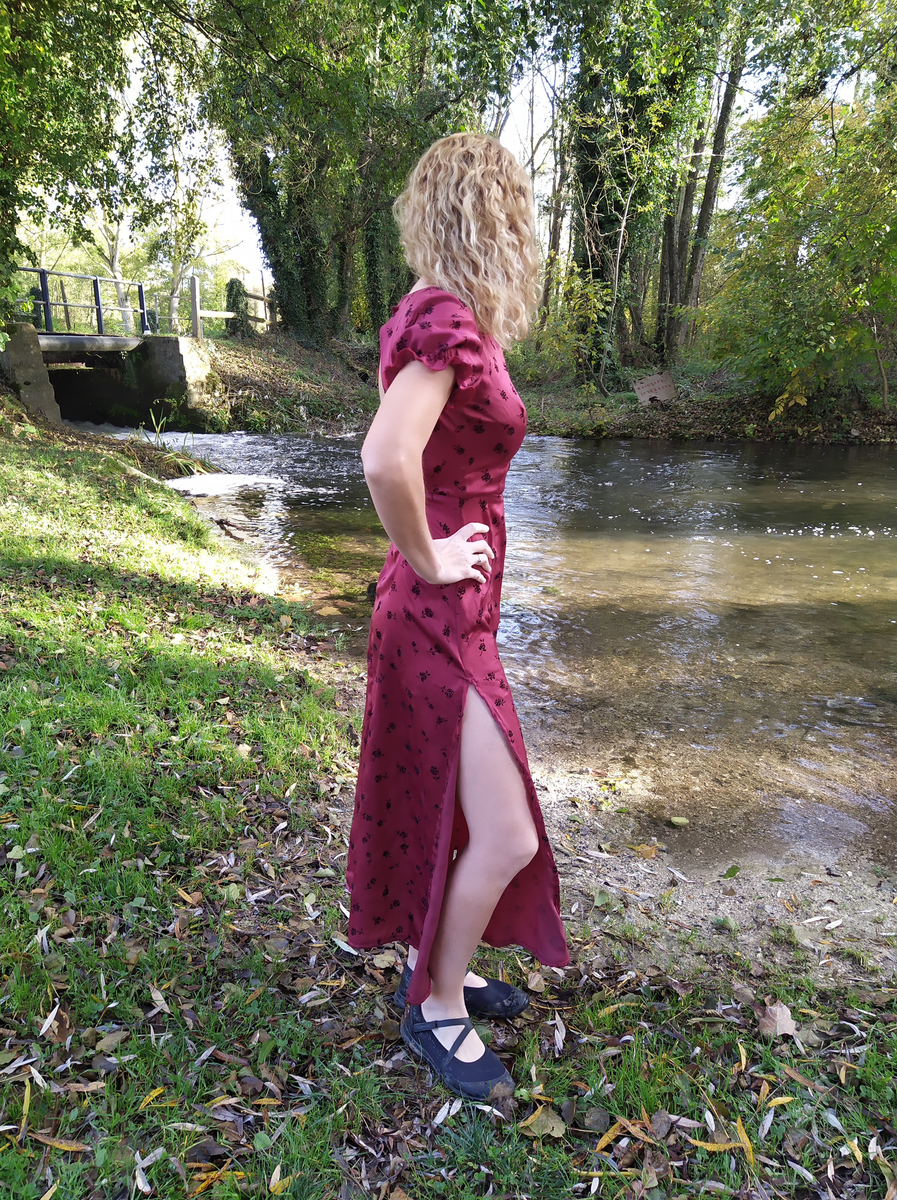 Par ailleurs , j’ai déplacé les fentes sur les côtés plutôt que sur l’avant des cuisses, la modification se révèle d’une grande simplicité.La robe existe en version longue comme ici ou en longueur genoux , avec manches courtes trop mignonnes ( mon choix s’est porté sur cette option ) ou plus longues très élégantes également .