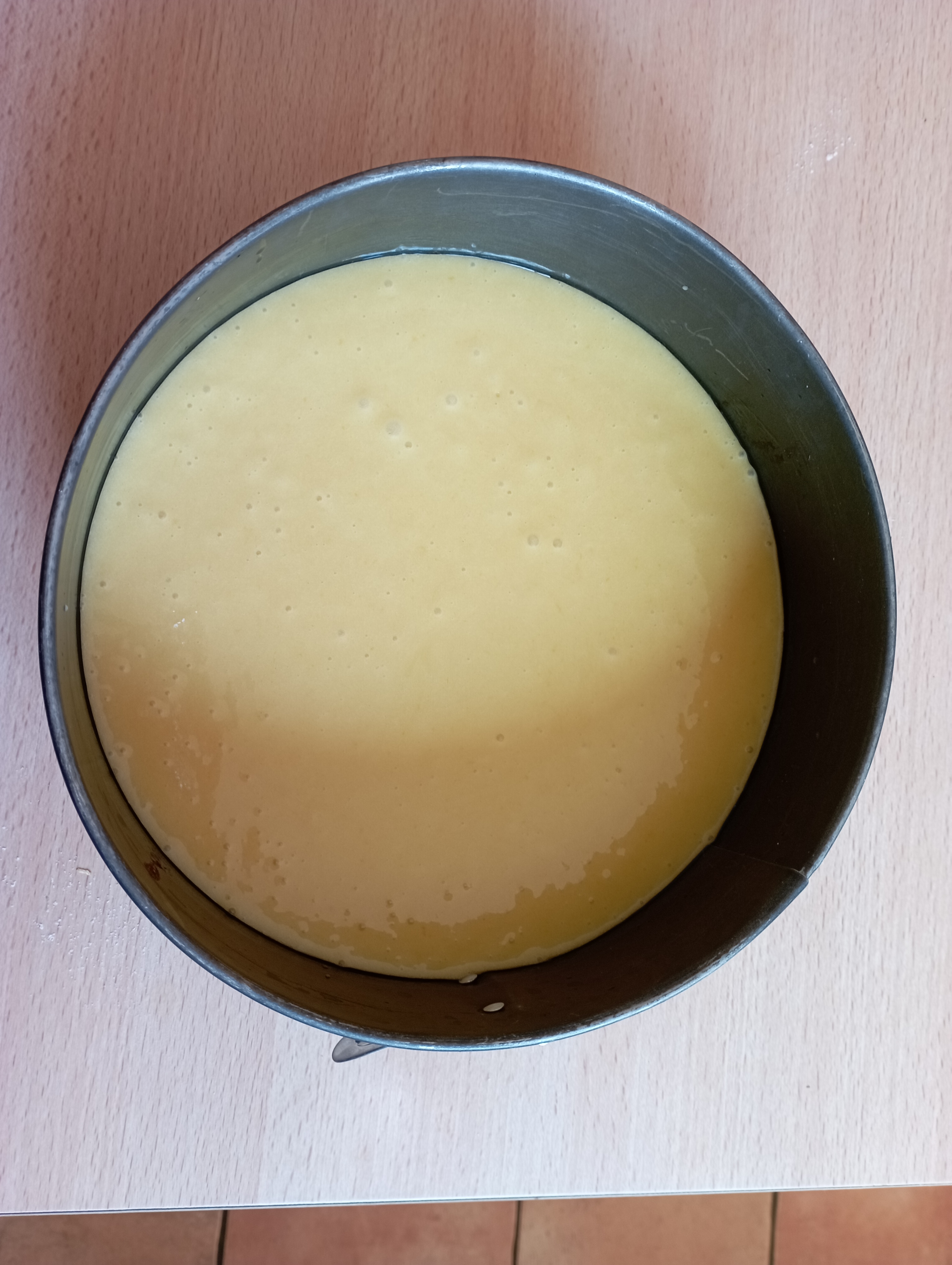 C’est la seule photo du biscuit madeleine cuit que j’ai car j’ai oublié de le photographier dans le feu de l’action. Shame on me D’ailleurs si vous mettez du Rhodoïd , c’est le moment !! Placez votre cercle sur le futur plat de service . Versez la mousse sur le biscuit et mettez au réfrigérateur pour plusieurs heures : 6 heures au moins ( ici , c’est la nuit entière pour assurer une bonne prise de la mousse )