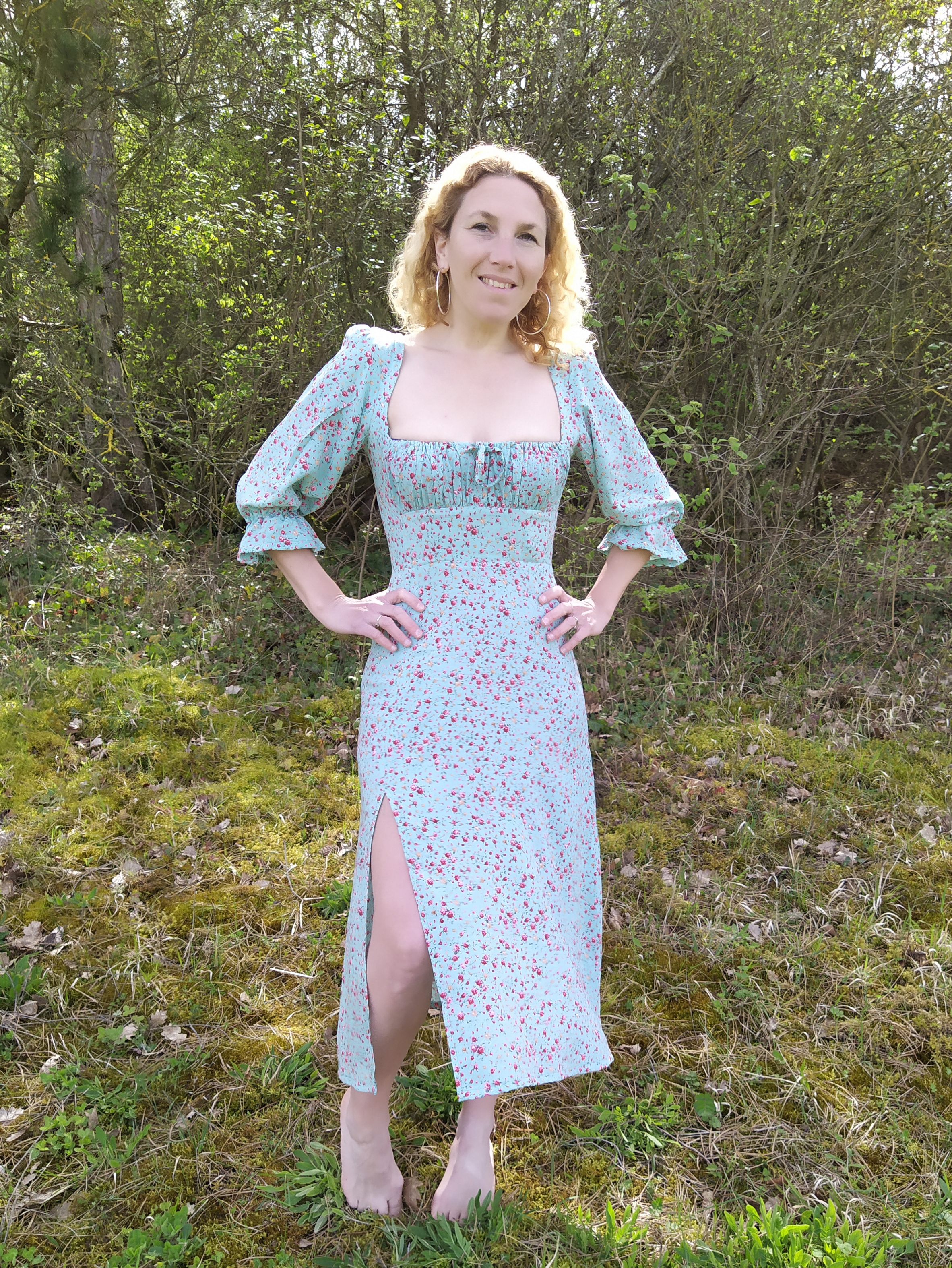 Coucou , me revoilà déjà! Je rédige ce petit article pendant le p’tit dej’ sur la robe que j’ai cousue avec amour et dont je suis très fière : le modèle Carthage de Bélène Paris dont les partons me séduisent tous !!! La robe Carthage se caractérise par un empiècement froncé à la poitrine très original et bien conçu , une jupe longue ou courte fendue et des variations de manches pleines de charme ! J’ai acheté le modèle sur Makerist dès sa sortie et attendu de dénicher le bon tissu pour me lancer.