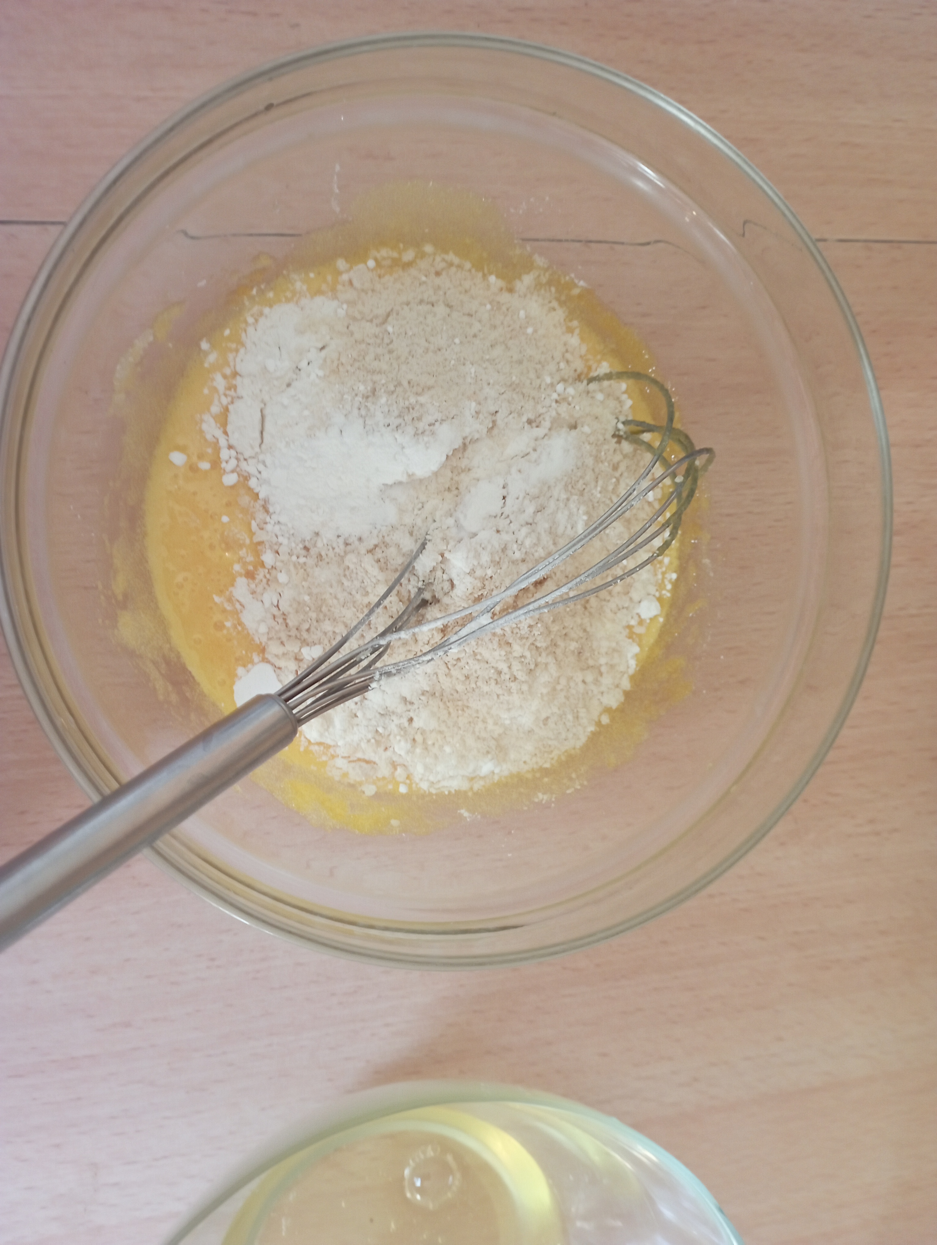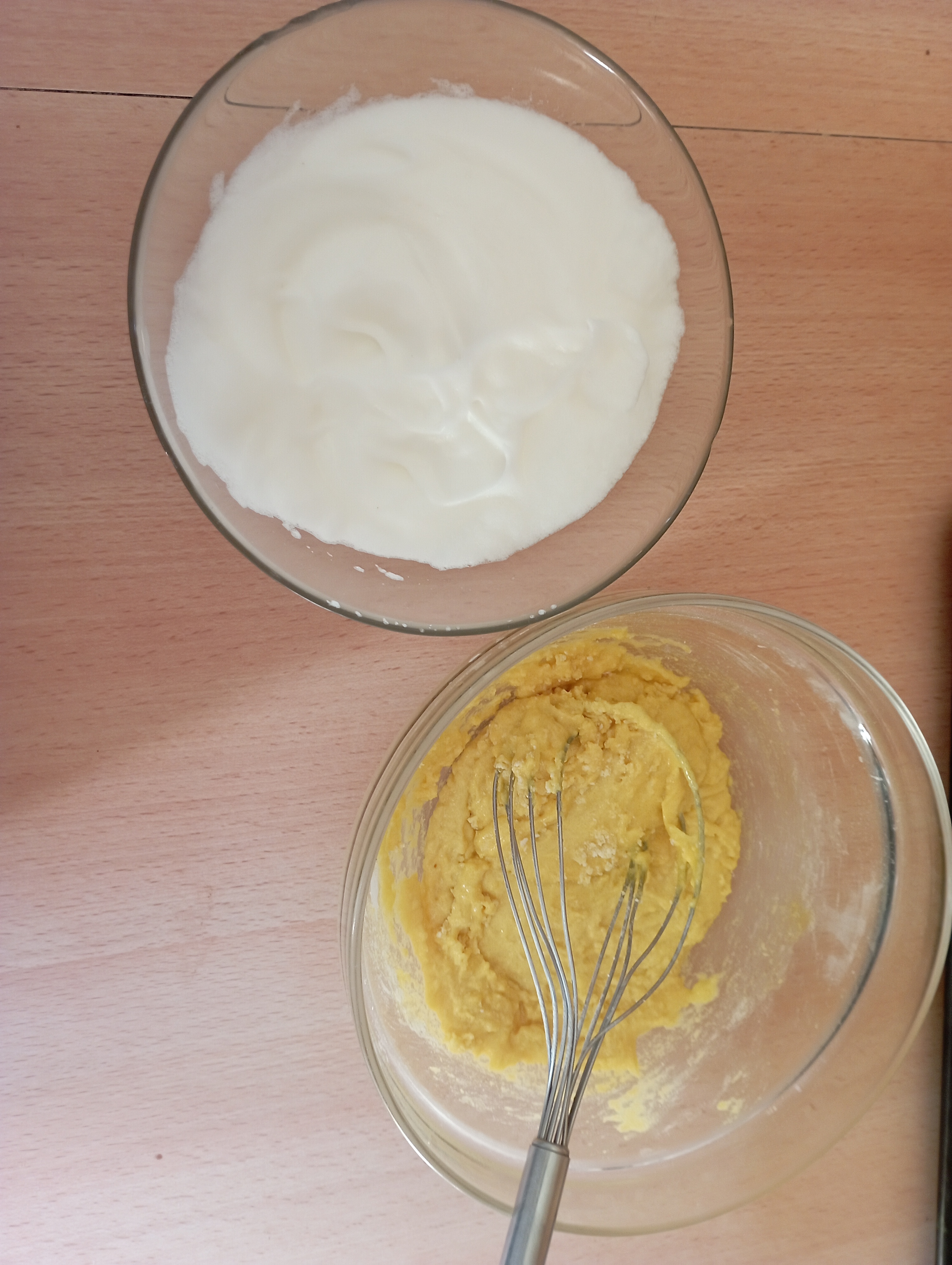 Incorporez délicatement les blancs à l’autre mélange à l’aide d’une maryse.
