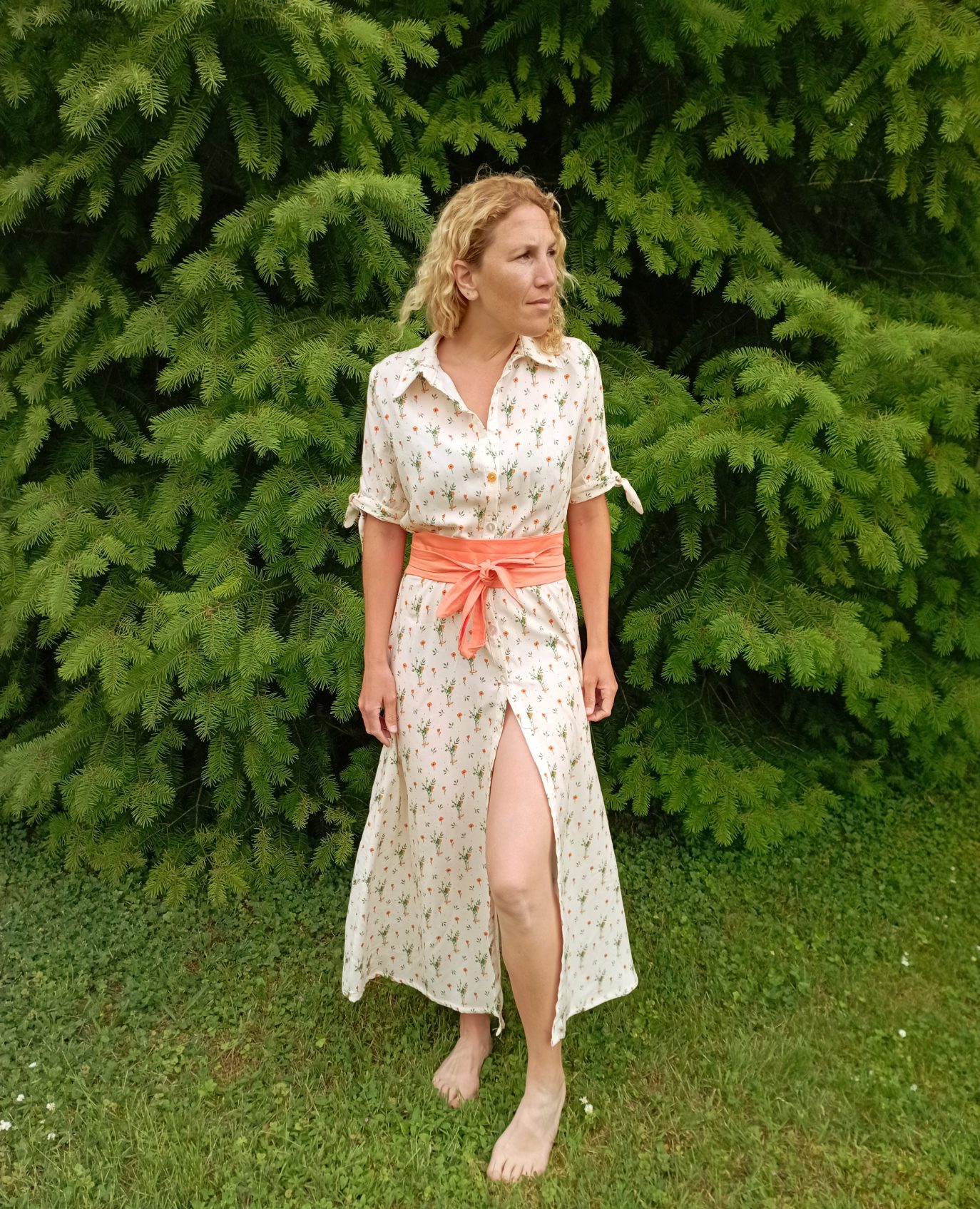 Celle-ci la version cintrée longue avec manches courtes nouées et mes jumeaux derrière moi !!