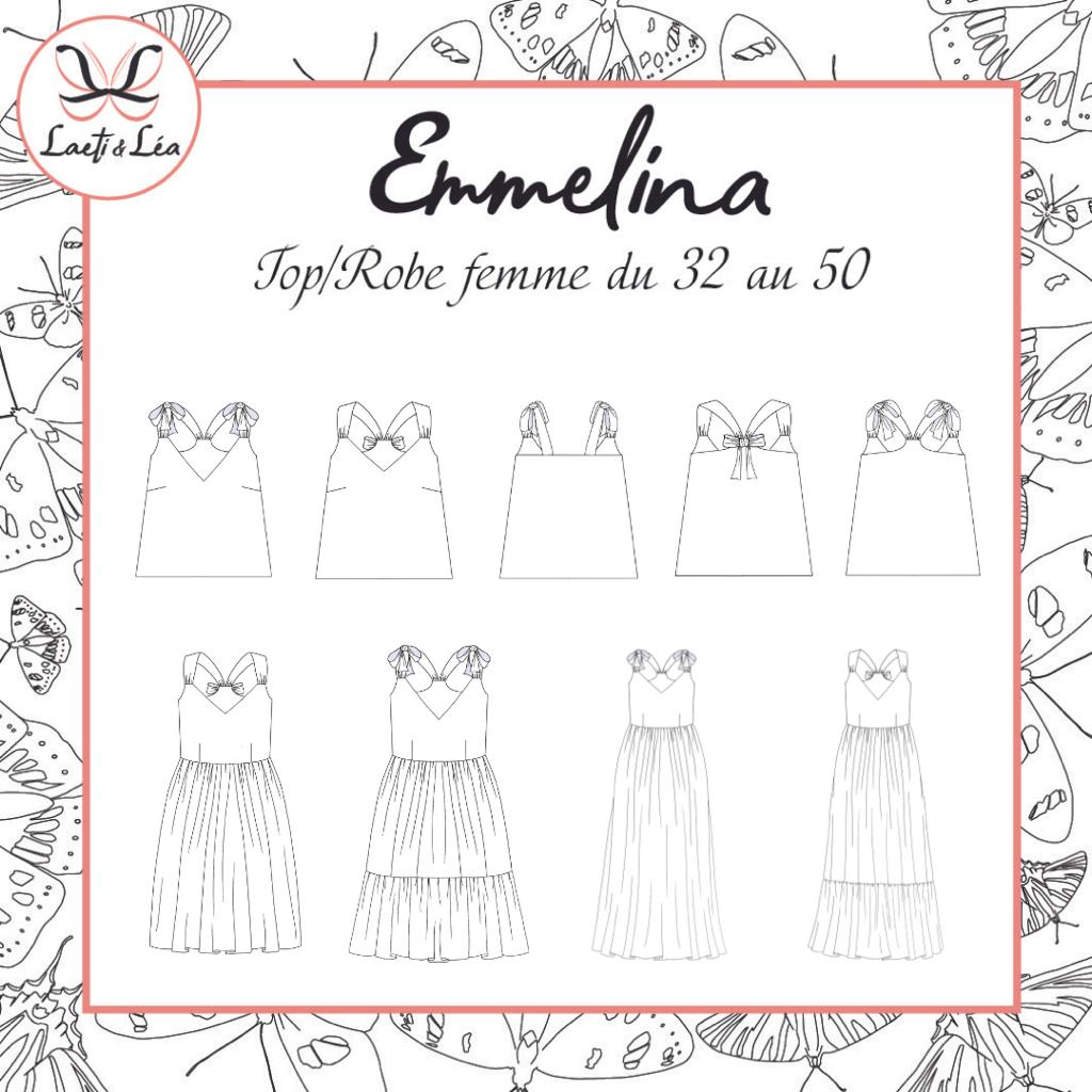 Bonjour , ce 12 juin est sorti Emmelina , le tout nouveau patron de LaetietLéa que j’ai encore une fois eu la chance de tester. Il s’agit d’un patron de top mais aussi de robe qui vous accompagnera pour les beaux jours avec son jeu de bretelles nouées et son beau décolleté en V. Voici tout de suite la planche des options proposées dans ce superbe patron .