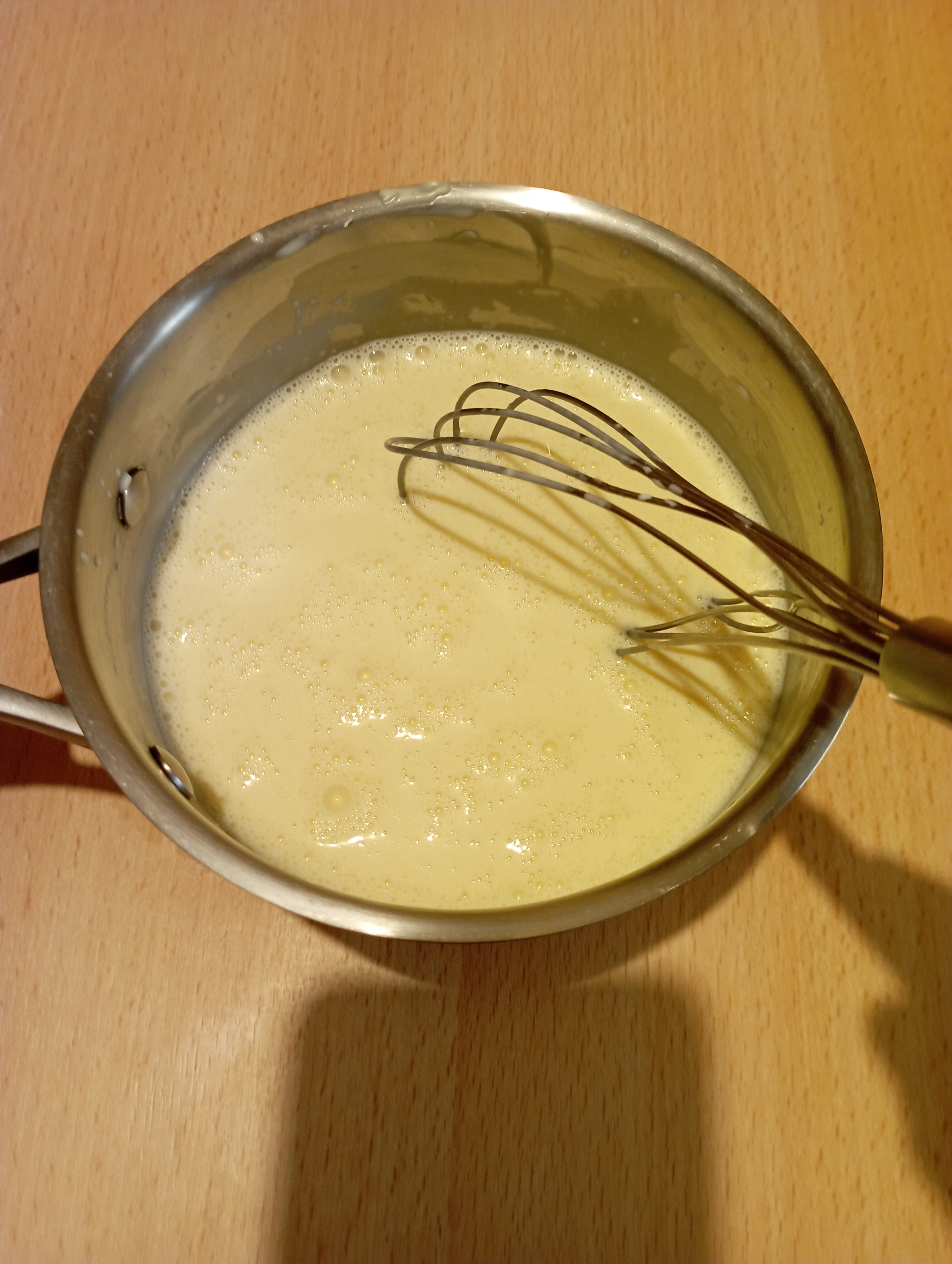 Incorporez ensuite encore en 3 fois la crème restée au frais et remuez de nouveau énergiquement . Laissez refroidir et mettez au frigidaire pour toute la nuit . Vous reconnaissez mon fouet tout déglingué mais toujours efficace 😀