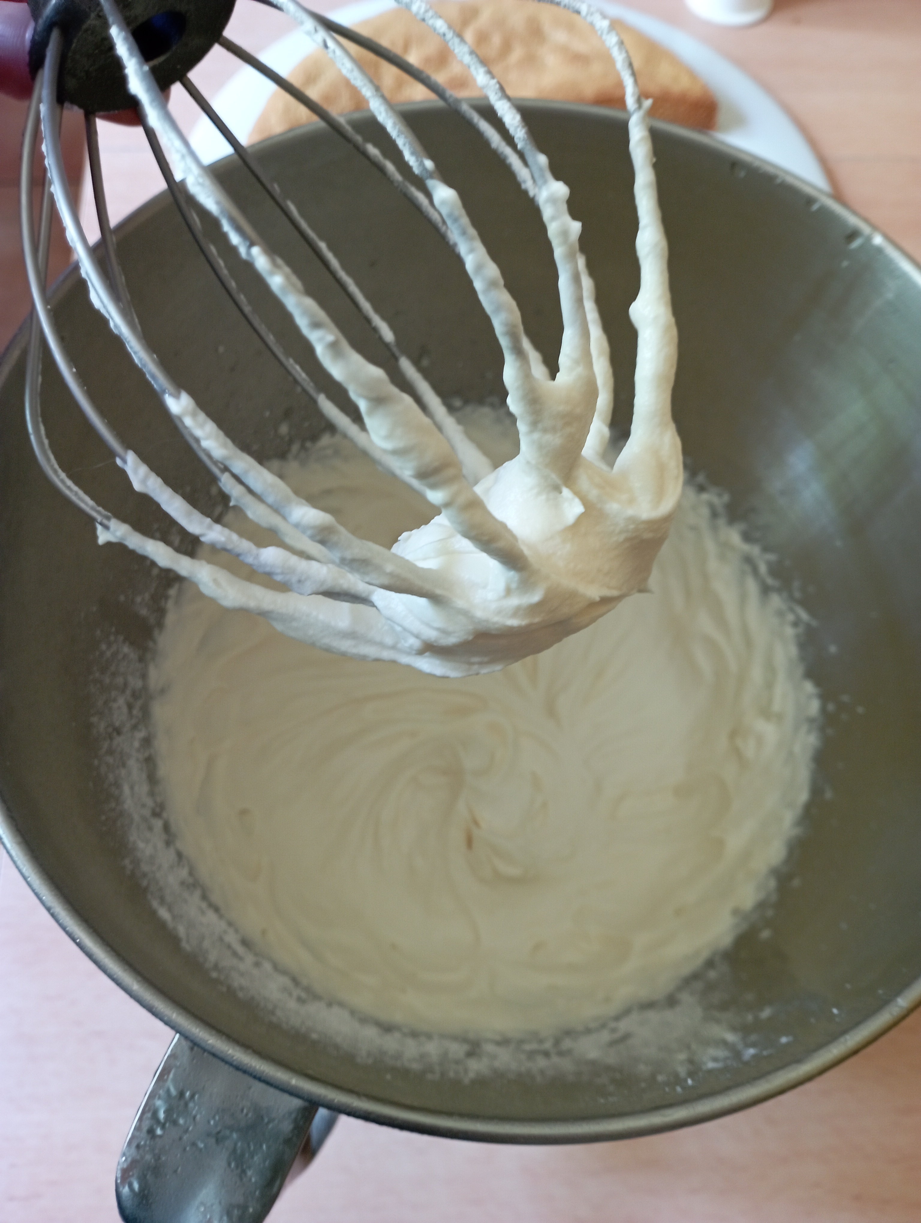Récupérez votre bol ou saladier , versez-y la ganache et fouettez 1 min à vitesse moyenne puis 4 min à pleine puissance pour obtenir une ganache montée . Elle tient entre les rayons .