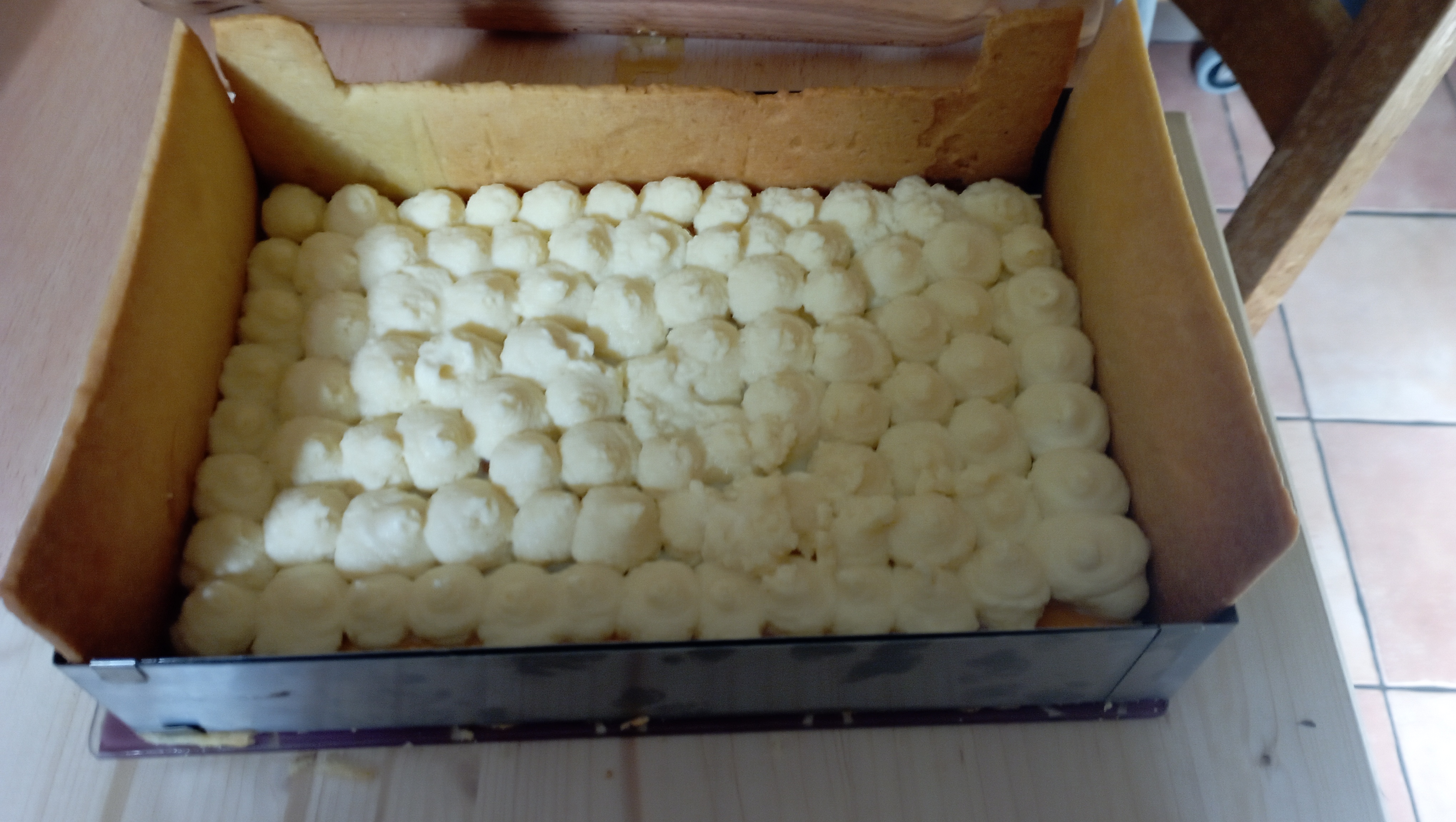La photo n’est pas top mais j’étais complètement stressée en faisant le montage parce que j’y ai mis trop de charge émotionnelle ( oui dans un gâteau , c’est un peu exagéré mais j’aime vraiment trop la pâtisserie et en plus je recevais mes cousins, je voulais faire vraiment plaisir ) alors soyez indulgents.