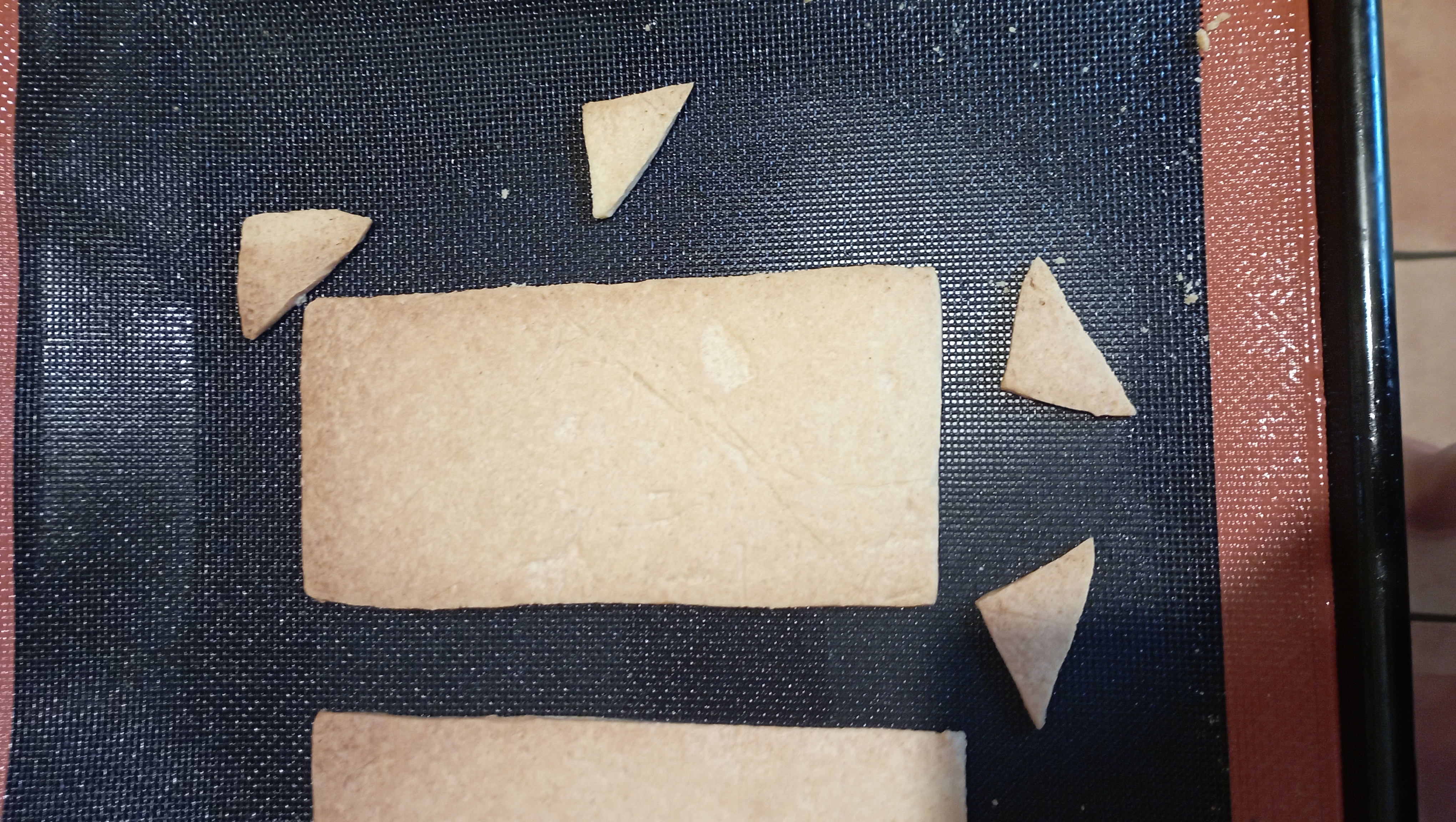 Les triangles se sont légèrement distendus à la cuisson car ils étaient les parties les moins froides lors de la coupe , je retiens qu’il faut vraiment agir avec la pâte la plus froide possible.