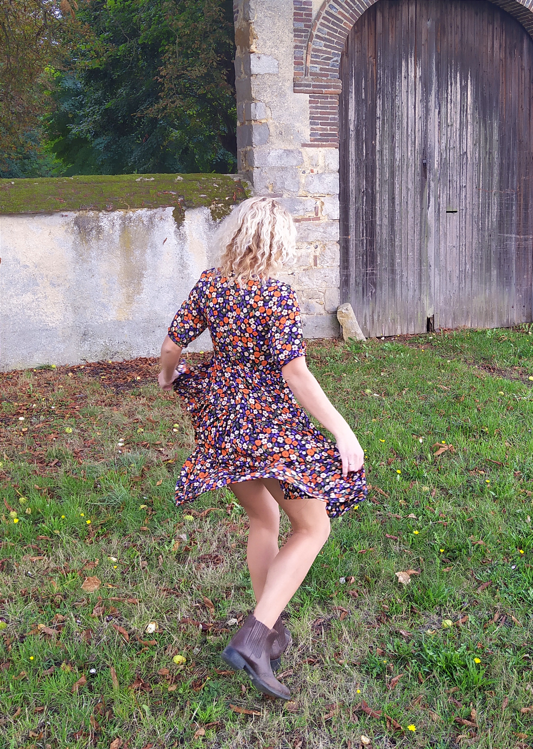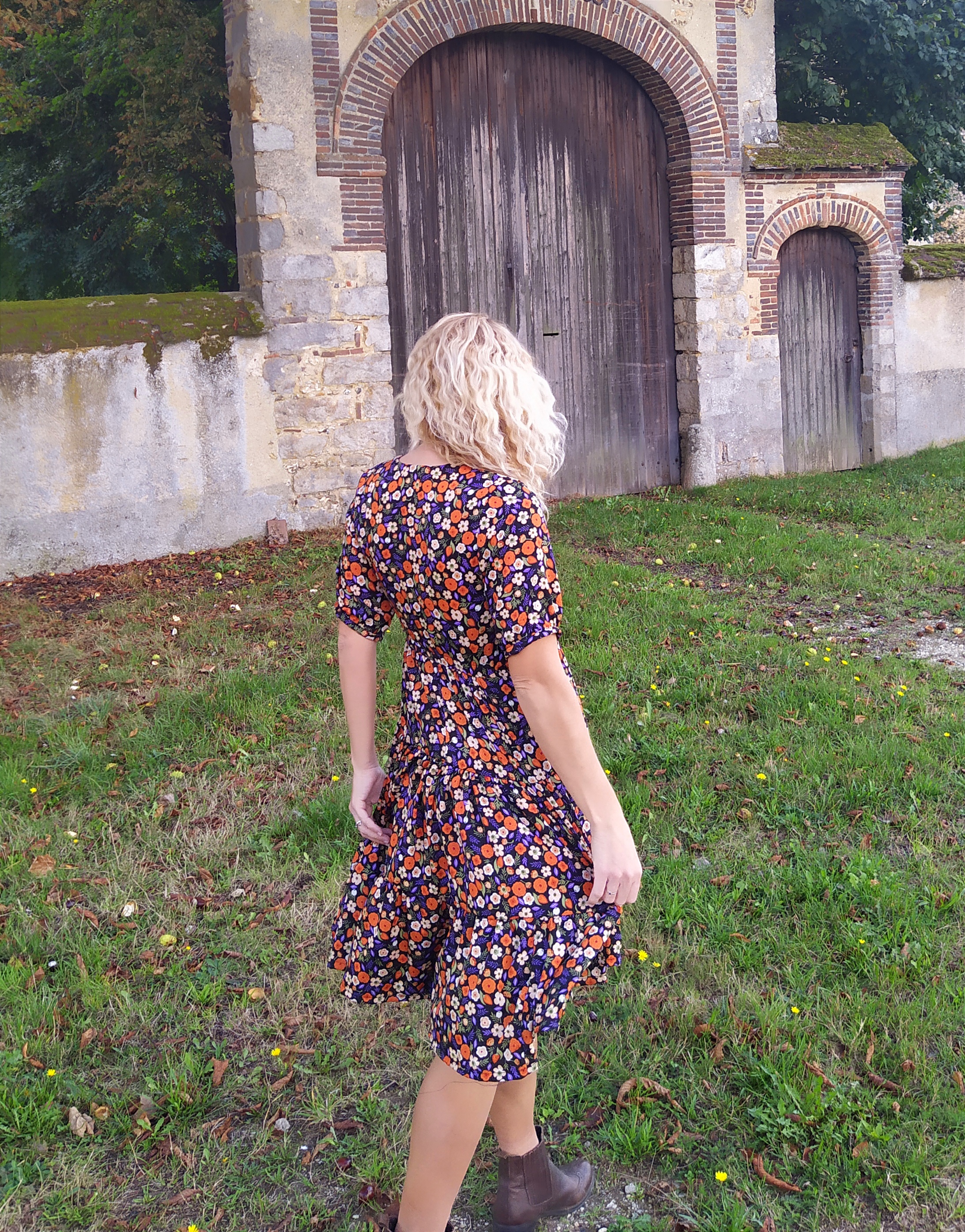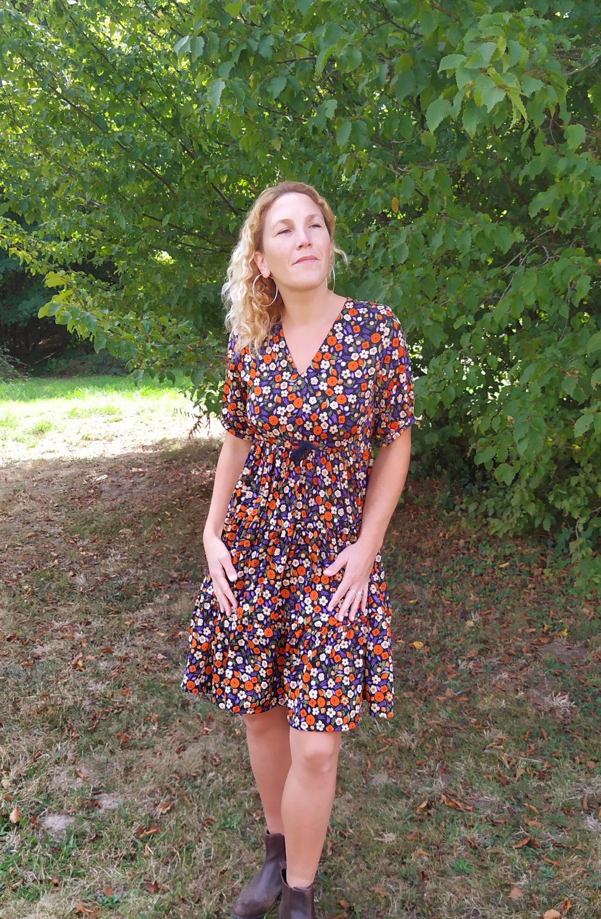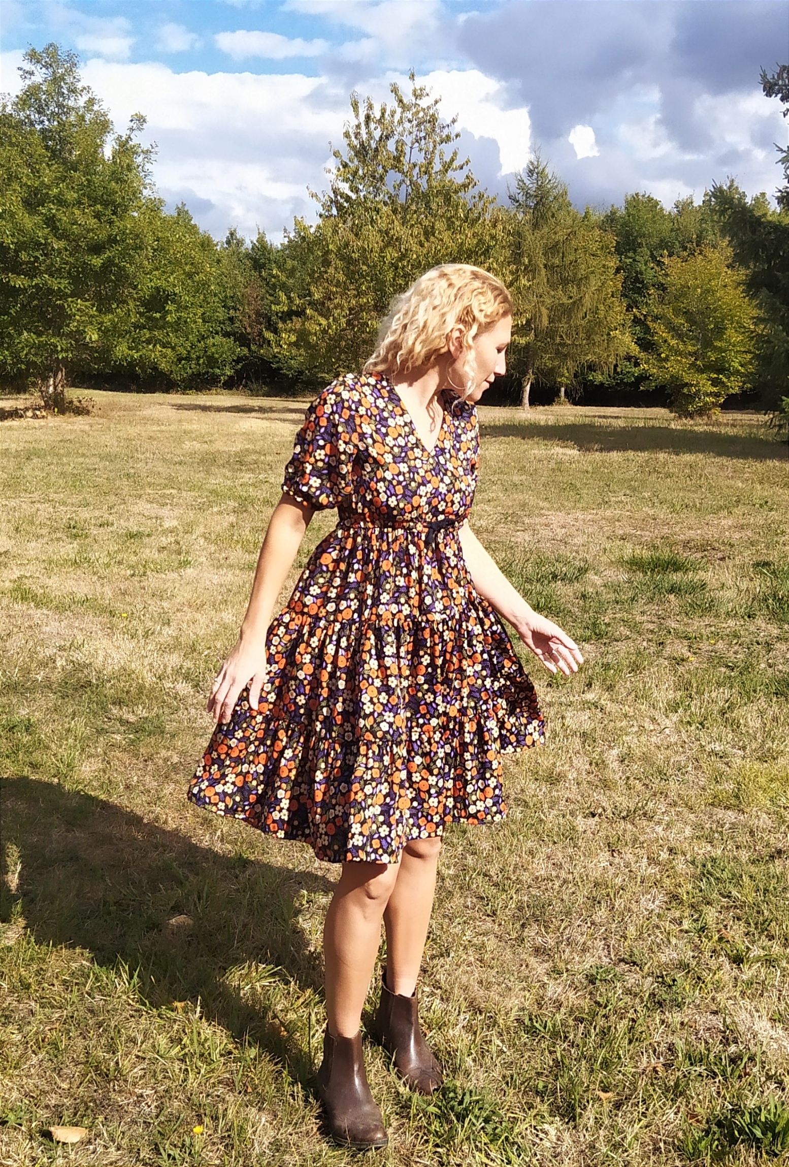 J’ai coupé le 34 et choisi l’option manches courtes. Je suis complètement amoureuse du modèle qui m’a amenée à réaliser beaucoup de fronces ( et habituellement je les évite hihi, vous aurez remarqué que les modèles que je couds n’en comportent jamais , sauf cas très rare comme pour ma robe provençale Atelier Maelstrom qui m’avait séduite également) . La coupe est très féminine et elle tourne!!!!