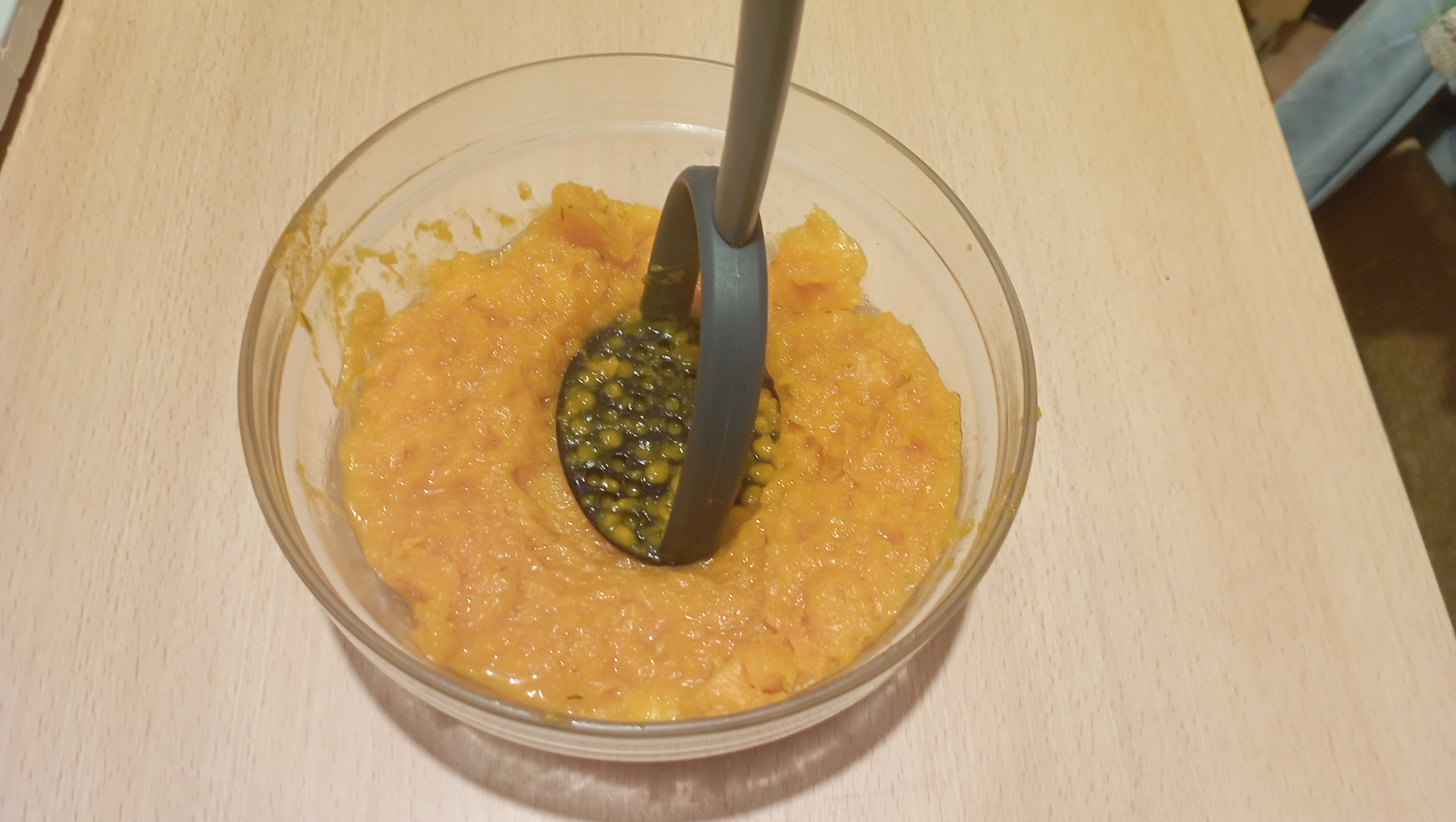 Matériel : une sorte de sauteuse ( impossible de retrouver le vrai nom , parfois j’ai des bugs cérébraux , ça reviendra plus tard ), une poêle , 6 mini cocottes en céramique ( vous en trouverez pour 2,99 euros l’unité chez Gifi ), un presse-purée, un saladier.
