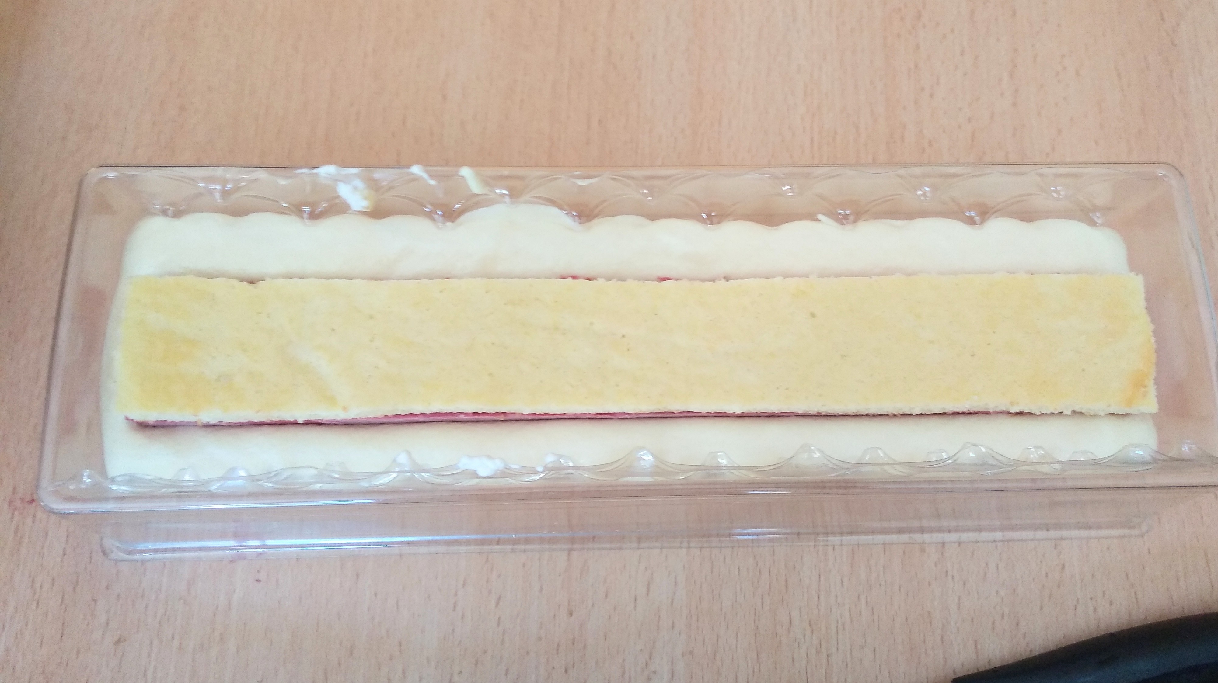 Passons au montage !!! :Placez si vous en possédez une , la plaque matelassée au fond du grand moule ( c’est complètement facultatif mais très joli). Versez une partie de la mousse vanille au fond du grand moule à bûche. Découpez une bande de génoise de la taille du moule à insert et une de la taille du grand moule . Démoulez l’insert , placez la couche de génoise dessous et mettez au centre de votre mousse vanille. et hop , au congélateur jusqu’au jour de la dégustation!