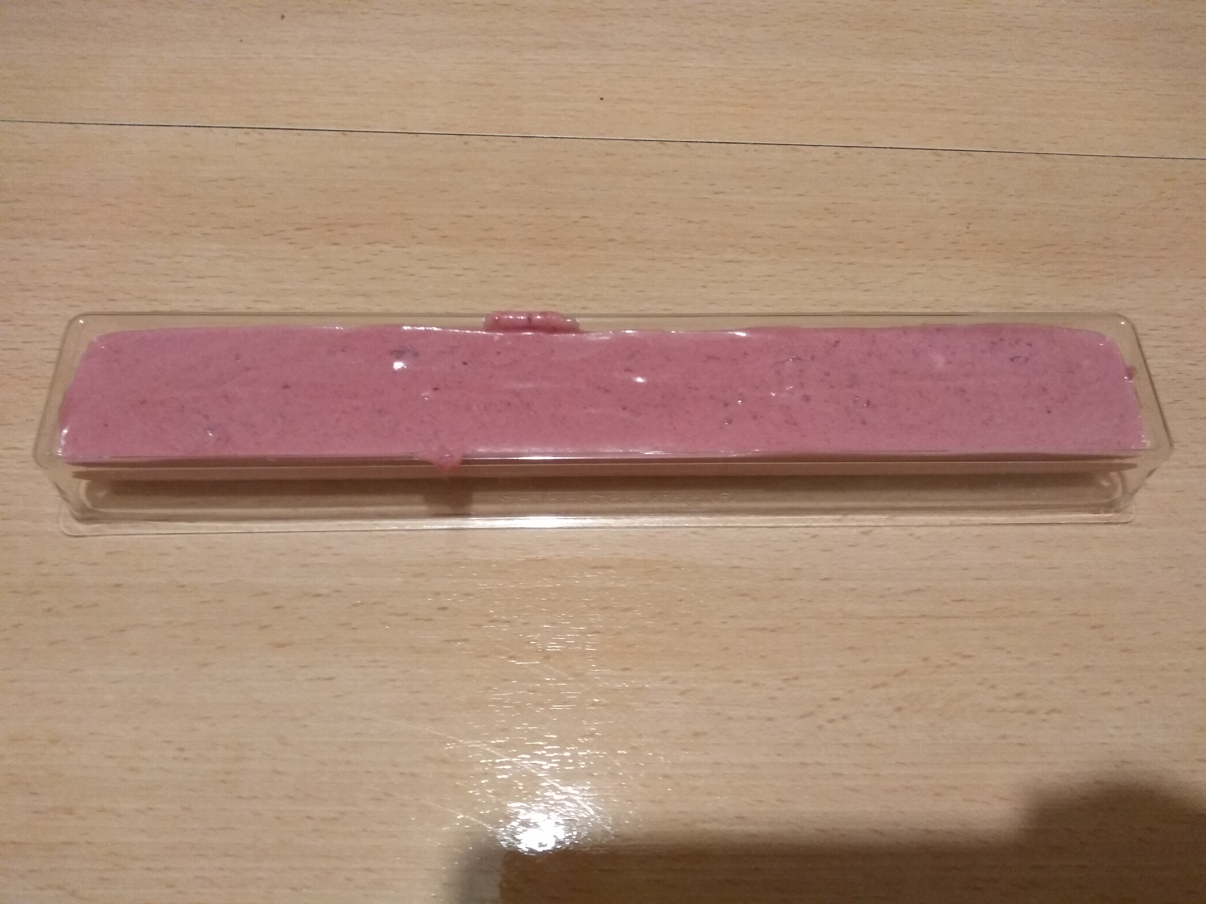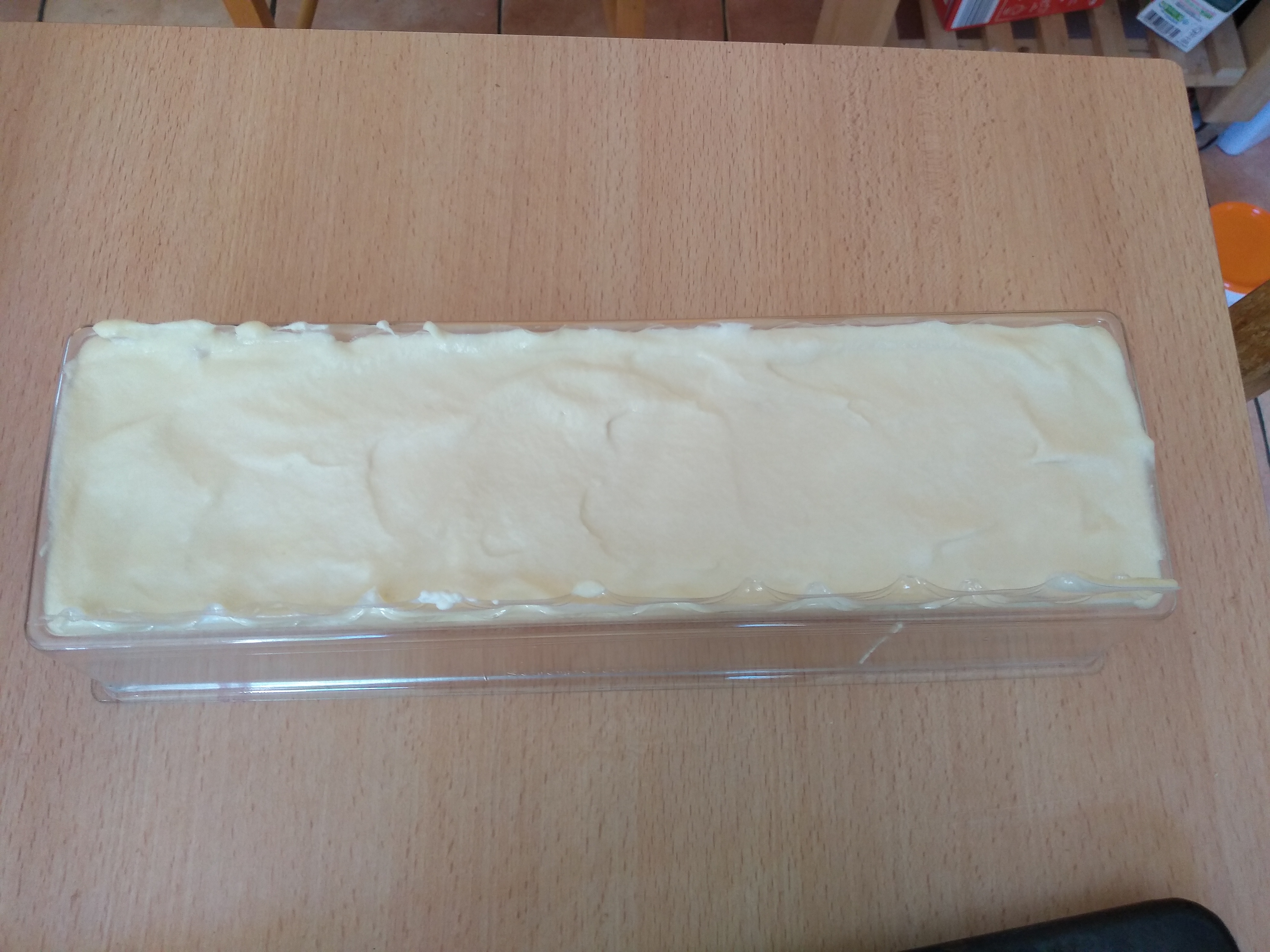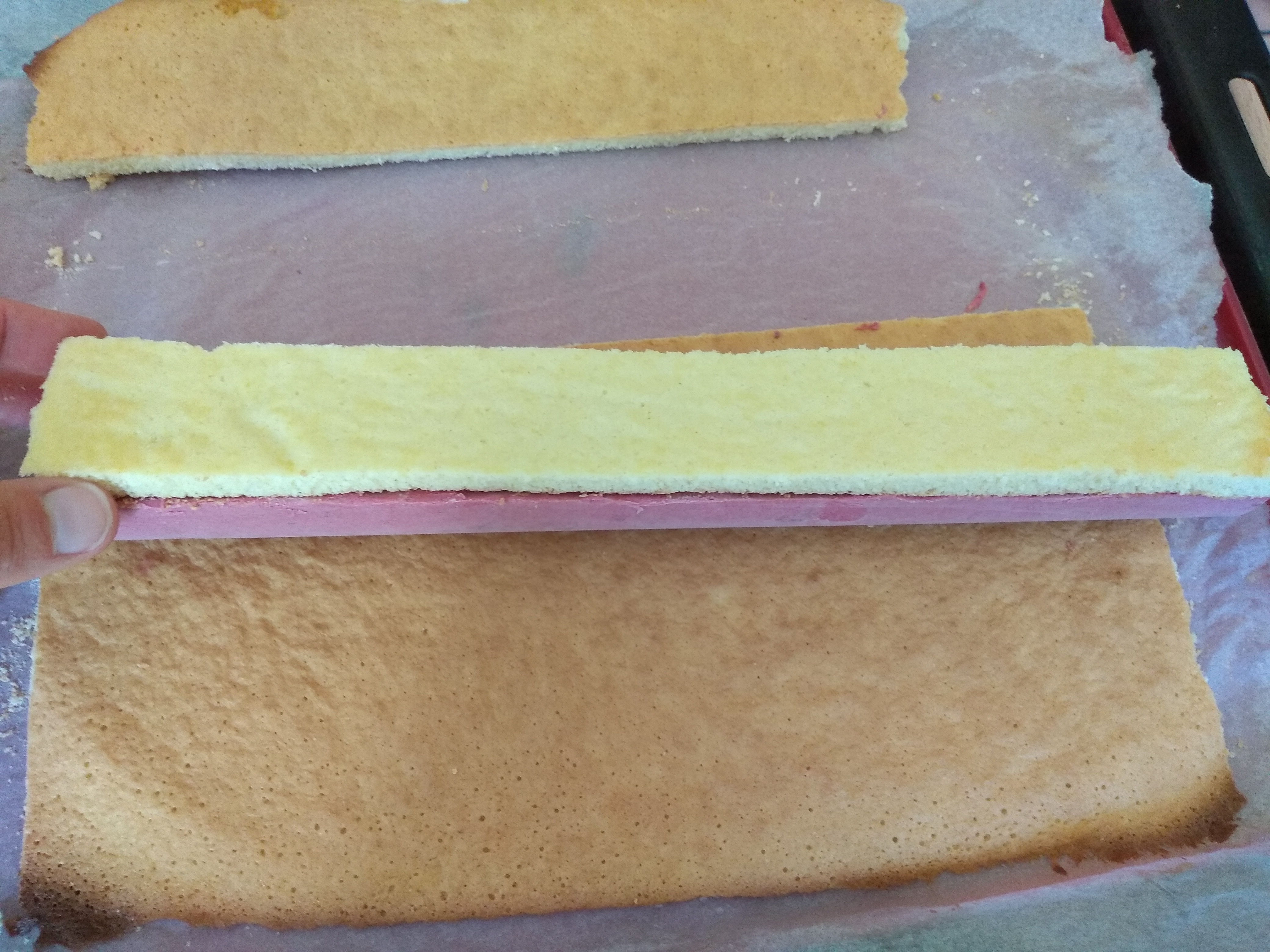 Passons au montage !!! :Placez si vous en possédez une , la plaque matelassée au fond du grand moule ( c’est complètement facultatif mais très joli). Versez une partie de la mousse vanille au fond du grand moule à bûche. Découpez une bande de génoise de la taille du moule à insert et une de la taille du grand moule . Démoulez l’insert , placez la couche de génoise dessous et mettez au centre de votre mousse vanille. et hop , au congélateur jusqu’au jour de la dégustation!