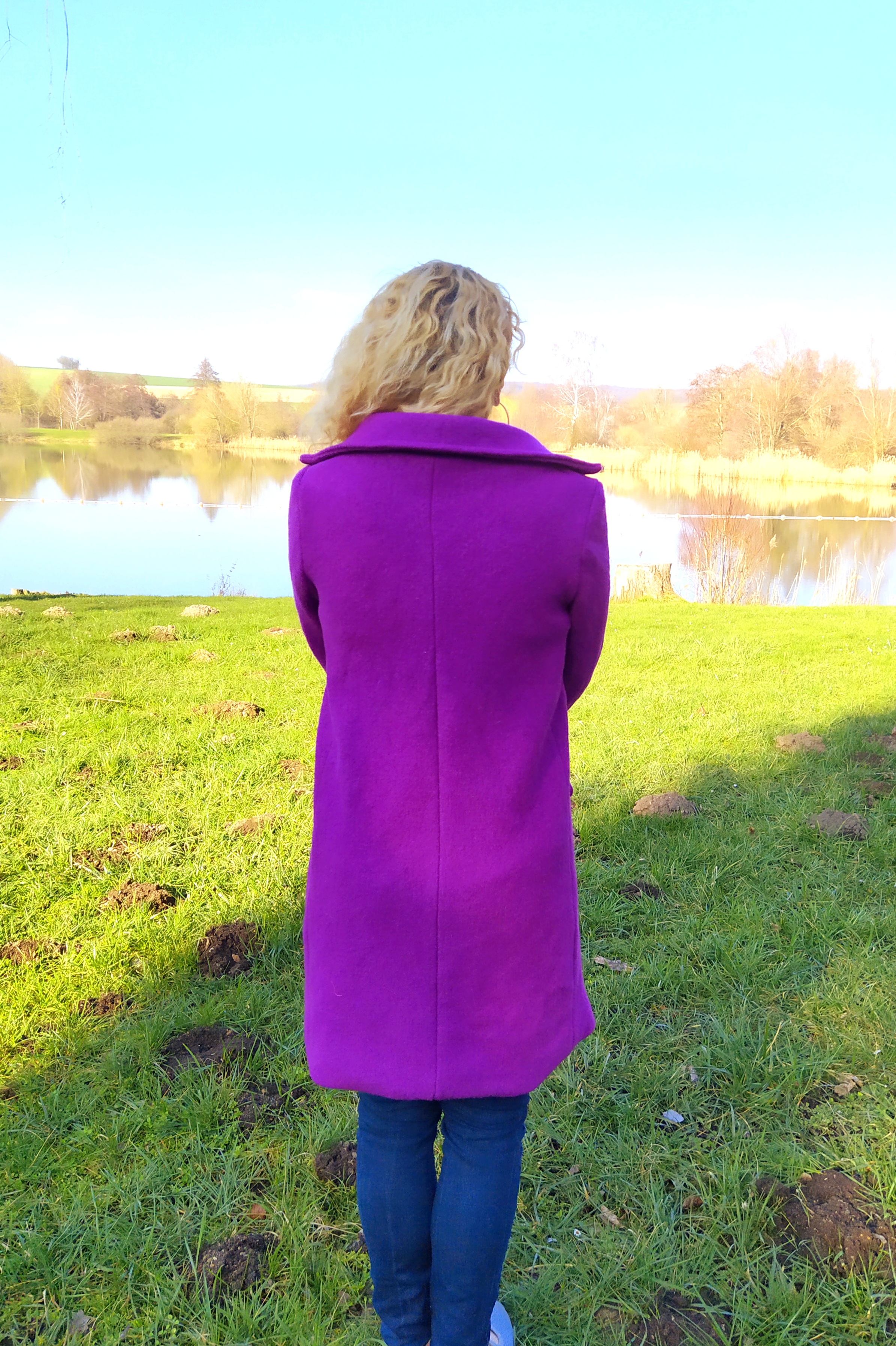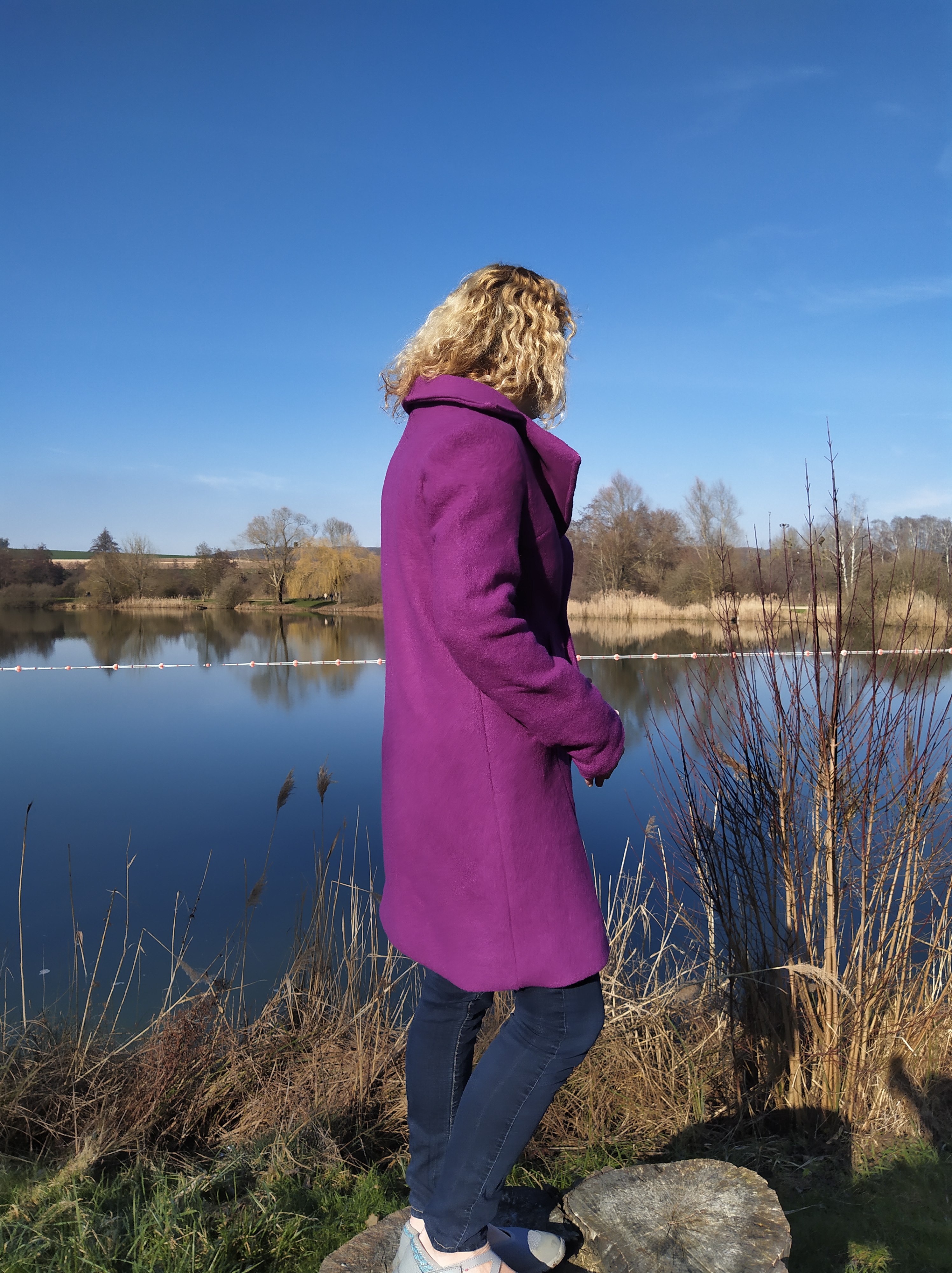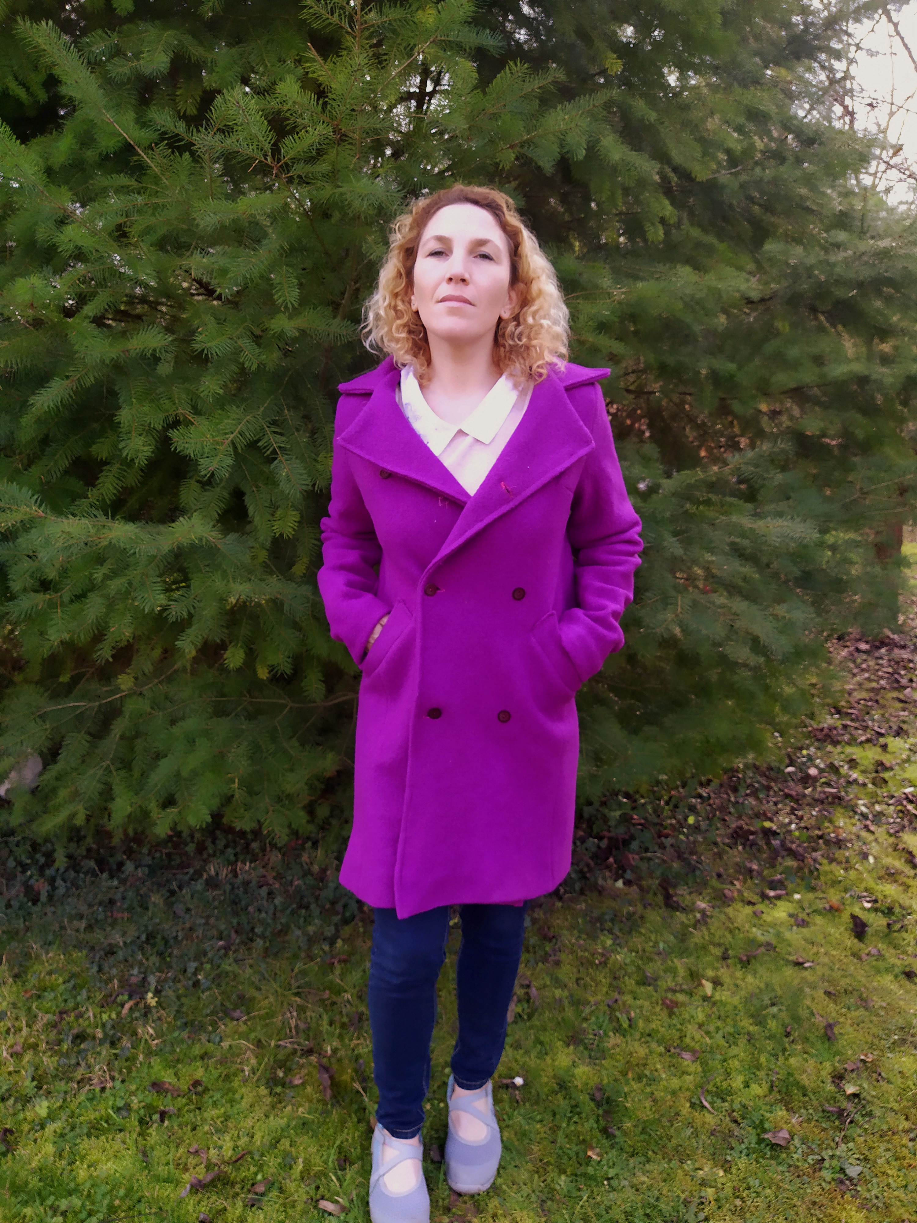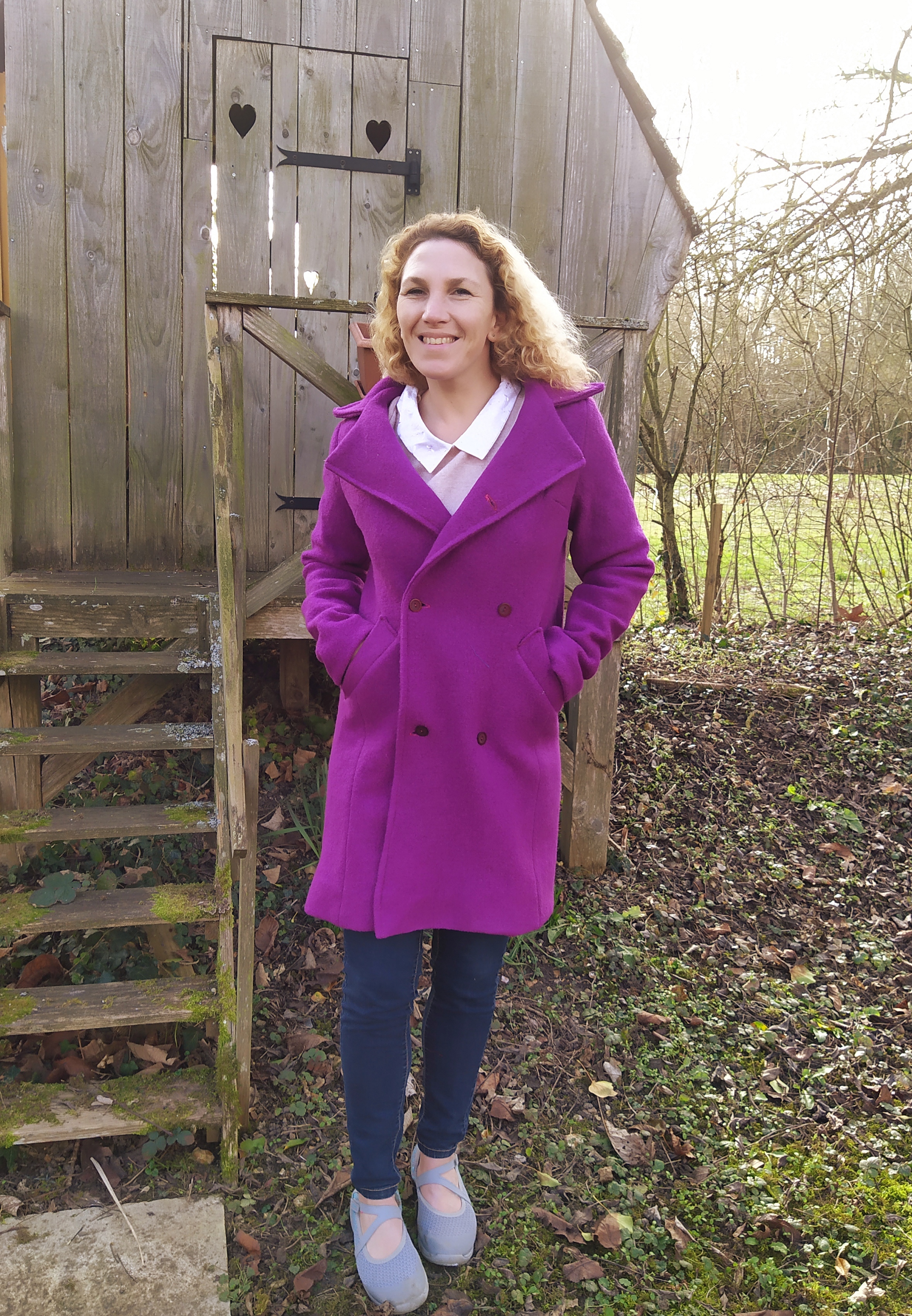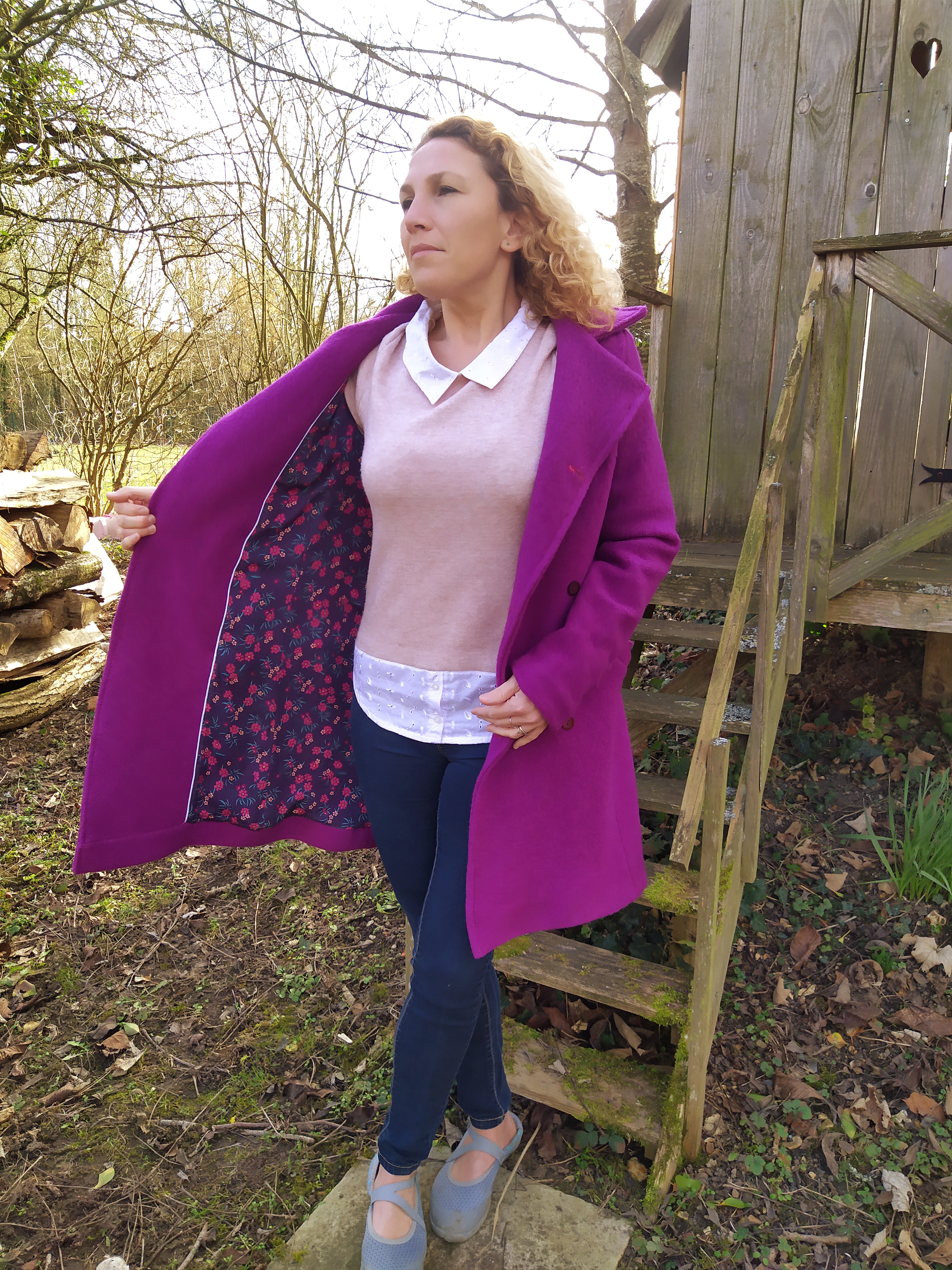 Le manteau est confortable et féminin . J’ai utilisé moins de 3 mètres de tissu . Il reste de quoi coudre un béret assorti !