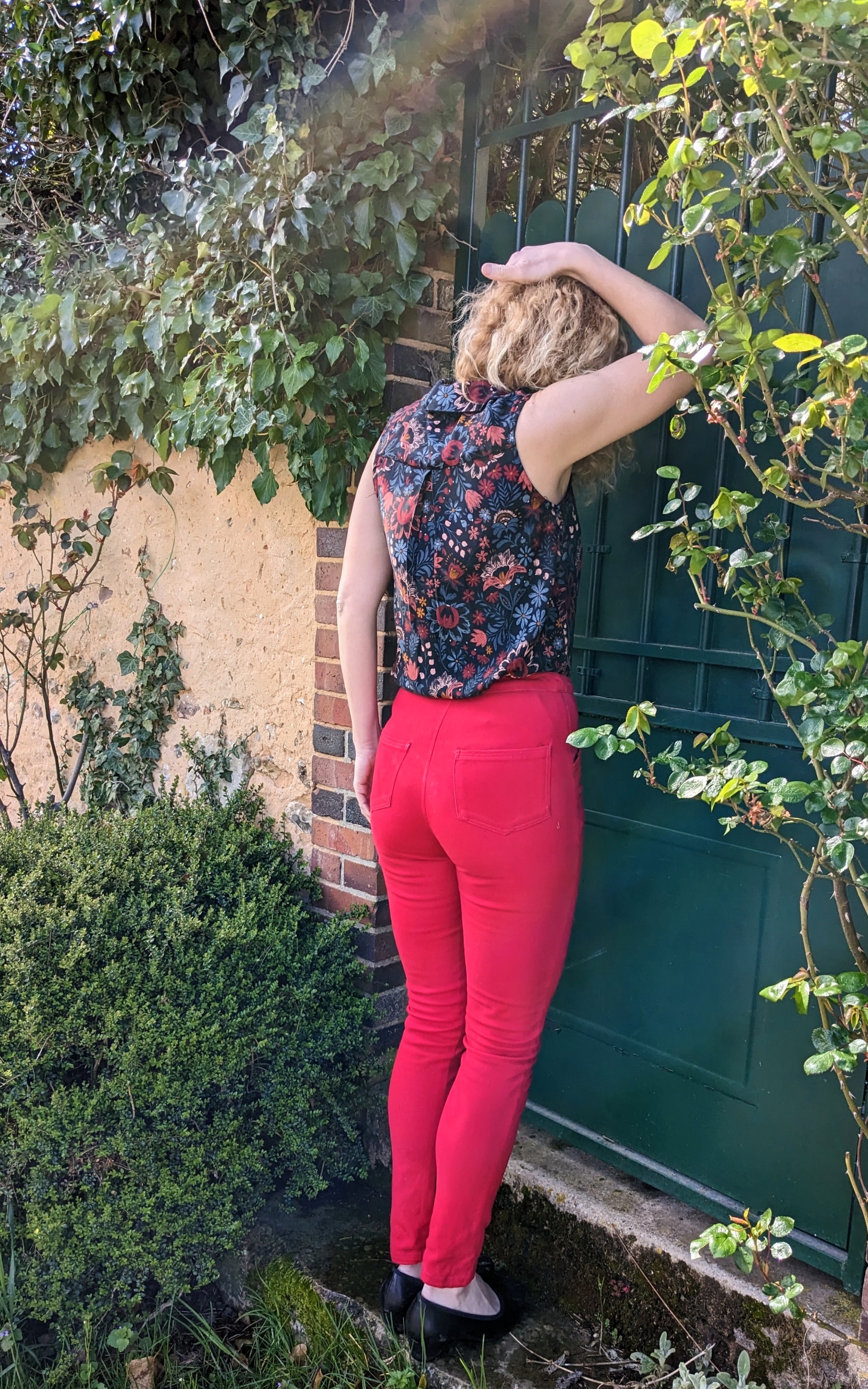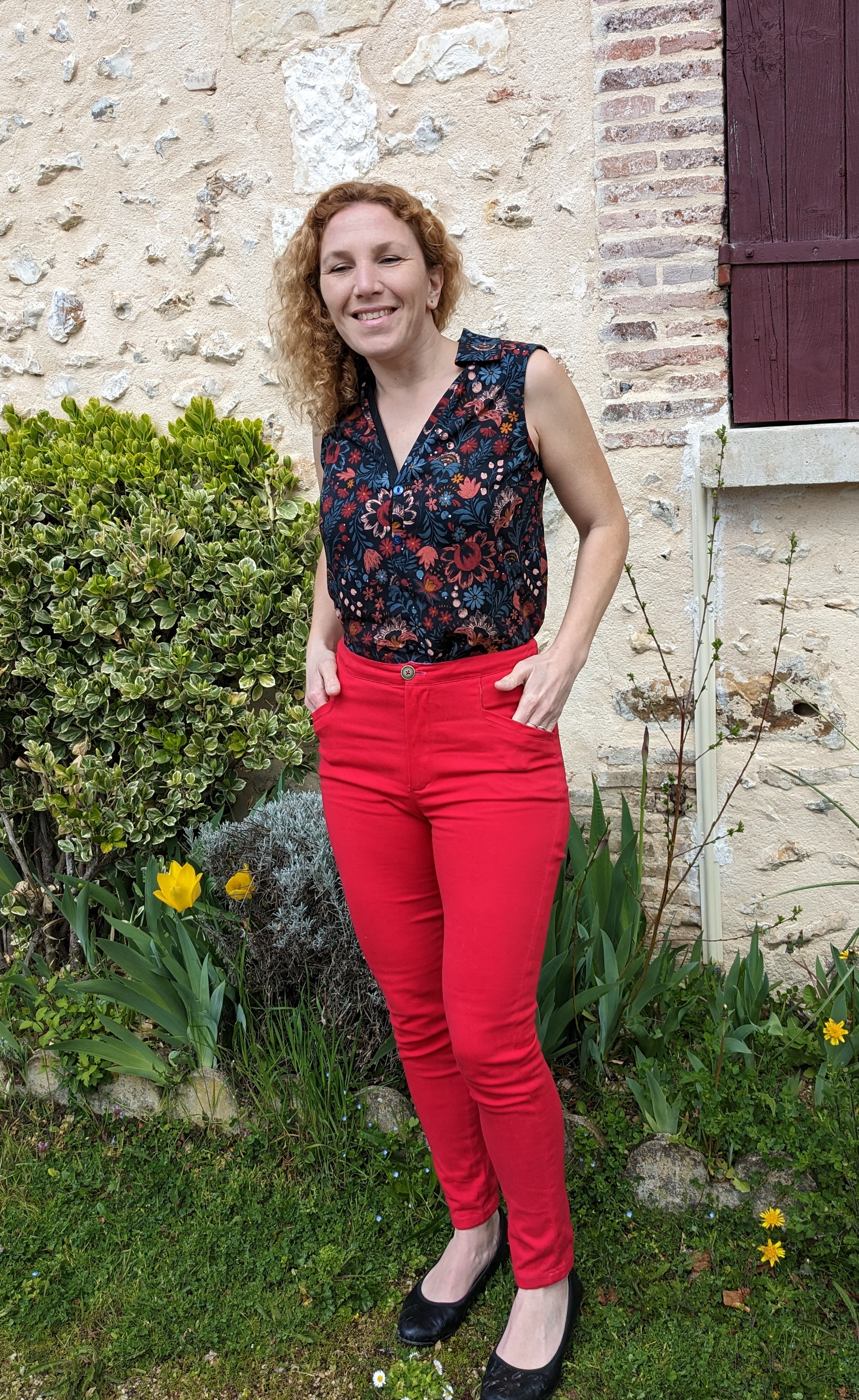 En bas , voici donc enfin Safran taillé dans un chino framboise de Pretty mercerie ( la couleur est assez éclatante même après plusieurs passages en machine ). Je crois avoir choisi la taille 36. Pas d’arcuates sur mes poches arrière cette fois-ci mais je me suis lâchée sur mon jean Candy ( next post 😉 )