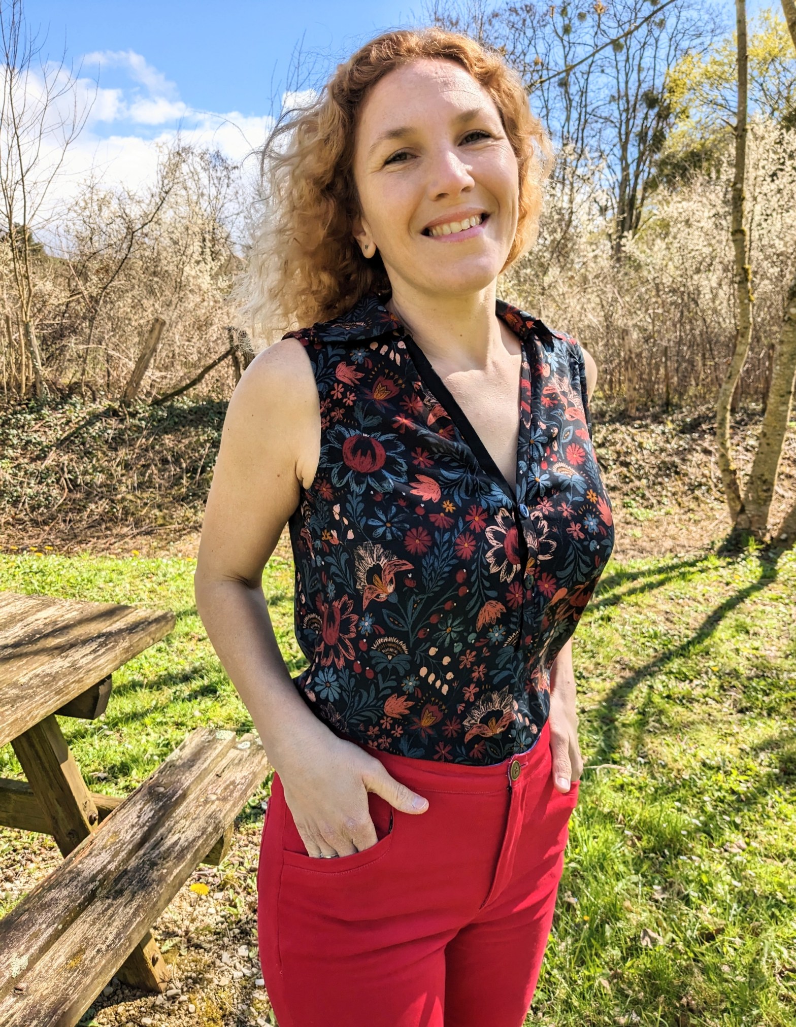 Bonjour , j’ai cousu il y a plusieurs mois mon troisième Jean Safran de Deer and Doe, ma marque préférée ( je radote mais tant pis !) , j’ai même réalisé un tuto du montage des poches avant , je l’ai porté plusieurs fois et pourtant je ne l’avais pas encore pris en photos !!!! Il méritait que je lui couse un haut assorti et dès que j’ai retrouvé un peu d’oxygène créatif ( + du temps et de calme ) , j’ai cousu la blouse Charlie née de la collaboration entre Carole et Emily aka La Robe du chat , créatrice dont les patrons valent vraiment le détour !! C’est par ici pour découvrir son univers féminin à souhait et chic :