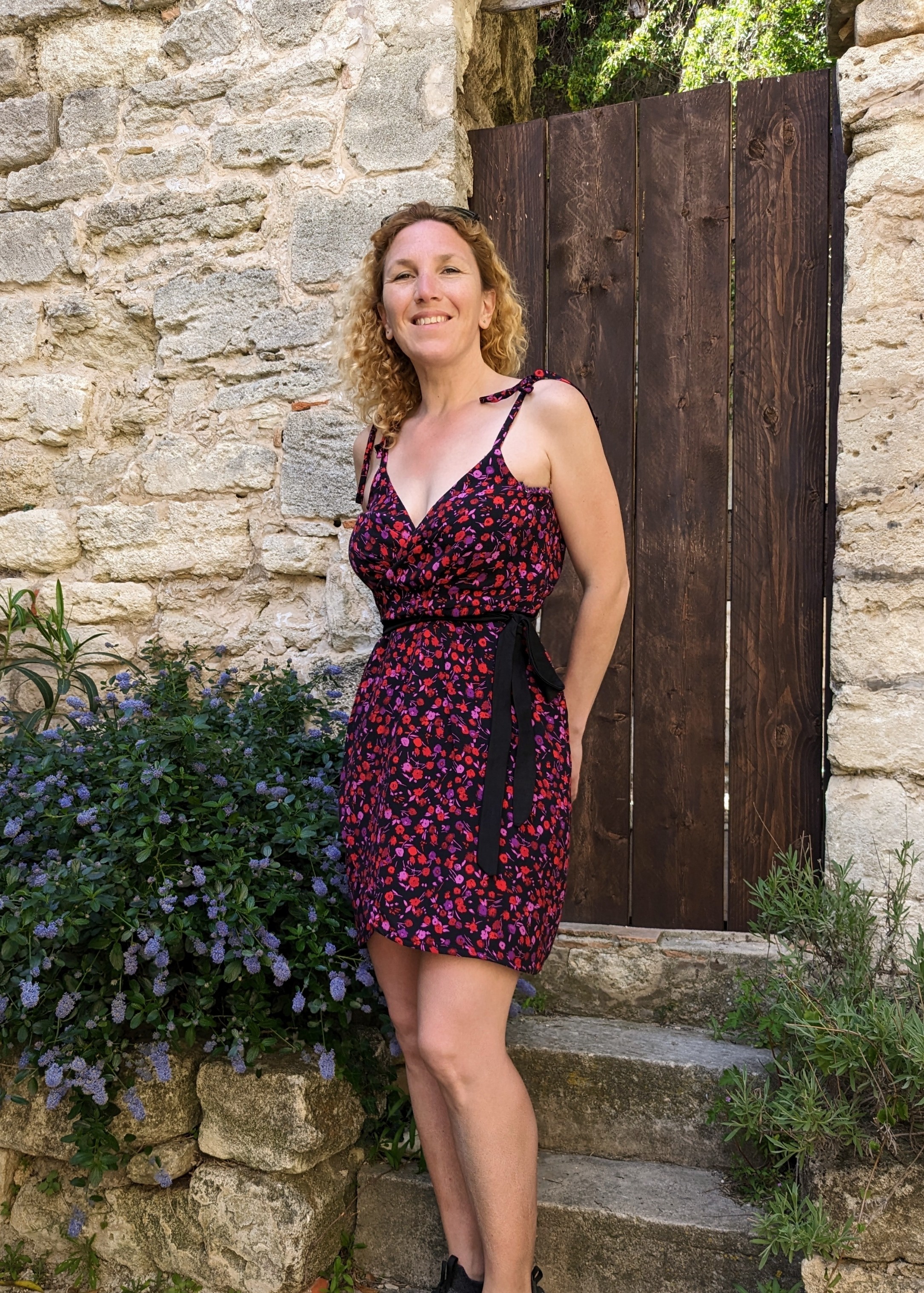 La robe se referme par un lien à coulisse et tout tient bien ! J’ai marché toute une journée avec et malgré le vent , je n’ai déploré aucun incident 😀