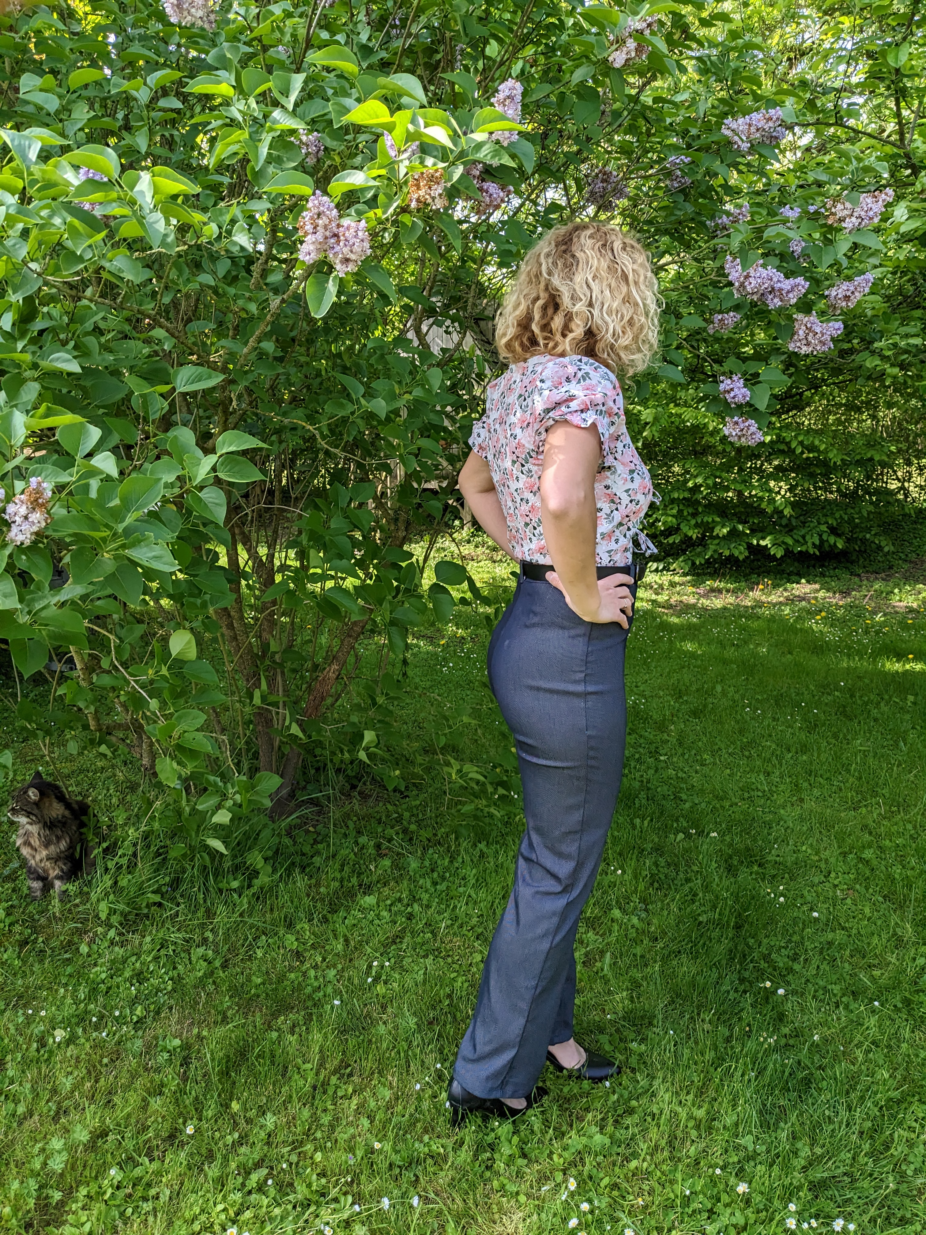 Sachez que j’écris cet article au petit-déjeuner et que je porterai ce pantalon tout à l’heure à l’école ( avec la blouse sous laquelle je prévois un petit débardeur blanc ). Il semble évident que je ne porterai pas ces chaussures inconfortables en 42 , ça va se terminer en Converse et tant mieux hihi. J’ai coupé le 34 et un peu réduit la largeur. J’aime beaucoup le résultat.