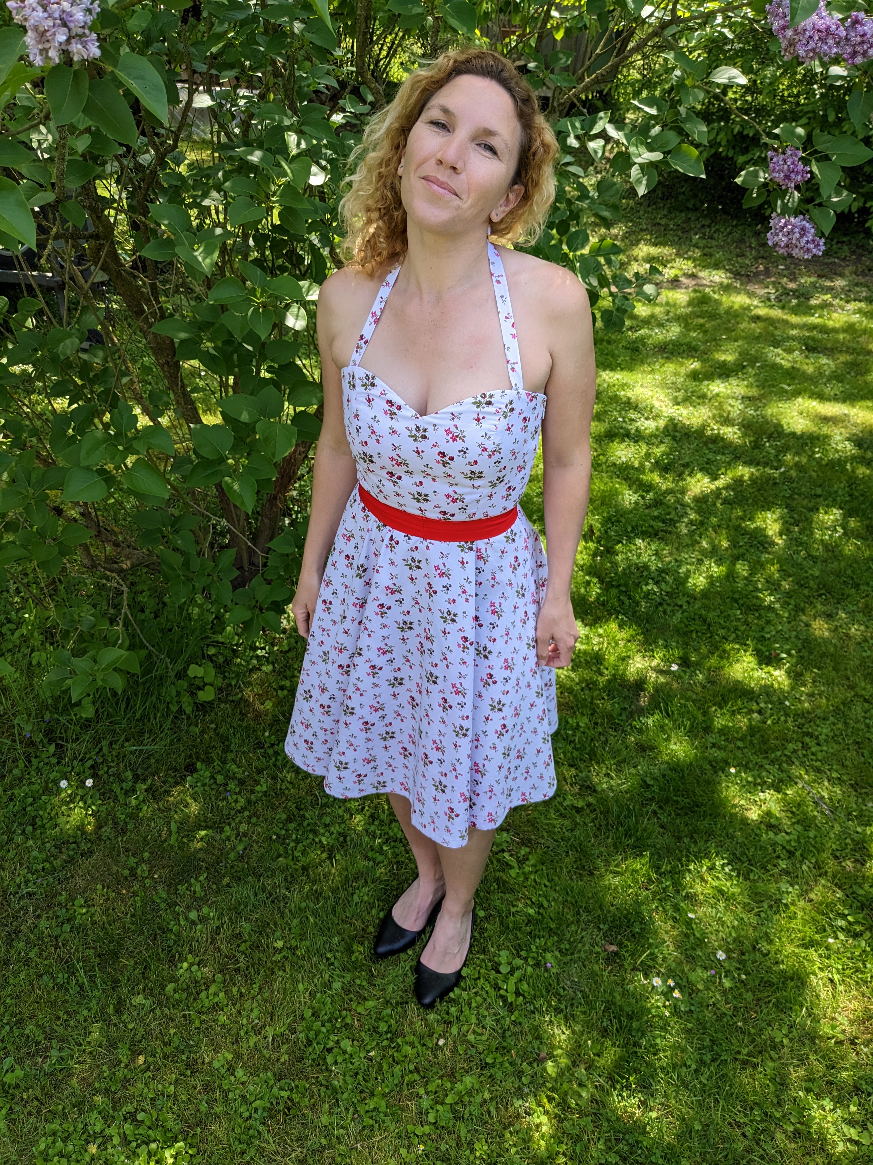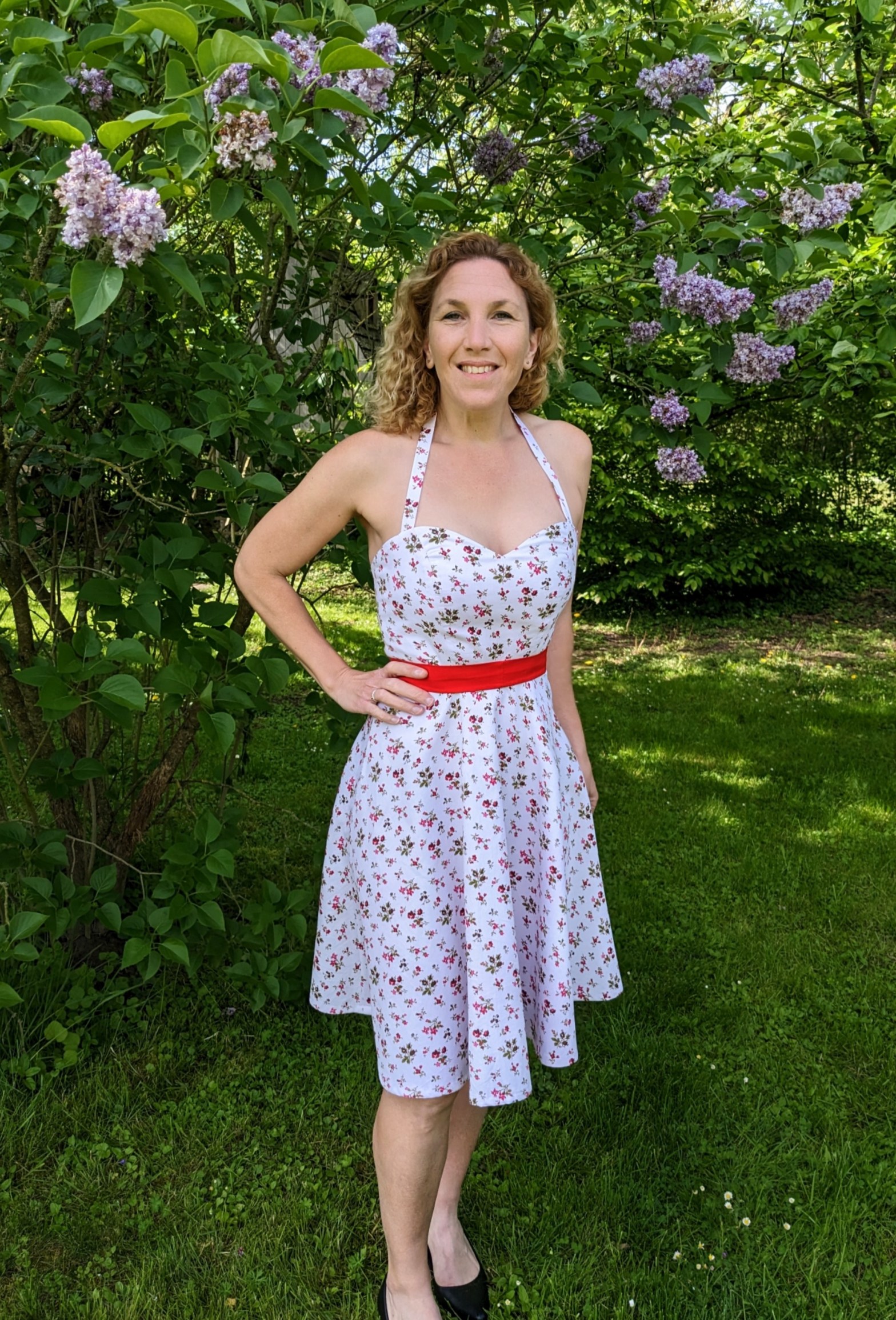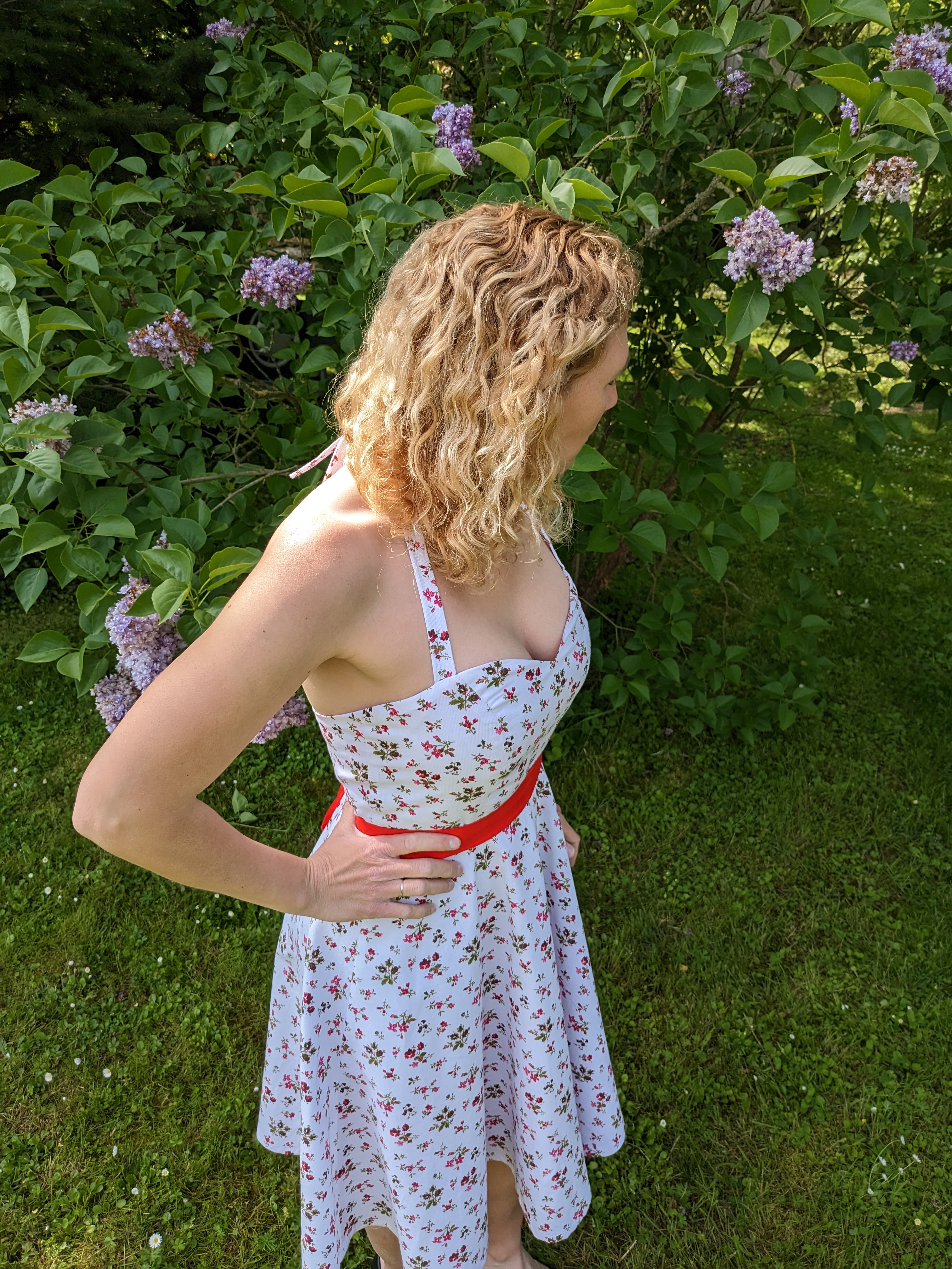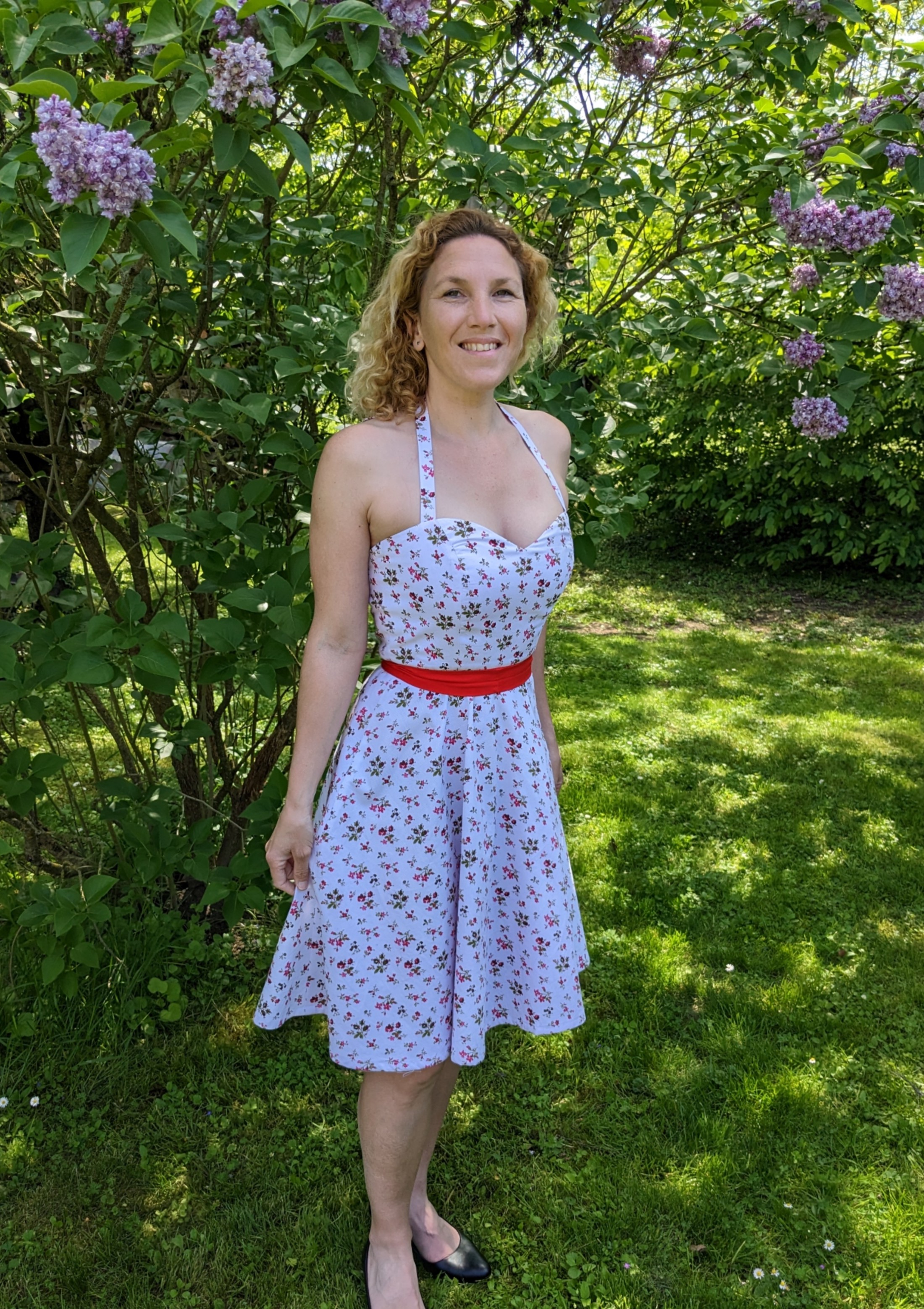 J’ai opté pour les bretelles à nouer au dos . Le modèle permet le port d’un soutien gorge bustier. Ayant cousu énormément de robes de ce style il y a une dizaine d’années , je n’ai rencontré aucune difficulté , c’était un plaisir du début à la fin.
