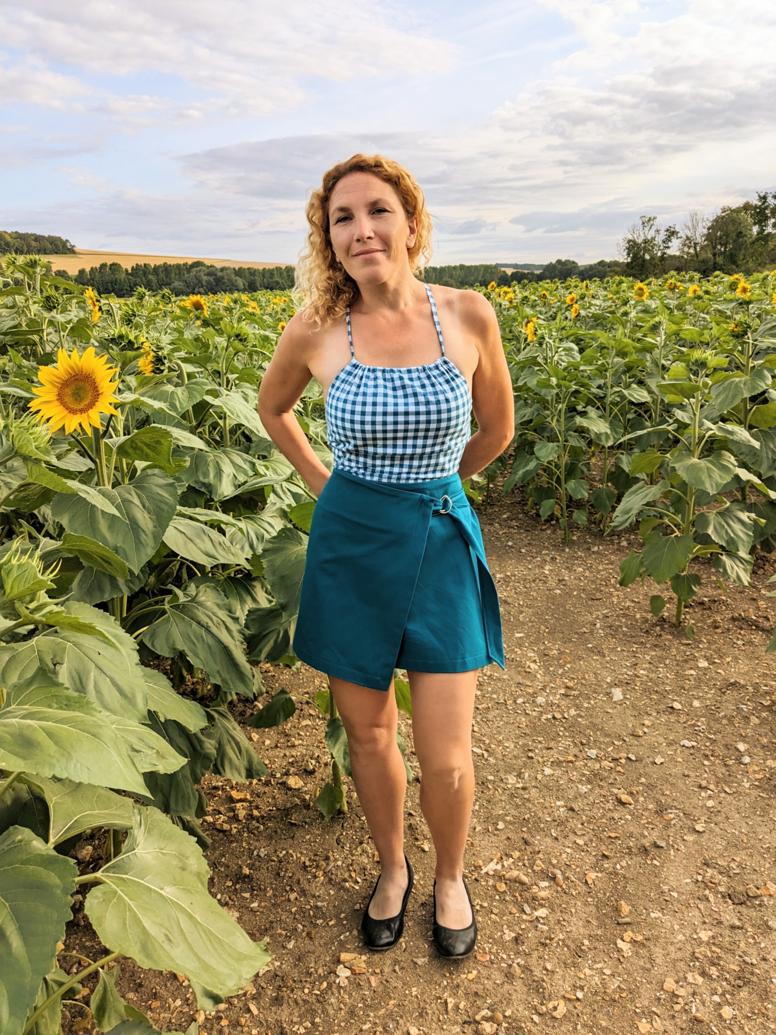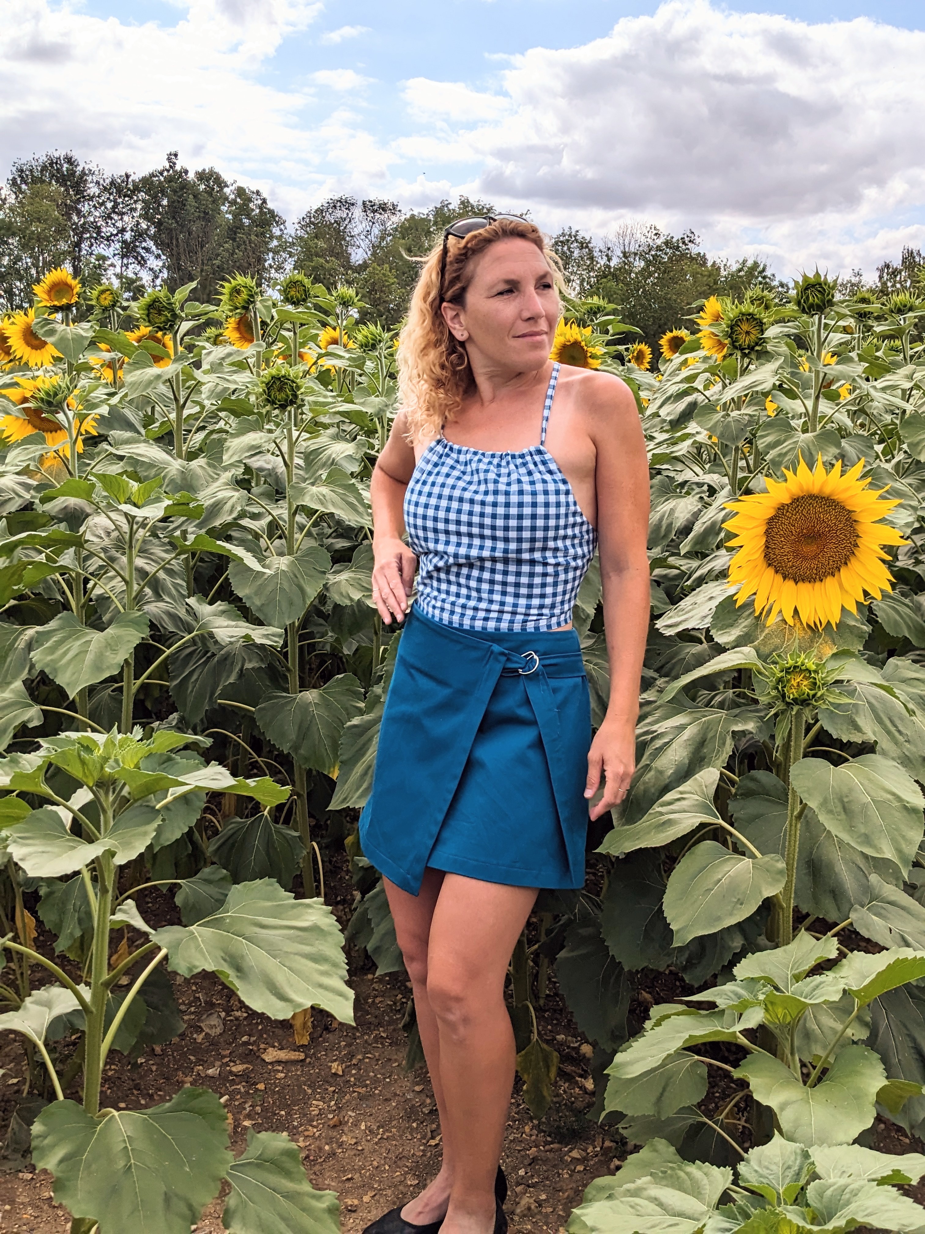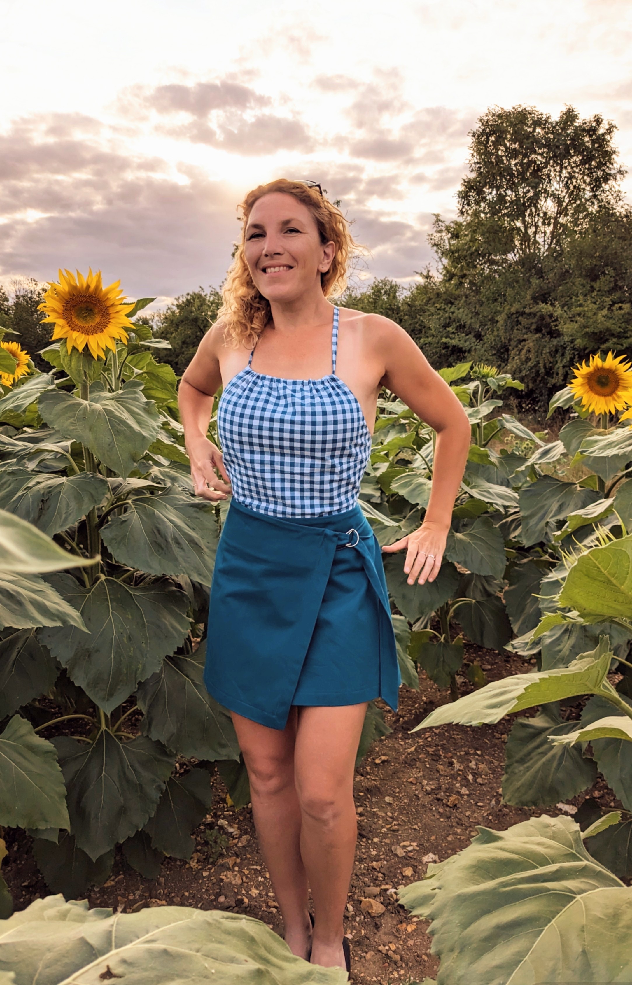 Pour le bas , vous voyez donc deux versions de la mini jupe portefeuille de Daria et je dois dire que c’est un patron extrêmement gratifiant à coudre car vous apprendrez de nouvelles techniques ( pour les angles et la ceinture que je vais réutiliser 🙂 )