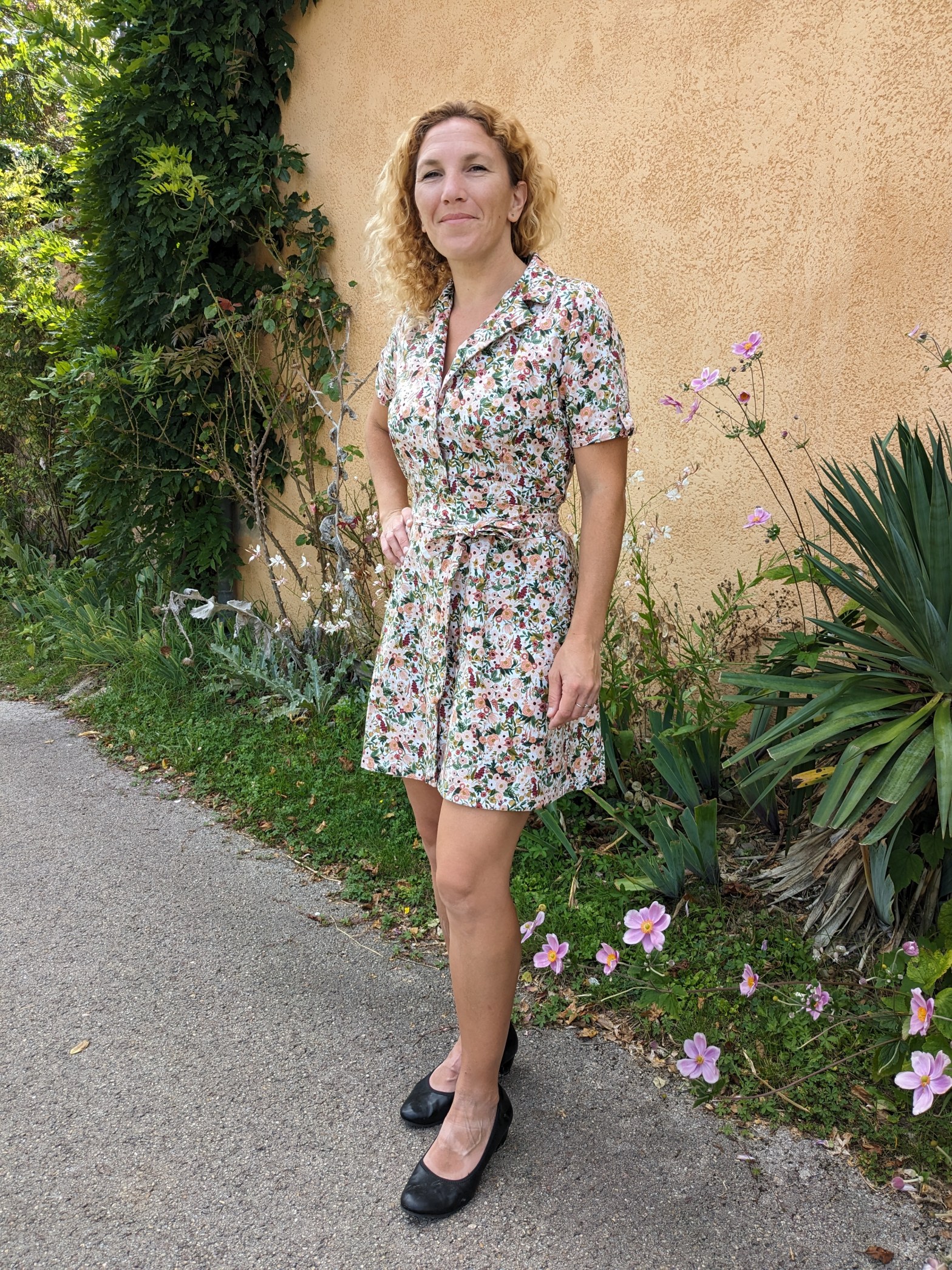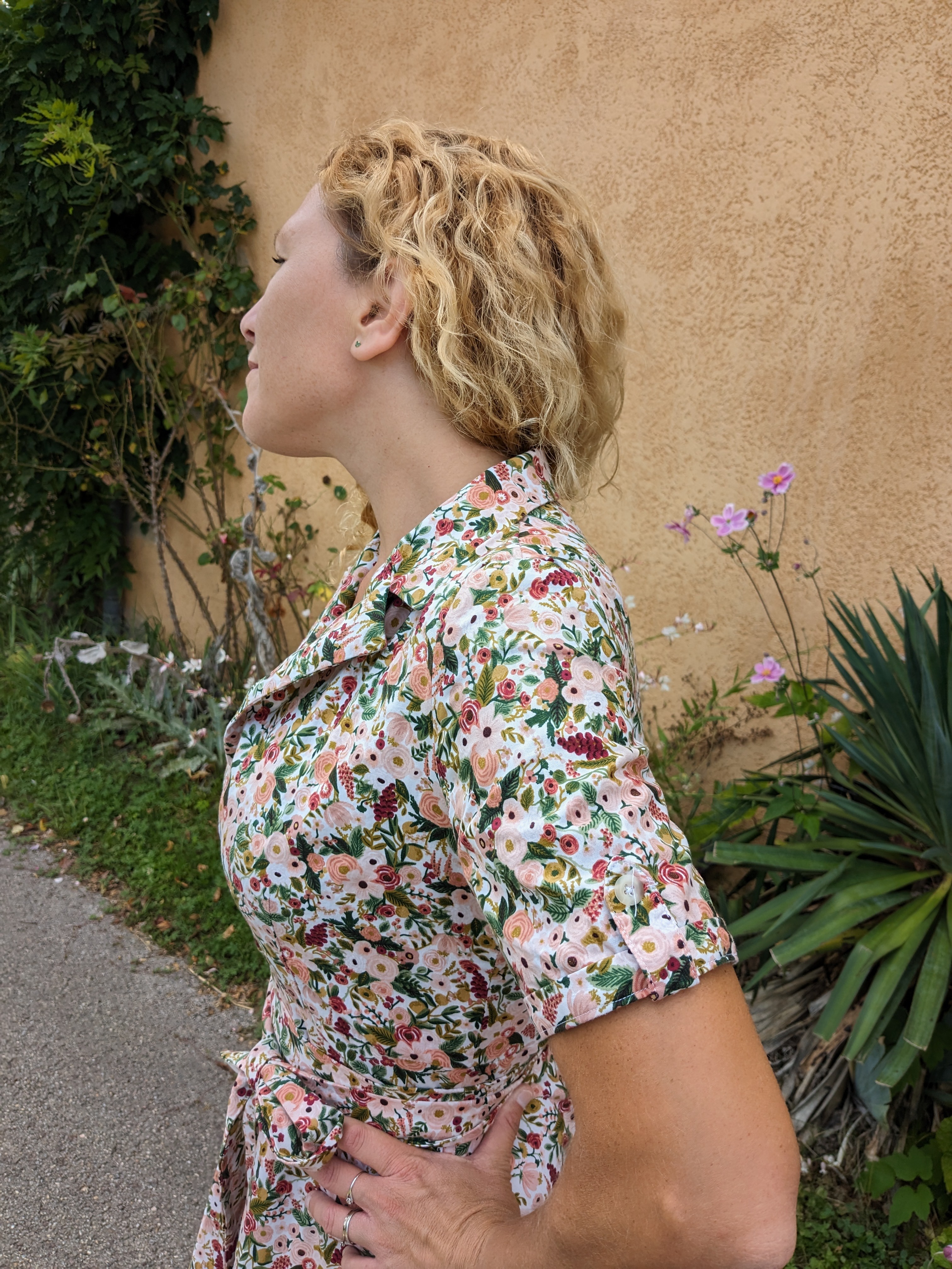 Cette fois-ci mes hésitations n’ont porté que sur le choix des manches courtes : j’ai choisi les manches à revers mais celles nouées sont très attirantes : il faudra une troisième version :D.
