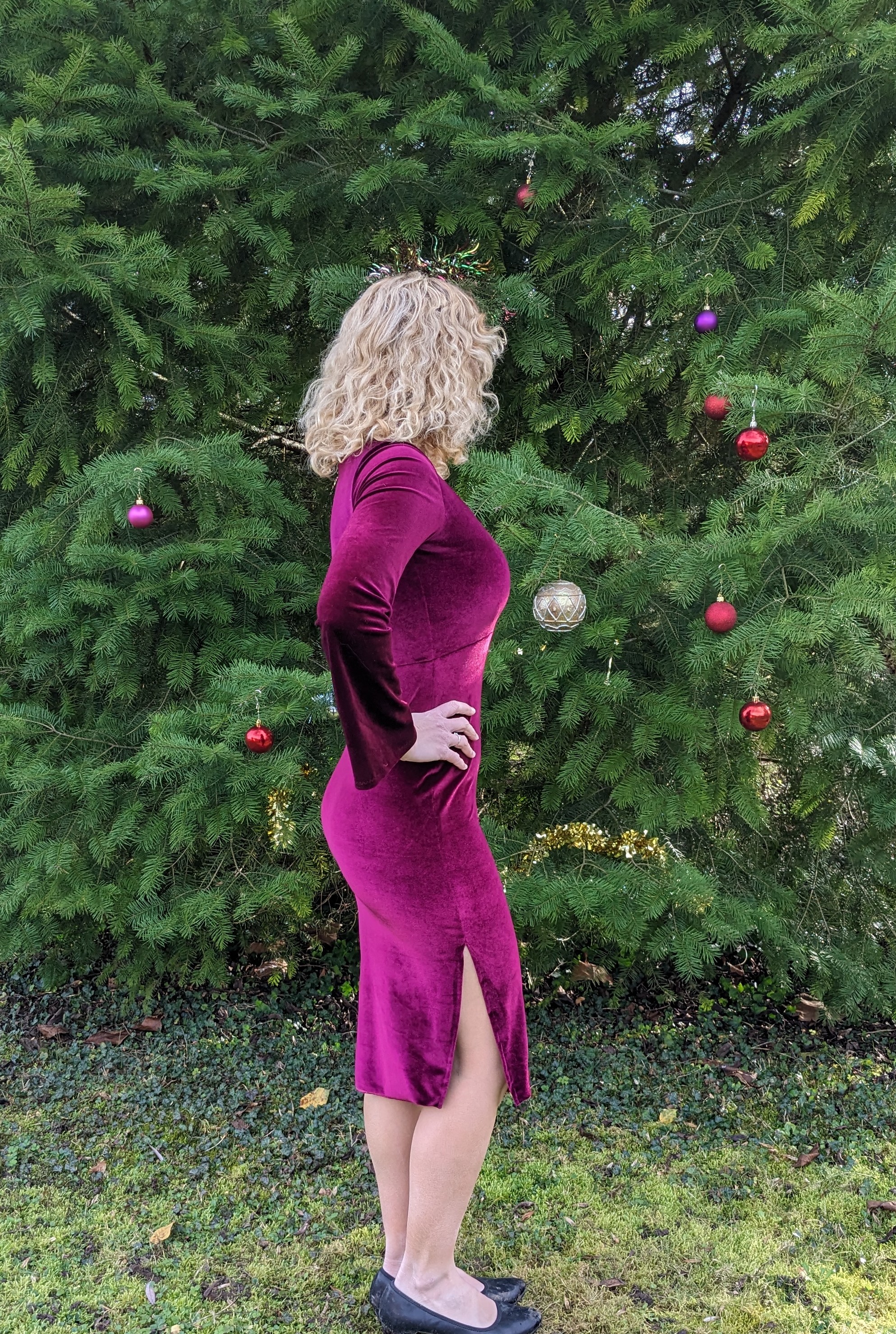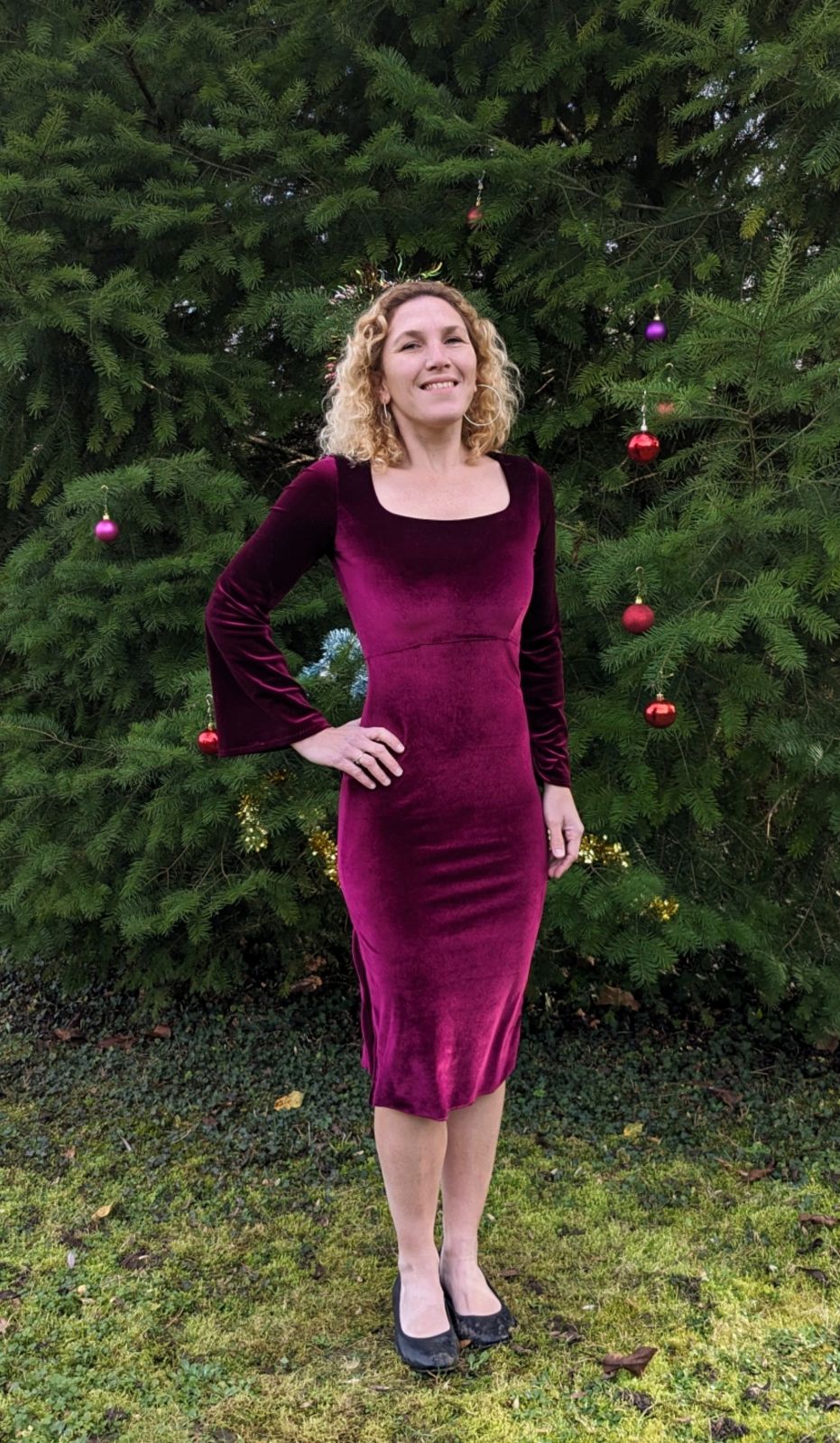 Oubliez les chaussures qui ont traversé la boue de décembre hihi. Je vous présente ma Telline options manches pagode , décolleté carré et jupe fendue qui a été ma robe de Noël . Autant dire que je vais refaire la même avec jupe trapèze pour l’école !!!