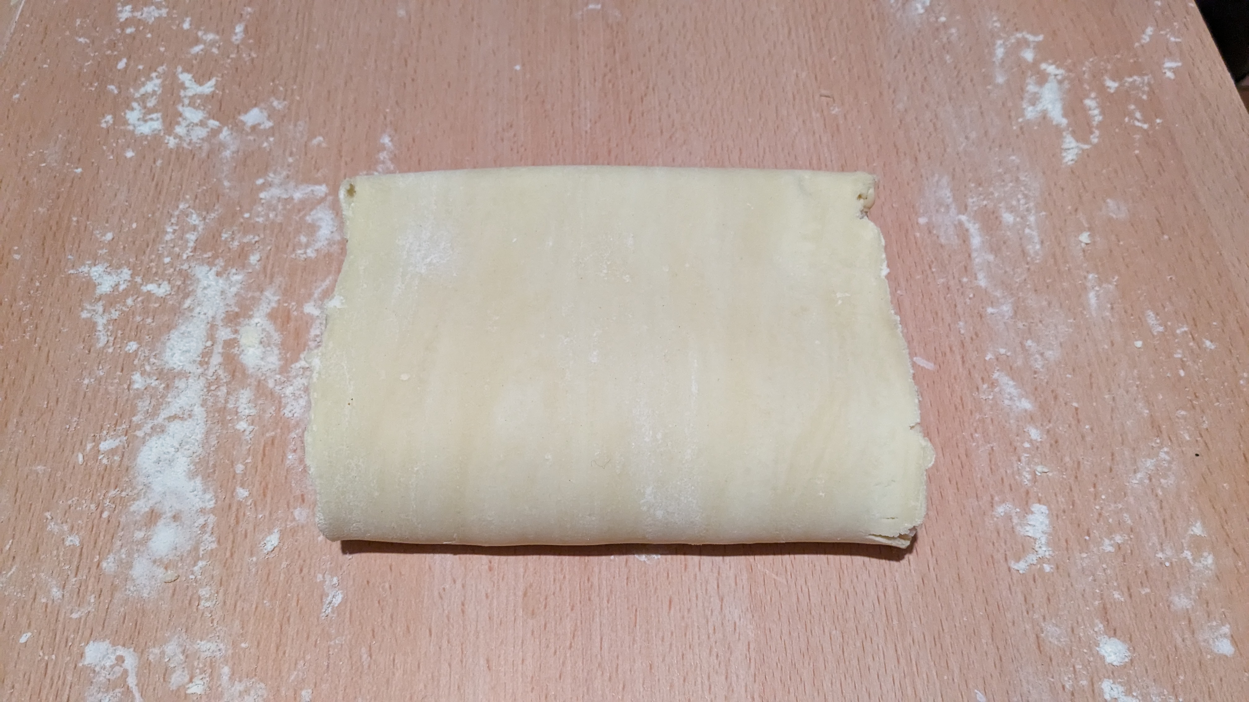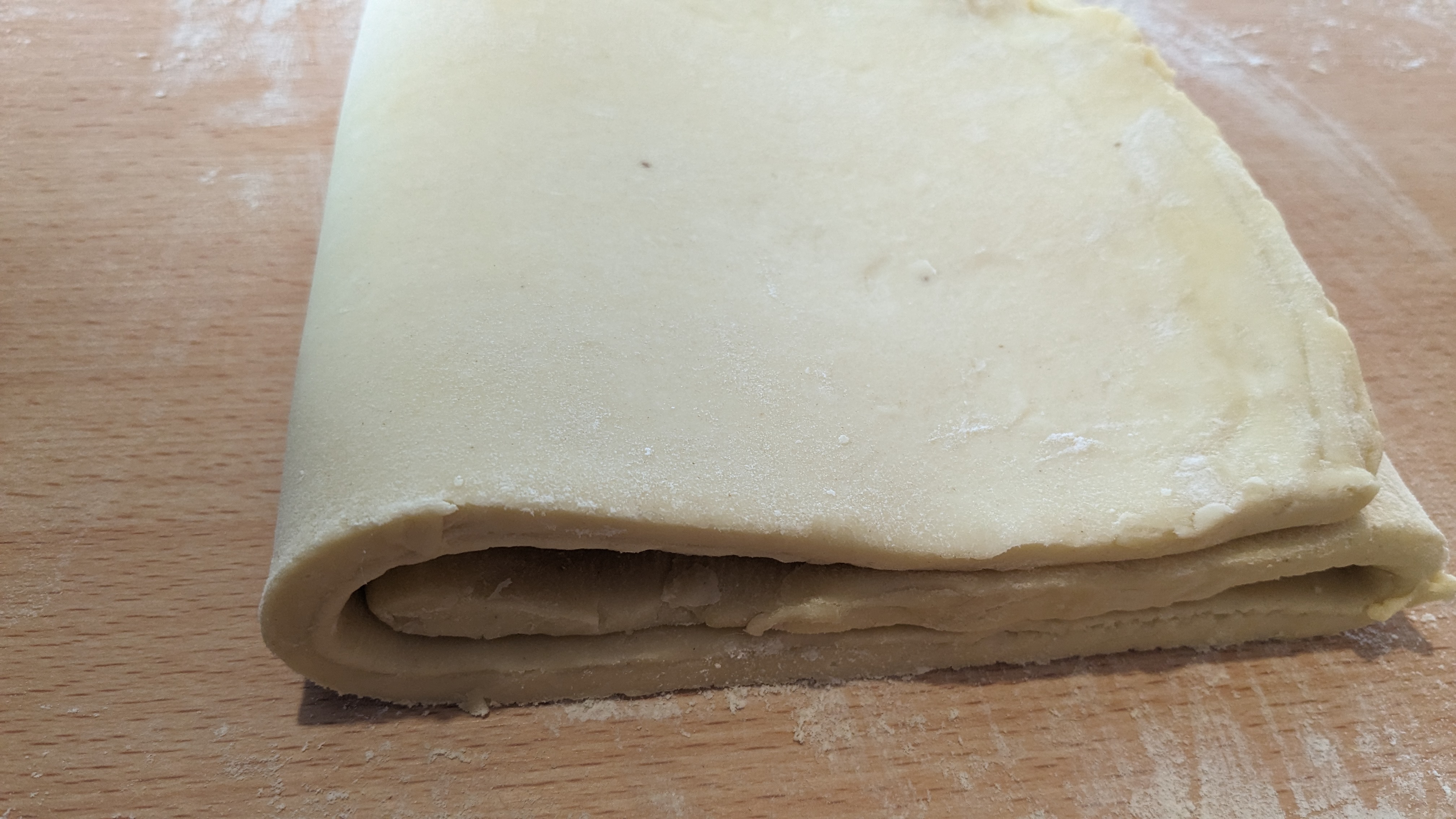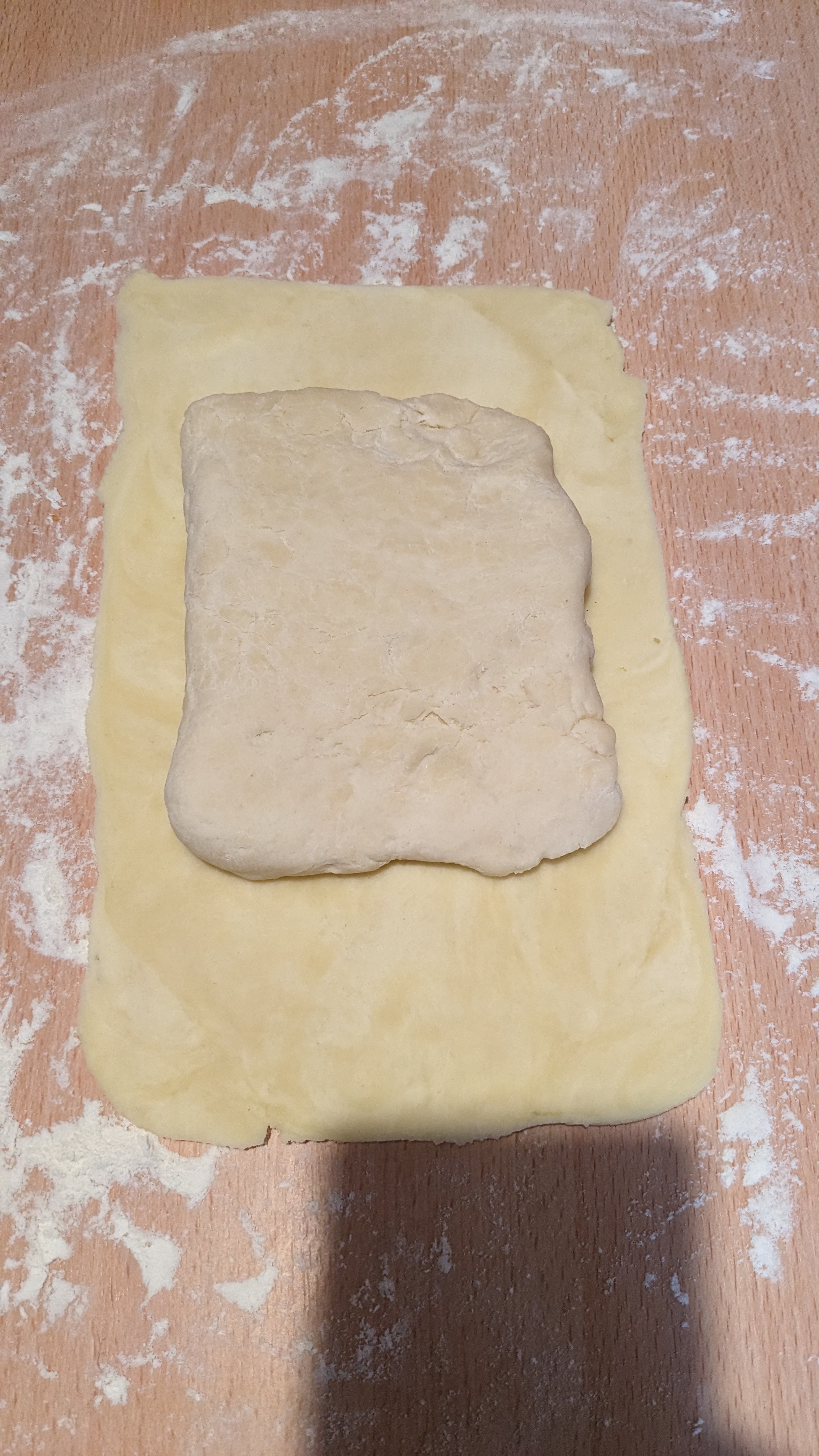 Remettez au frais plusieurs heures puis réétalez mais pliez en tiers : le tiers supérieur vers l’intérieur et recouvrez du tiers inférieur de la pâte ( celui vers vous )