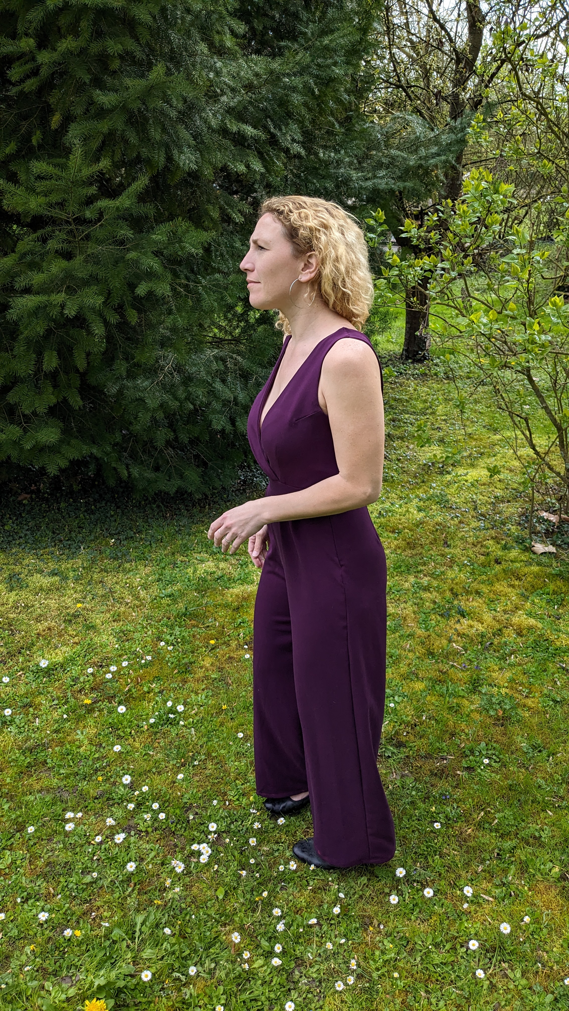 J’ai coupé le 34 et quand je l’ai essayée , j’ai ressenti une folle envie de … danser , oui danser car le tissu ondule avec les déplacements et la combinaison est vraiment trop confortable !