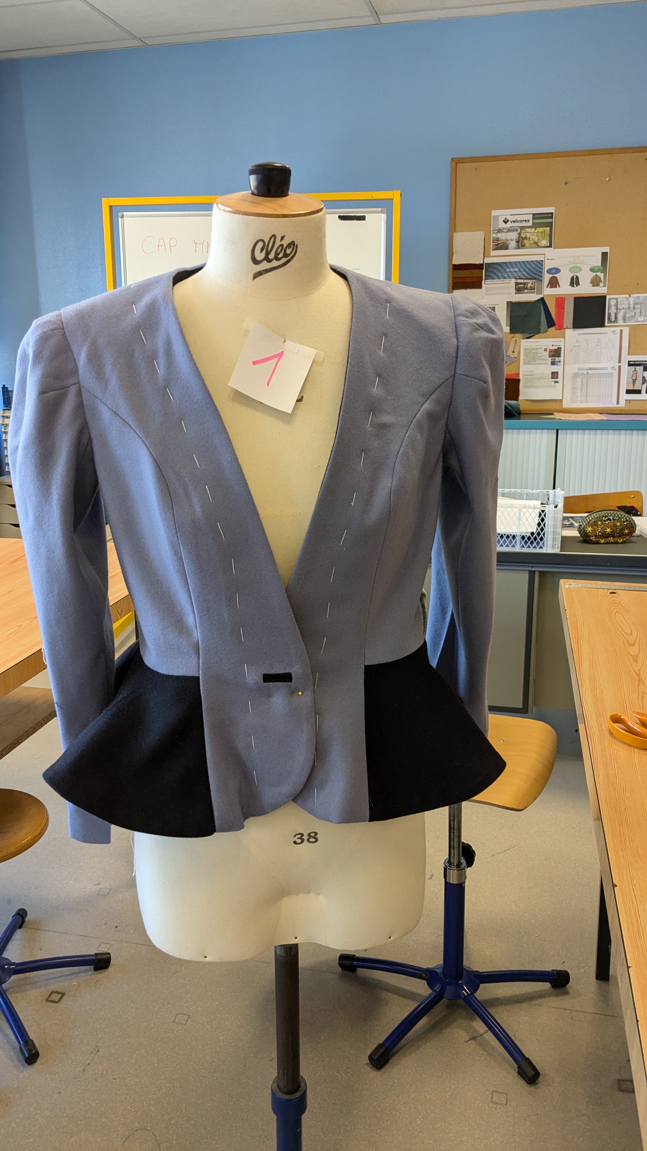La construction d’un vêtement tailleur nécessite du temps et énormément d’application : à peu près tout ce que j’aime 😀 et je souhaitais atteindre ce niveau de compétences par défi personnel et passion pour les vestes ;). J’aurais voulu passer l’examen à la suite du CAP couture flou mais entre temps j’ai quitté le cm2 pour aller en CP , puis il a fallu que j’apprenne le Braille et fasse des petits tours en IME, que je me concentre sur les adaptations pour non-voyants et cerise sur le gâteau j’avais en plus mon dernier rdv de carrière à préparer à donf’… Finalement 2023/2024 fut l’année où cela devenait possible et j’ai pu me former très sérieusement .