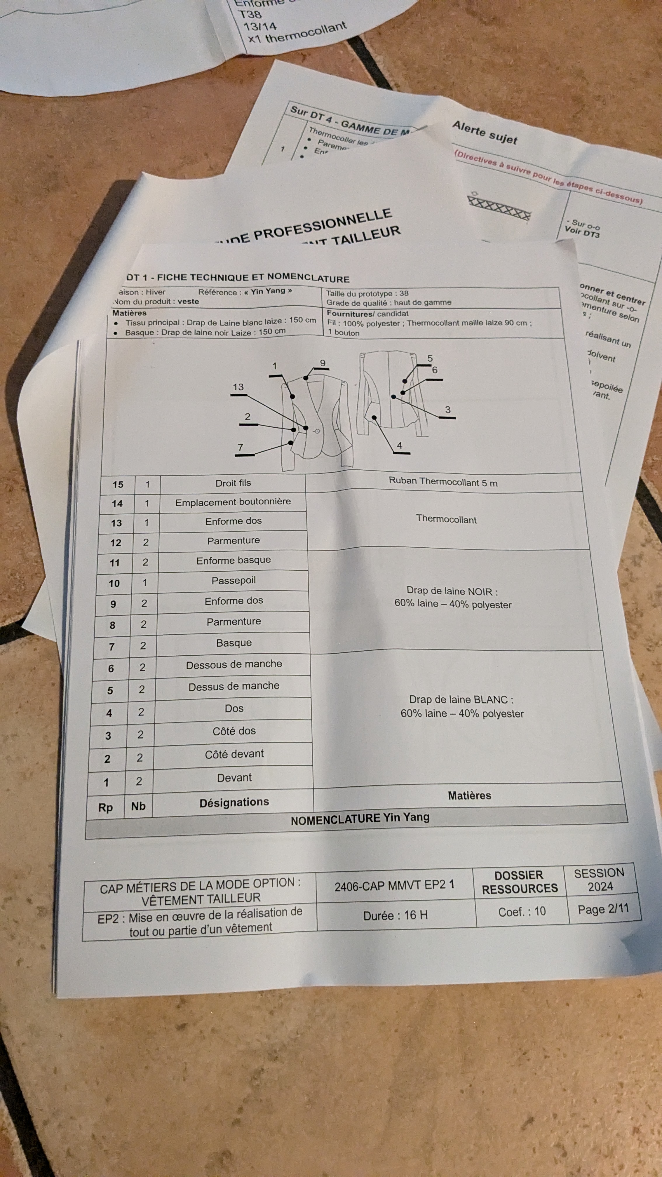 Bonjour ! Par superstition , j’ai attendu les résultats pour raconter mon aventure du CAP MMVT ( Métiers de la Mode Vêtement Tailleur ) . J’ai trop de choses à raconter car le parcours fut mouvementé (spoiler , j’ai gagné en confiance grâce à tout cela ) et hyper intéressant . Pour commencer , quelles différences avec le CAP couture flou ? Le cap couture flou concerne les vêtements de prêt à porter tandis que le cap tailleur se concentre sur les vêtements de type costume femme / homme avec un niveau haut de gamme : il s’agit de réaliser des vêtements structurés tels que vestes , vestons , manteaux , pantalons de costume en utilisant des matériaux plus lourds ( lainages , draperies etc ) et en ayant recours à des techniques spécifiques comportant beaucoup de points à la main ( entraînement obligatoire sur tapis de points hihi )
