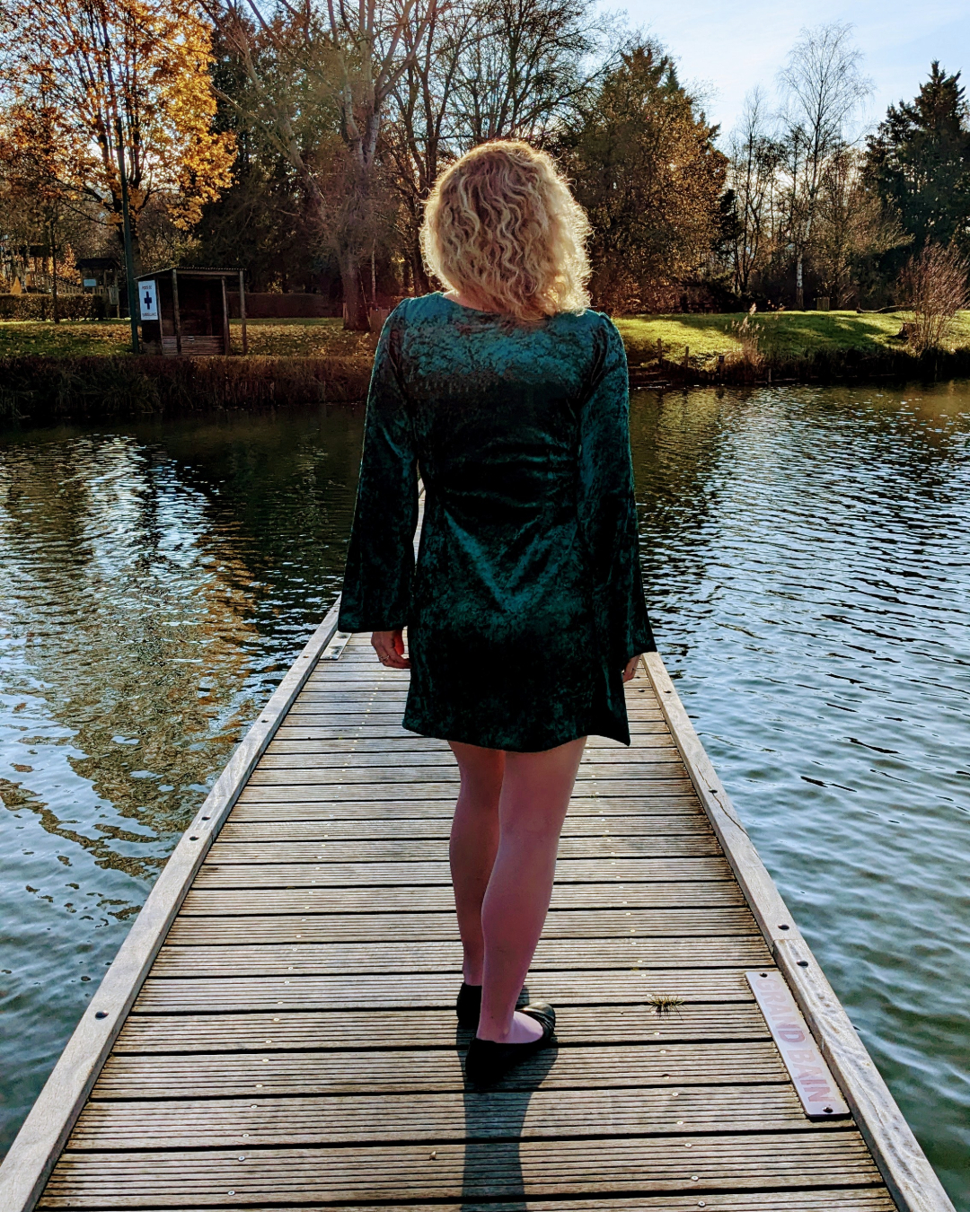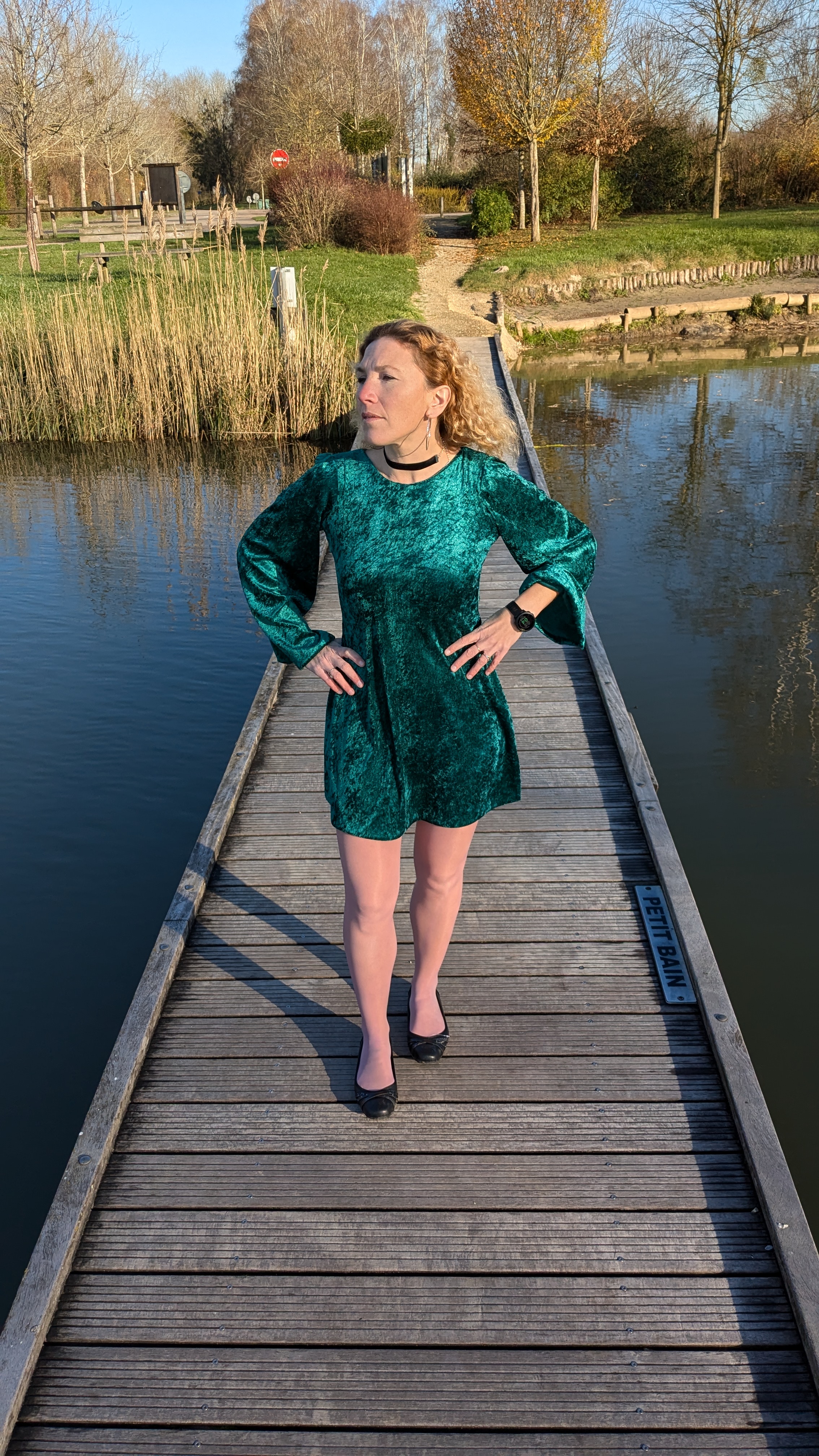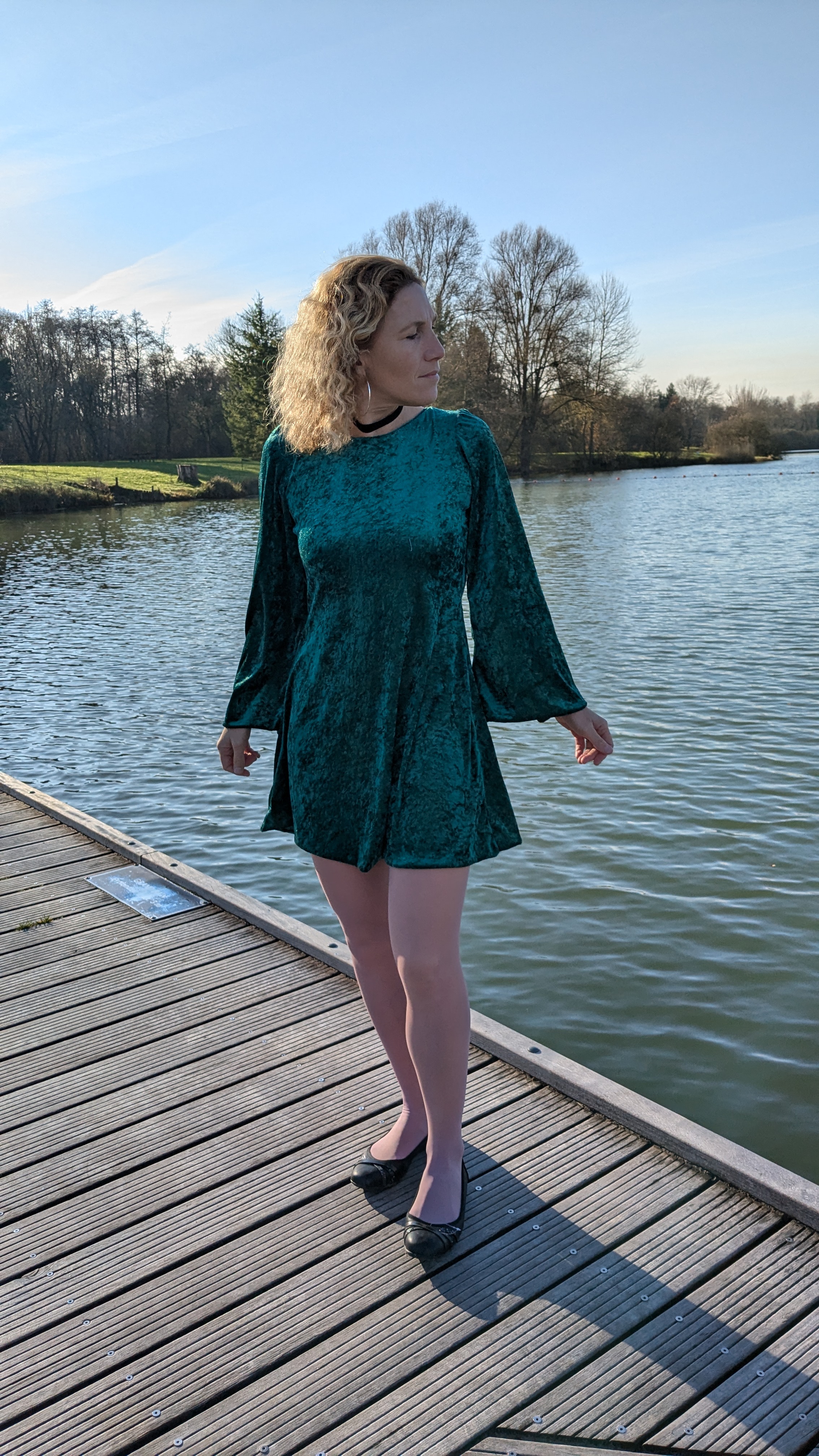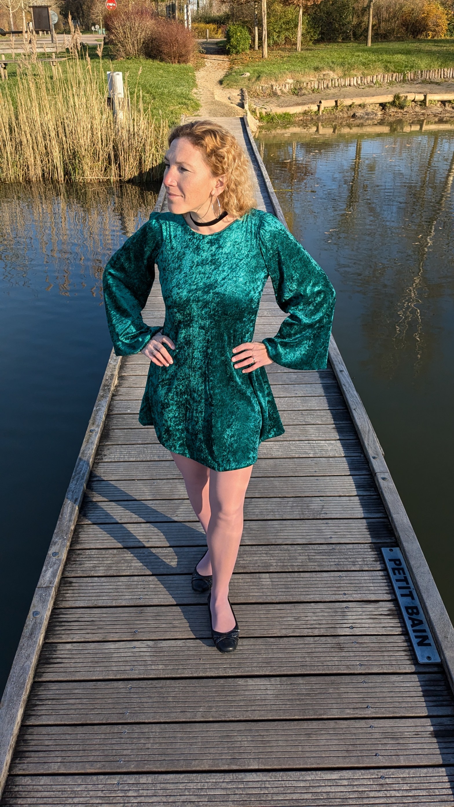J’ai tout de suite souhaité une version en velours , j’avais ce coupon de chez Driessen stoffen en stock depuis l’an dernier pour une autre robe mais je suis ravie de mon choix ! J’ai coupé le 34 , aucune modification à signaler chez moi
