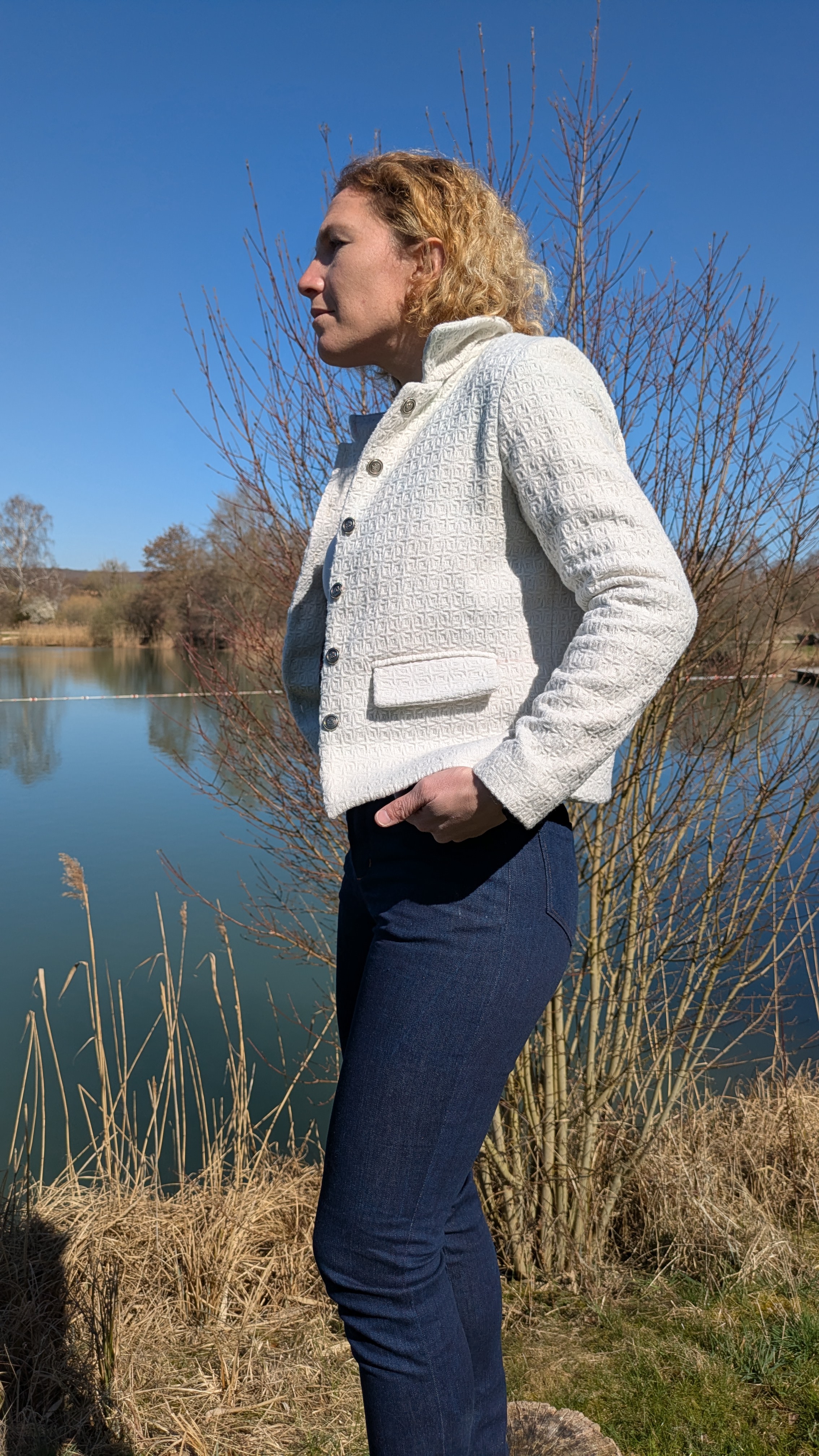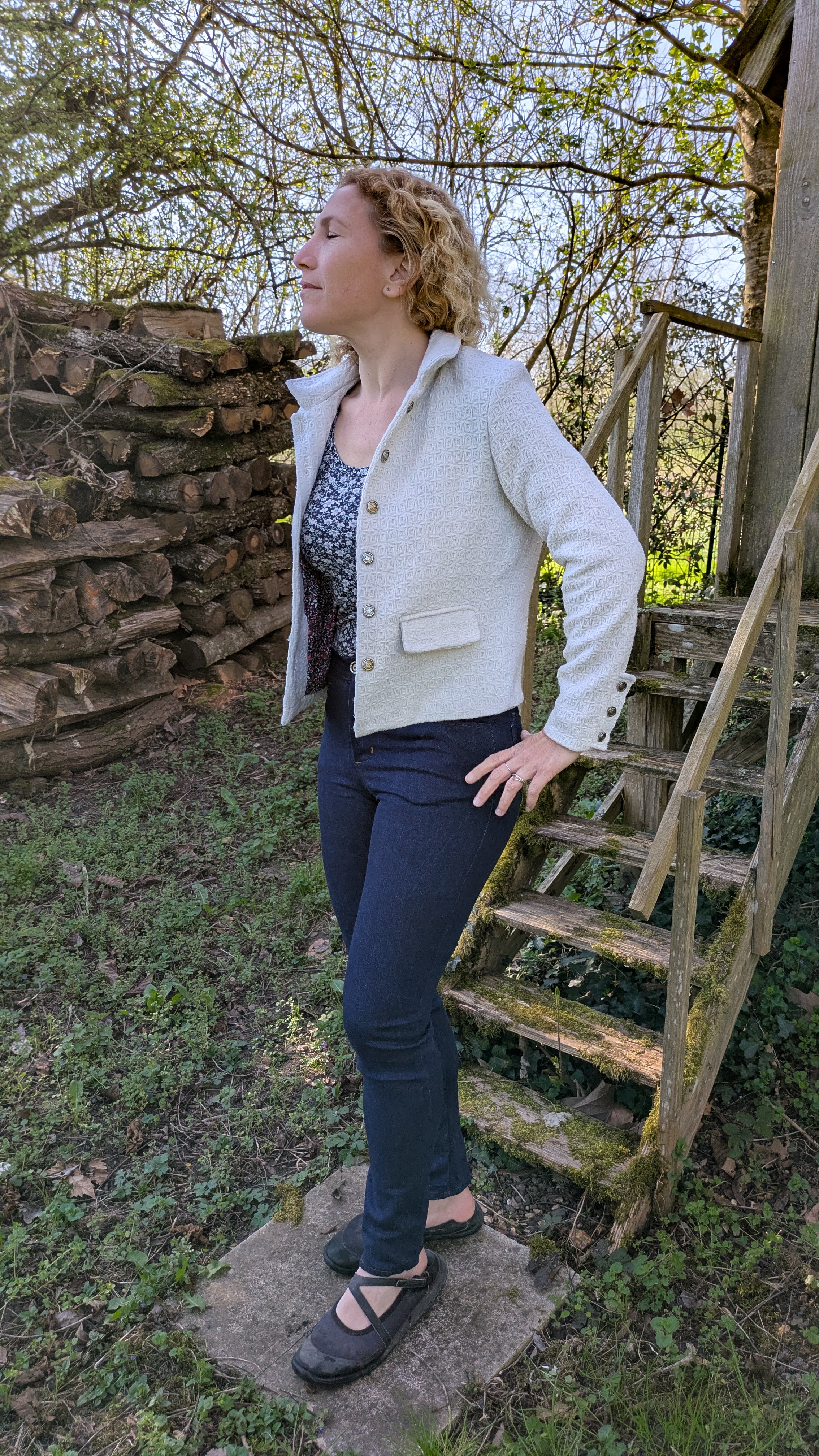 Bon ok en regardant la photo j’ai également retracé légèrement la patte de boutonnage des manches mais sinon j’ai été très disciplinée 😀